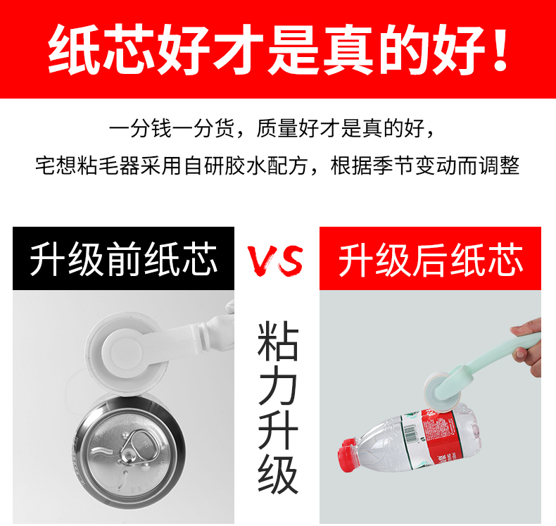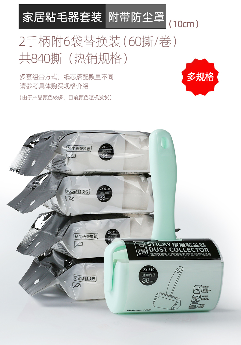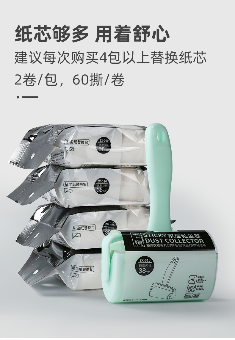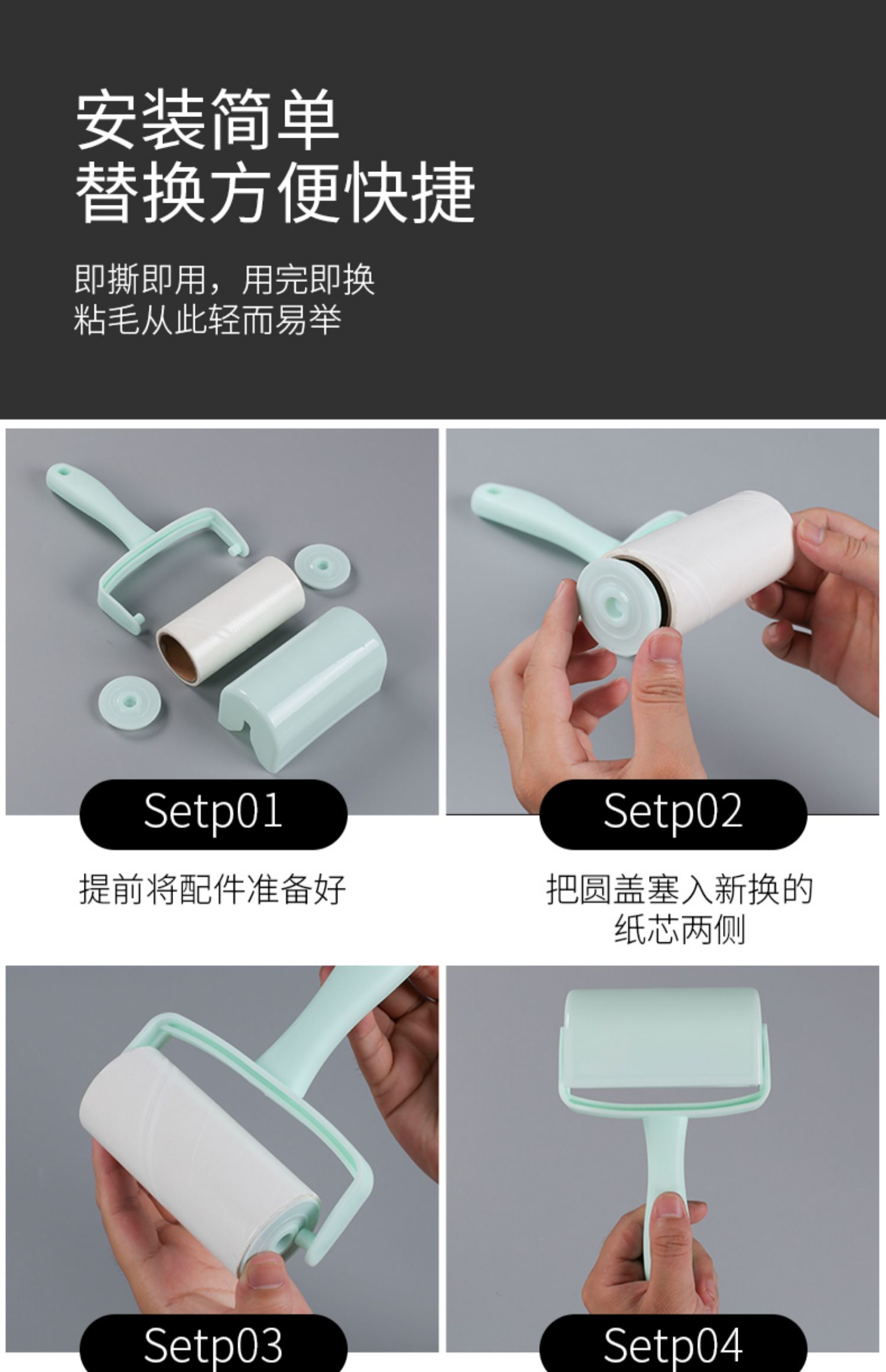 清洁的好帮手,高颜值粘毛器,超强粘力,滚筒式手柄设计60撕纸,有效解决各种衣物附着的头发,绒毛、灰尘等难题