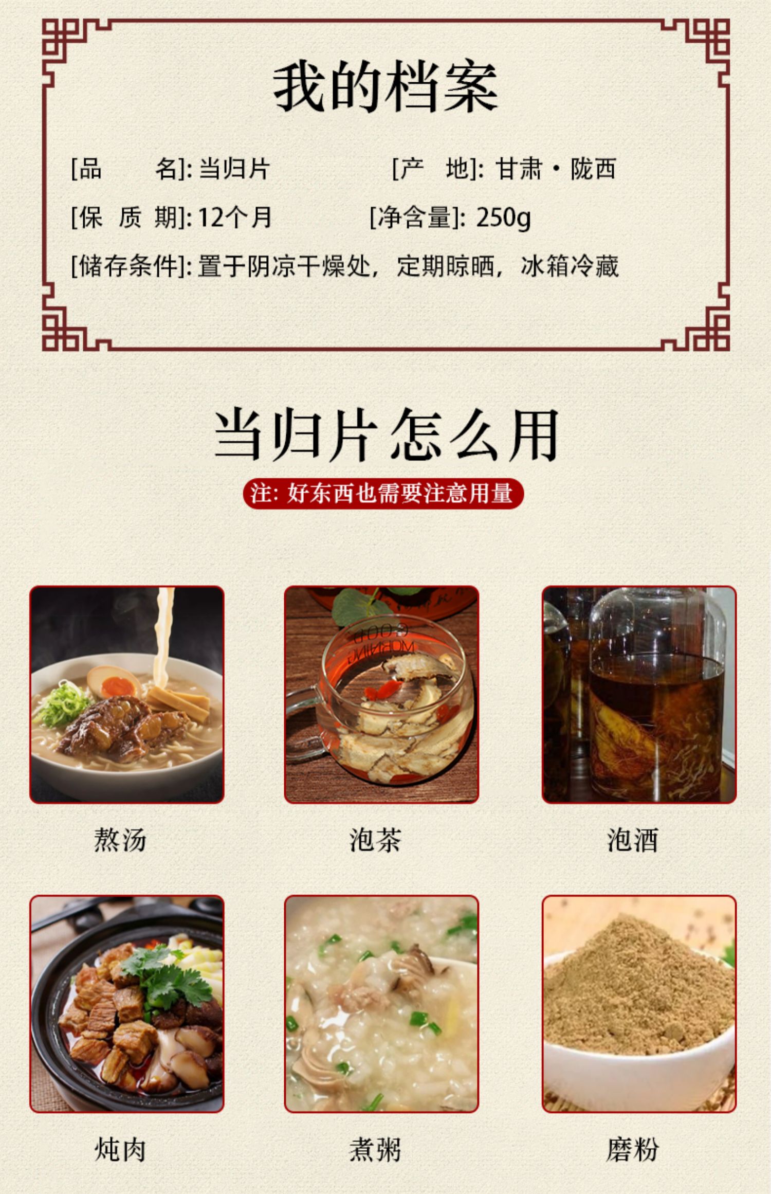 【赠运费险】甘肃原产地发货,正宗岷归,特级全当归,当归有补血、调血脂、降血压、增强免疫力等功效。可泡茶,煲汤,煎煮,专治疲劳无力、食欲不振,补血益气人群必抢!