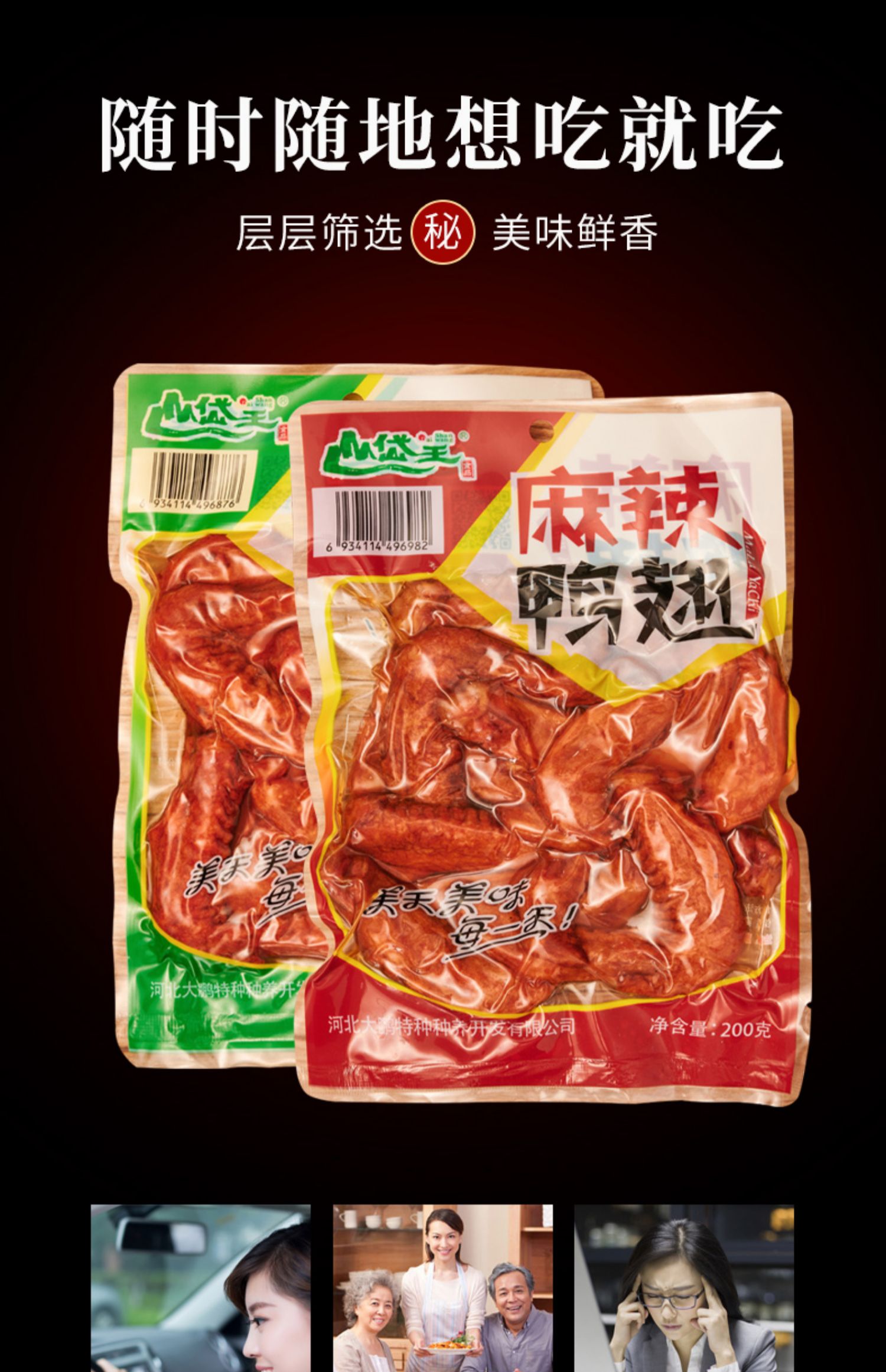 山岱王麻辣五香卤味鸭翅,甄选多种香辛料卤制,卤香浓郁,耐嚼入味,麻香诱人,让你一次吃个够~