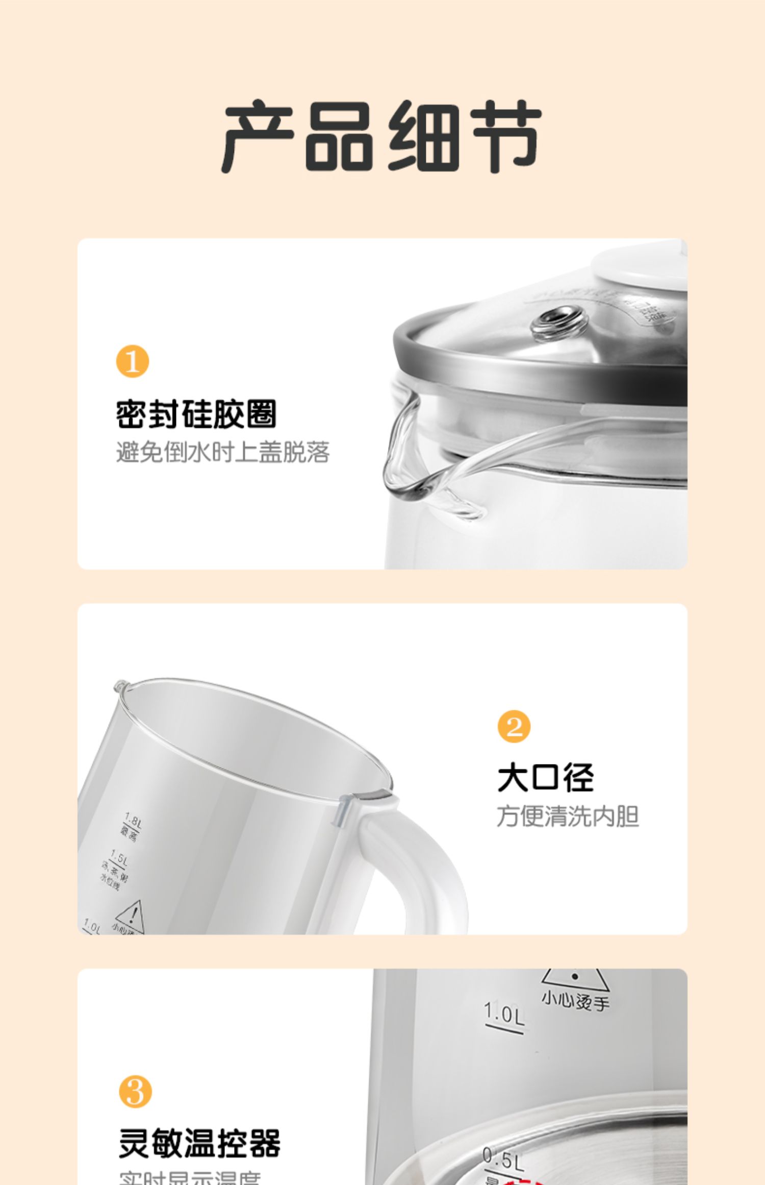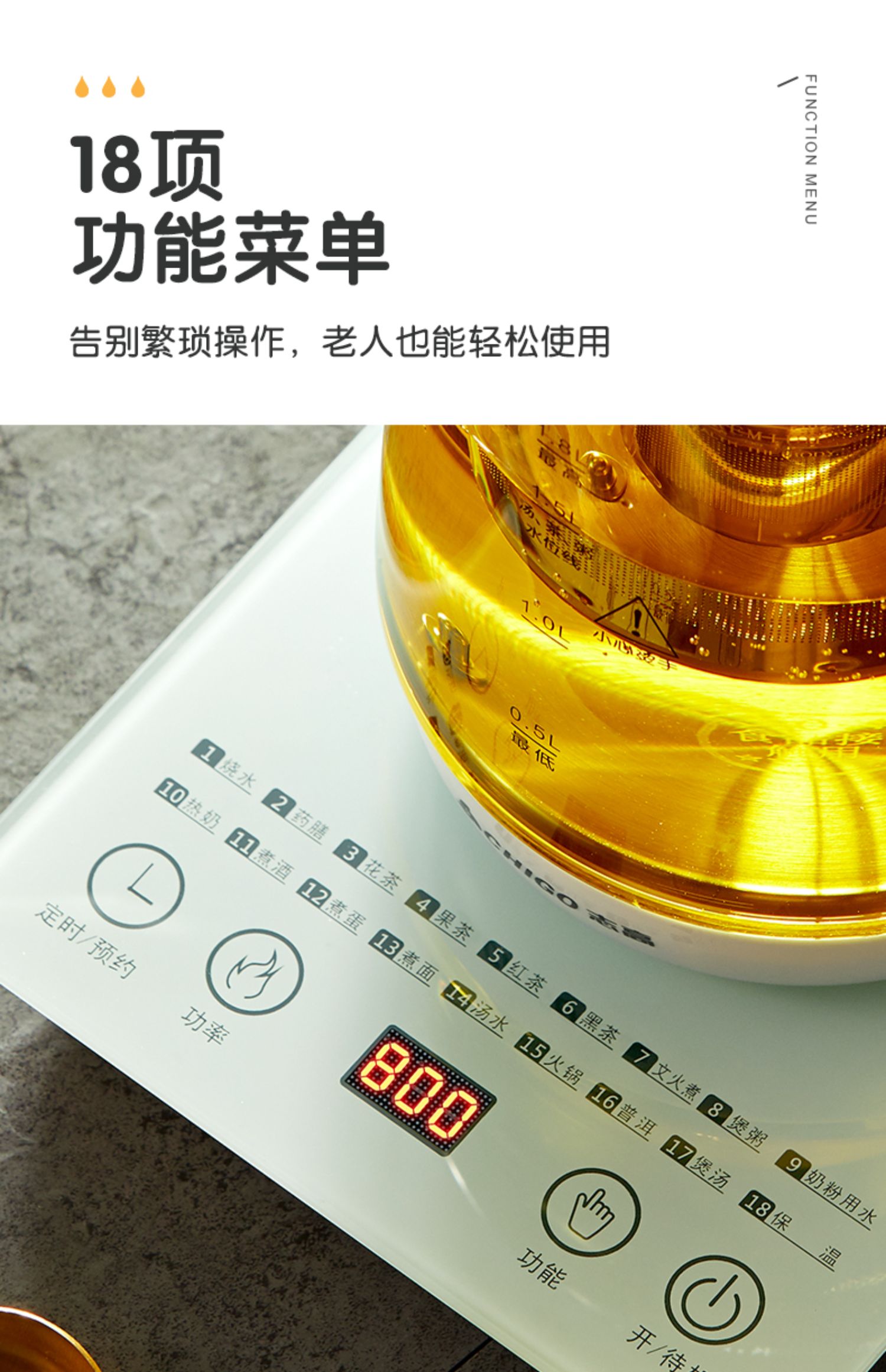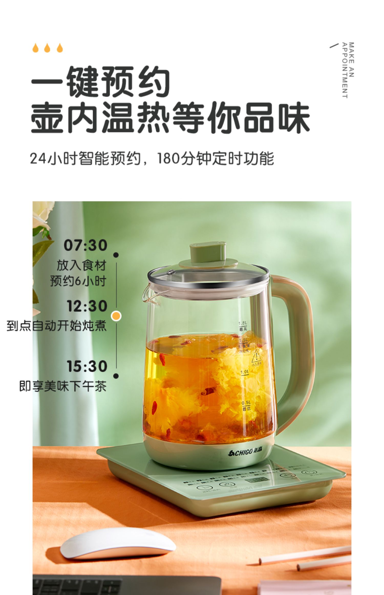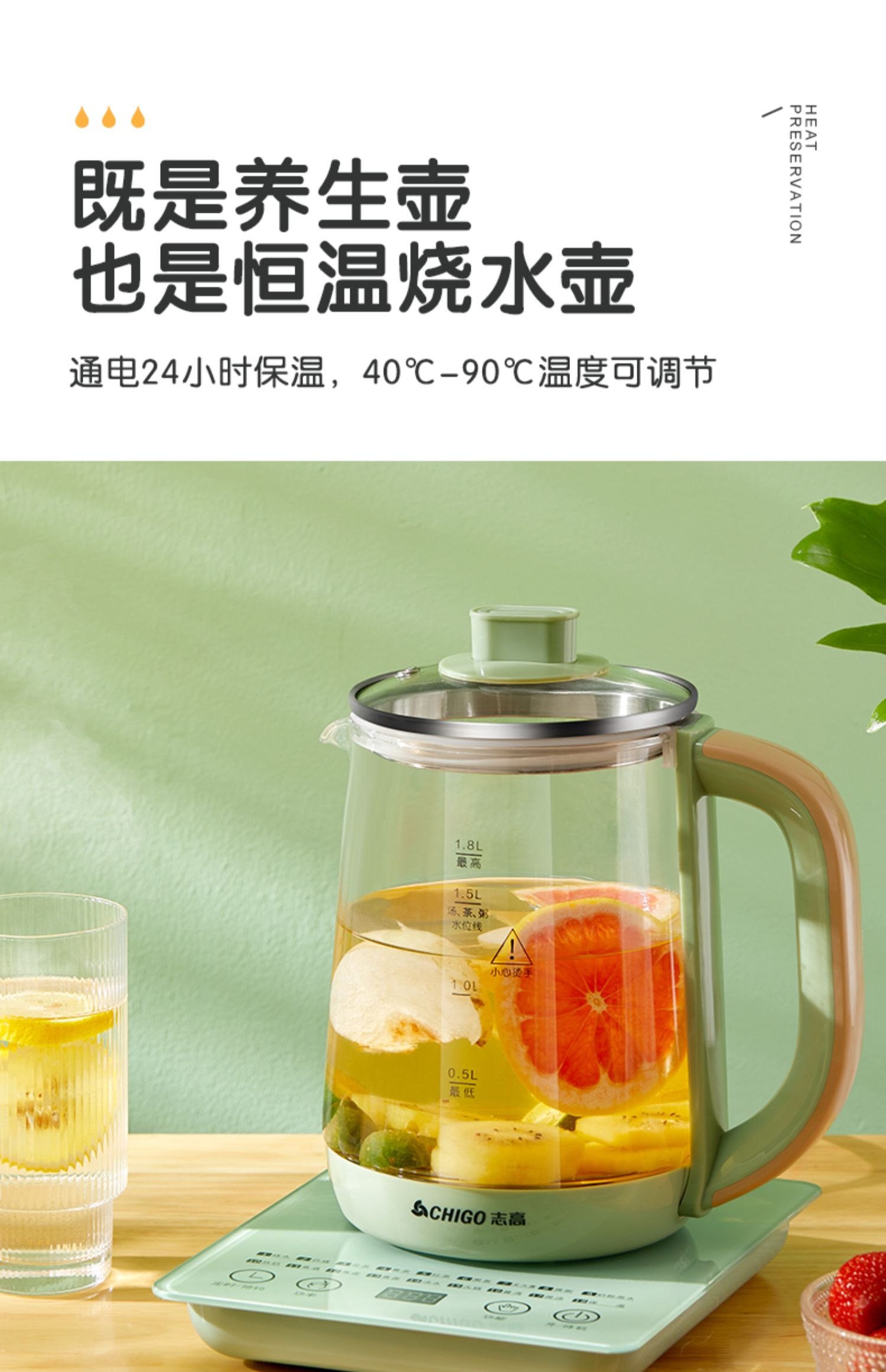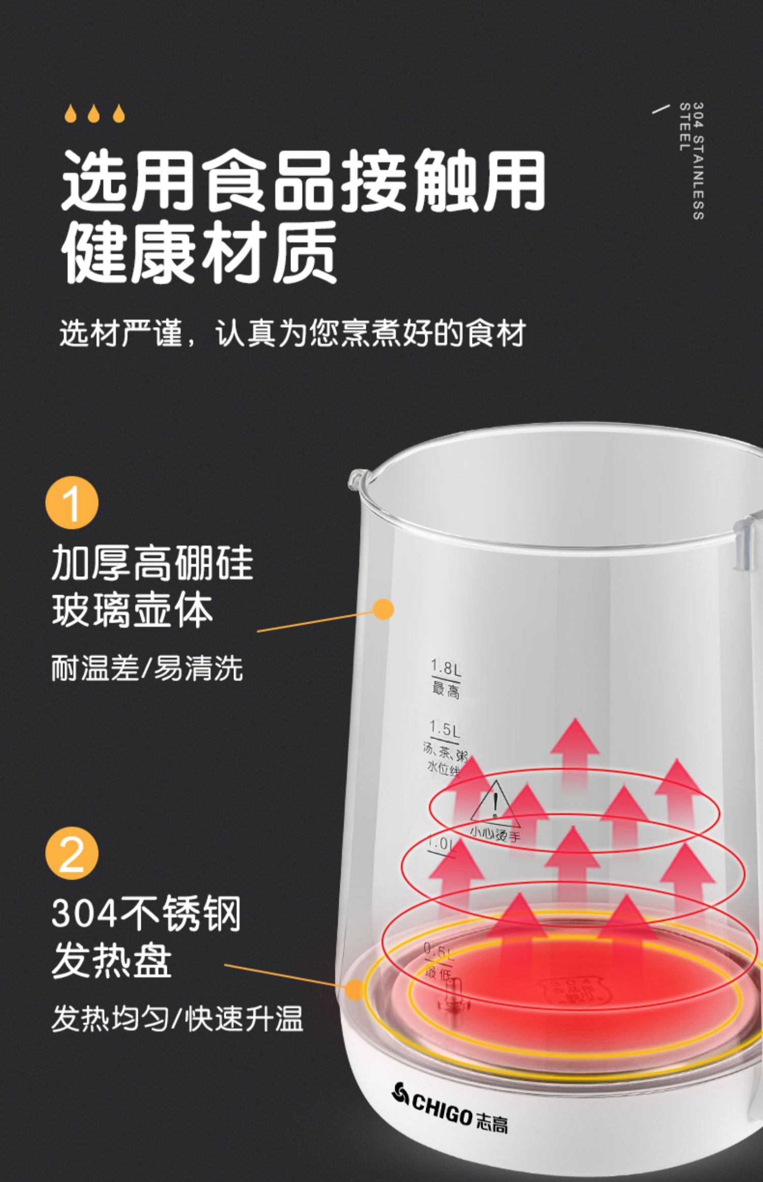 【送蒸蛋架】志高全自动多功能养生壶,一键触达,功率/保温温度可调,24h预约定时!不如买台志高养生壶,煮茶,熬粥,蒸饭,一步到位,触摸面板,安全高硼硅玻璃~【赠运费险】