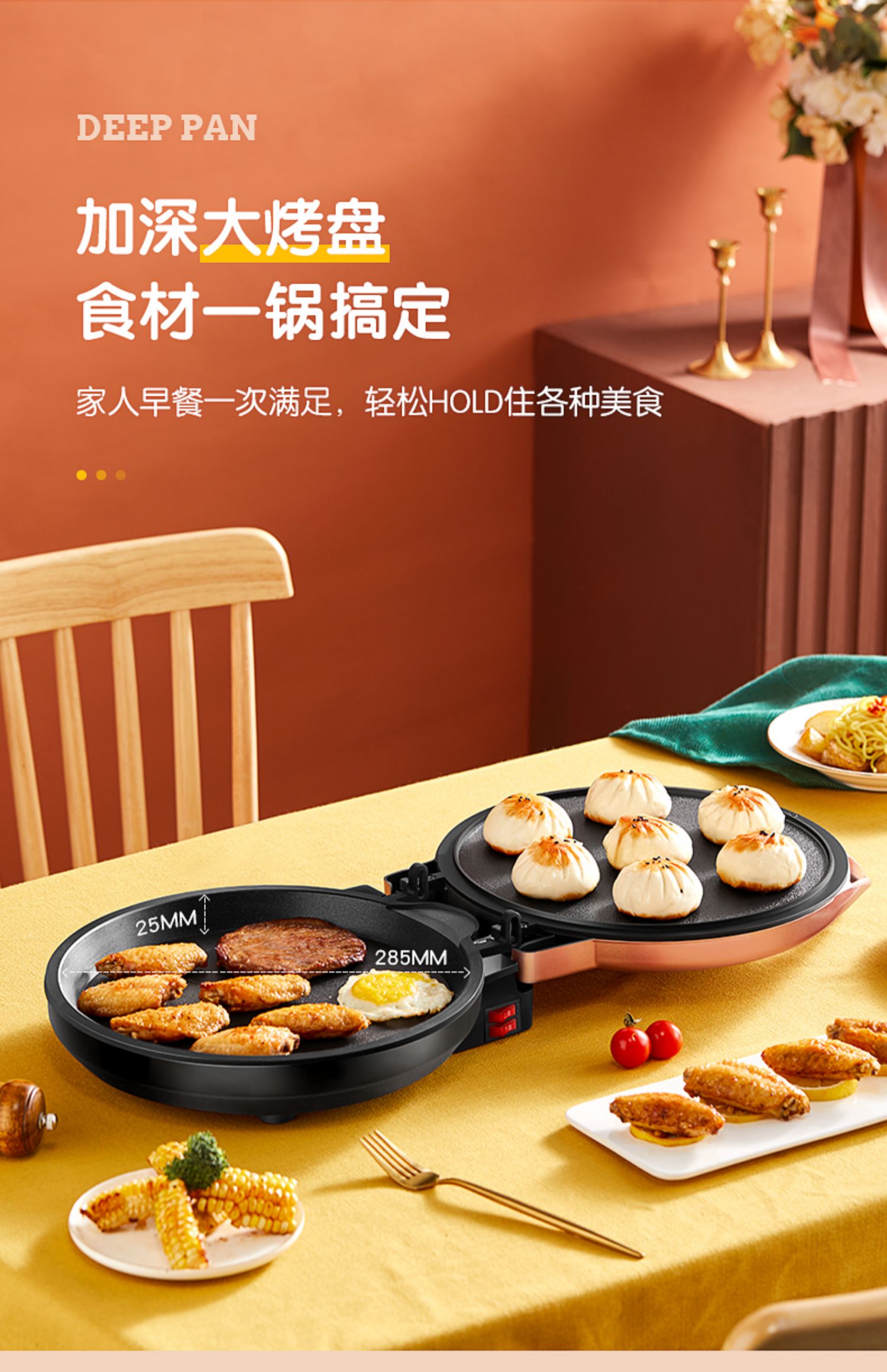 【一年免费换新,七天无理由退换货】志高大牌家用电饼铛!加大加深烤盘!双面独立加热!不如买台志高电饼铛!均匀更酥脆~健康不粘涂层好清洗!烤,烙,煎,烤,炒等多种食材都可!【赠运费险】