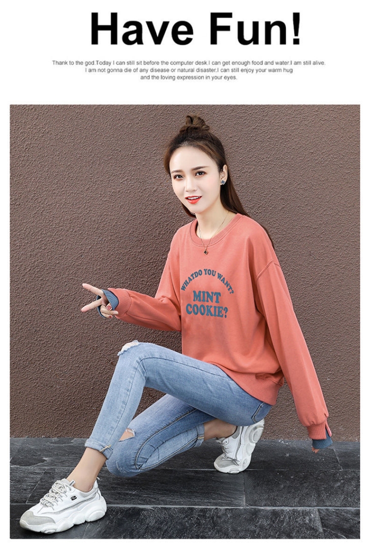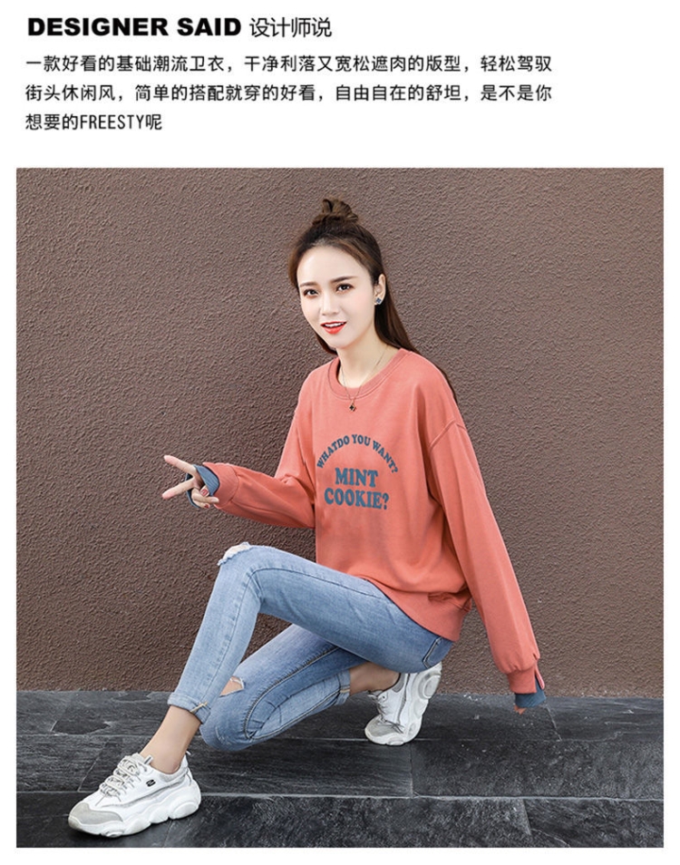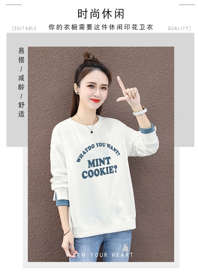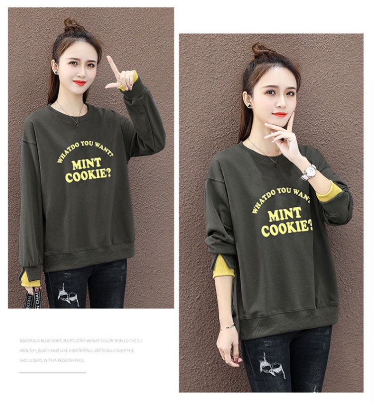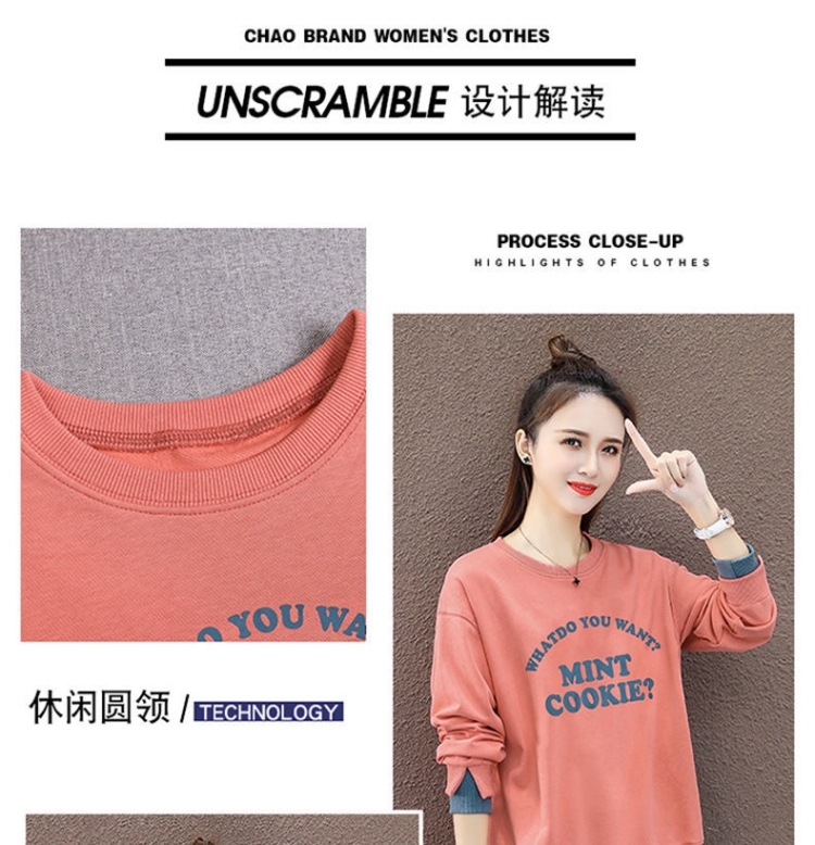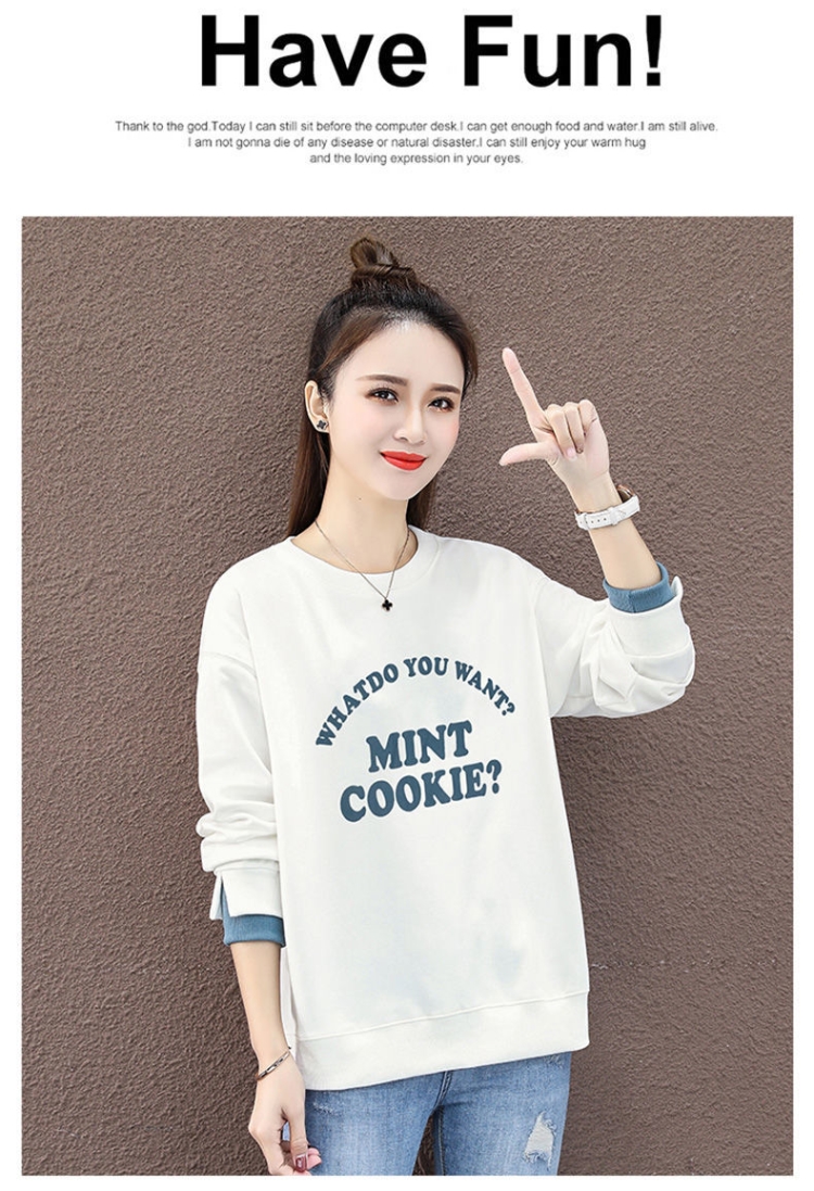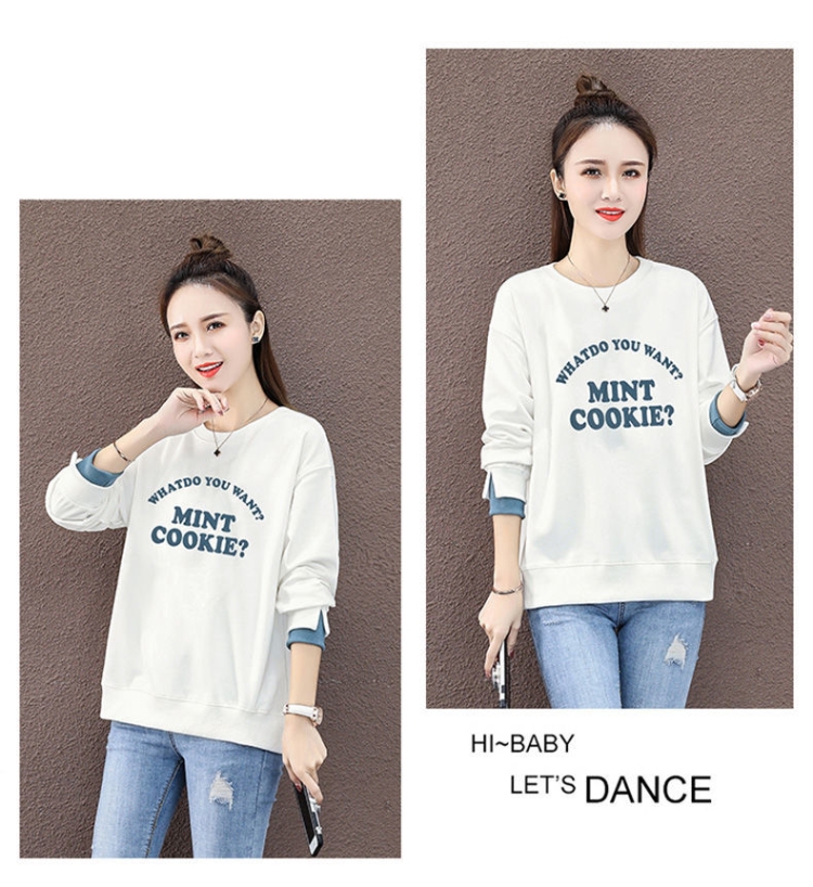 女士精梳棉假两件套头卫衣,2020秋款女韩版长袖T恤,新款宽松外套,学生潮圆领上衣服女装,多款多色【送运费险】