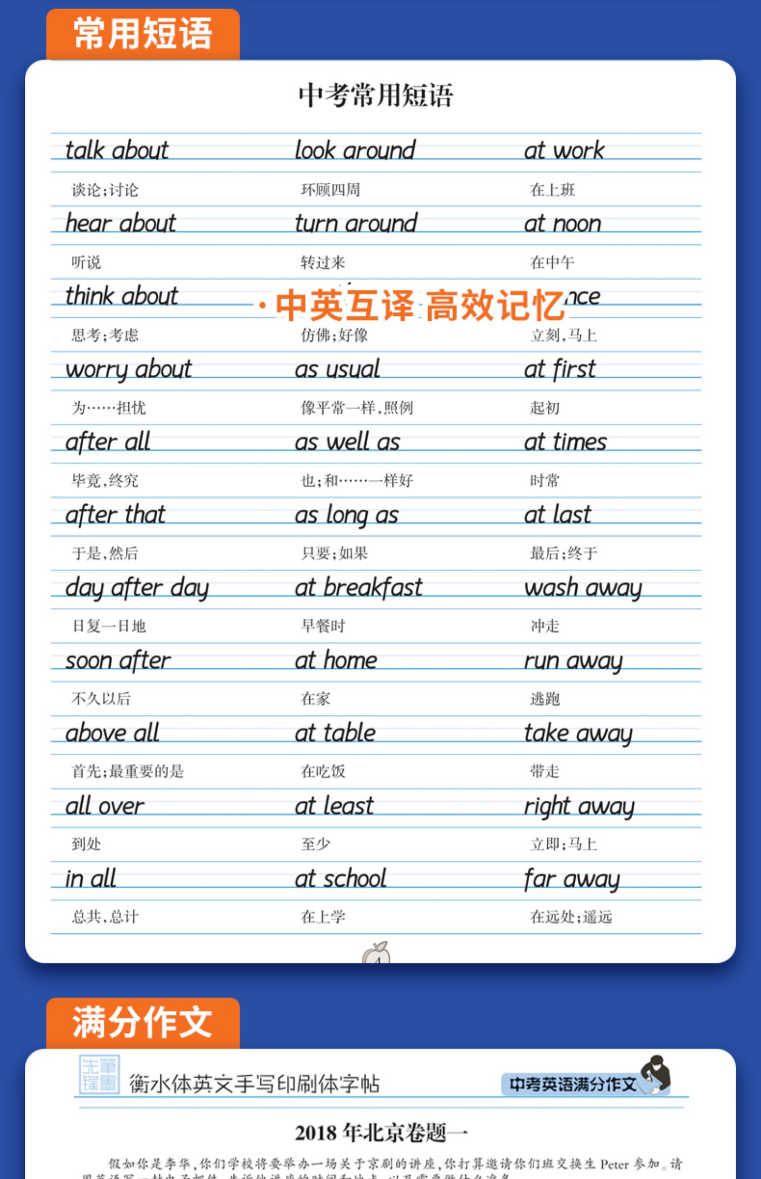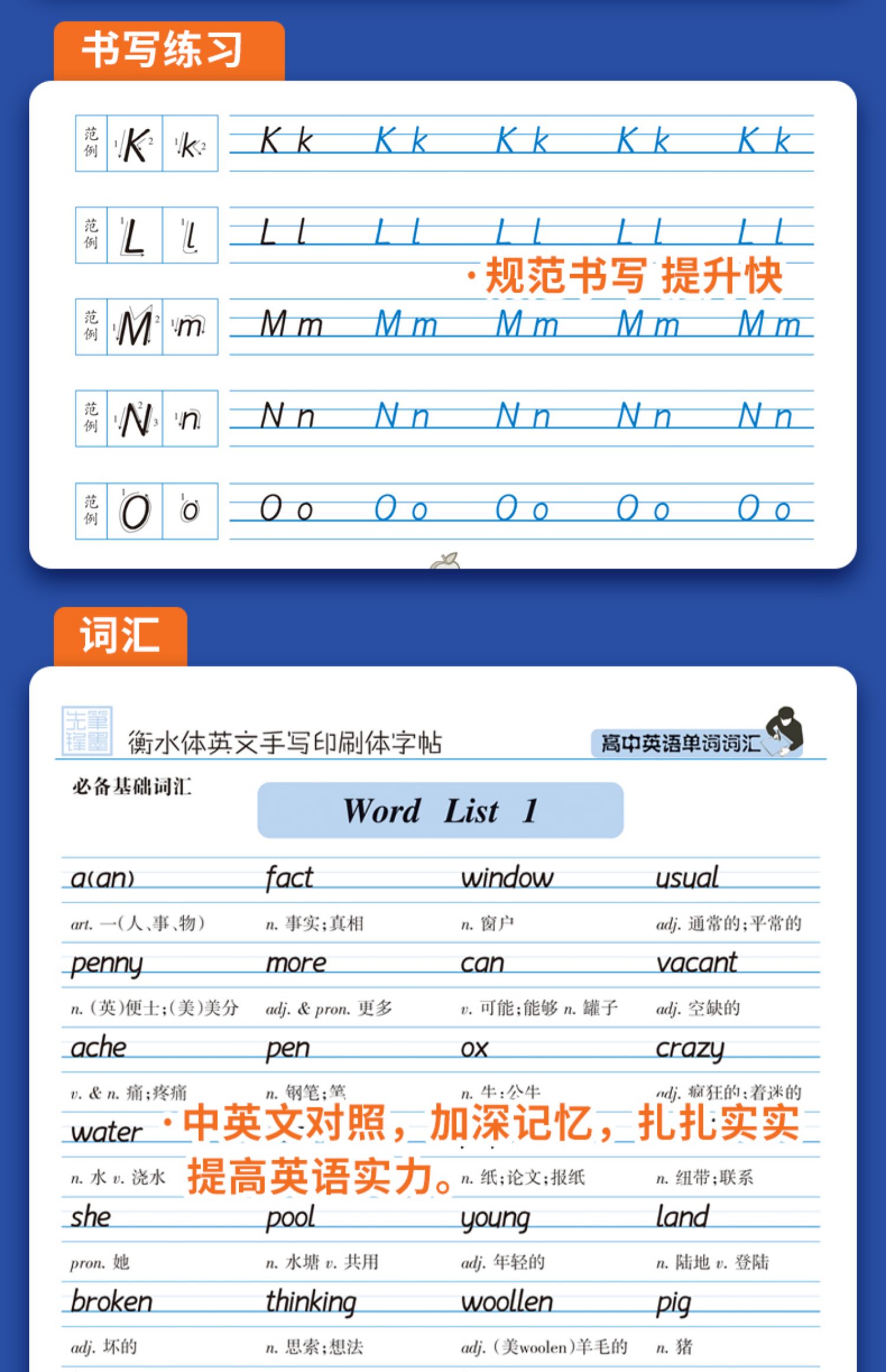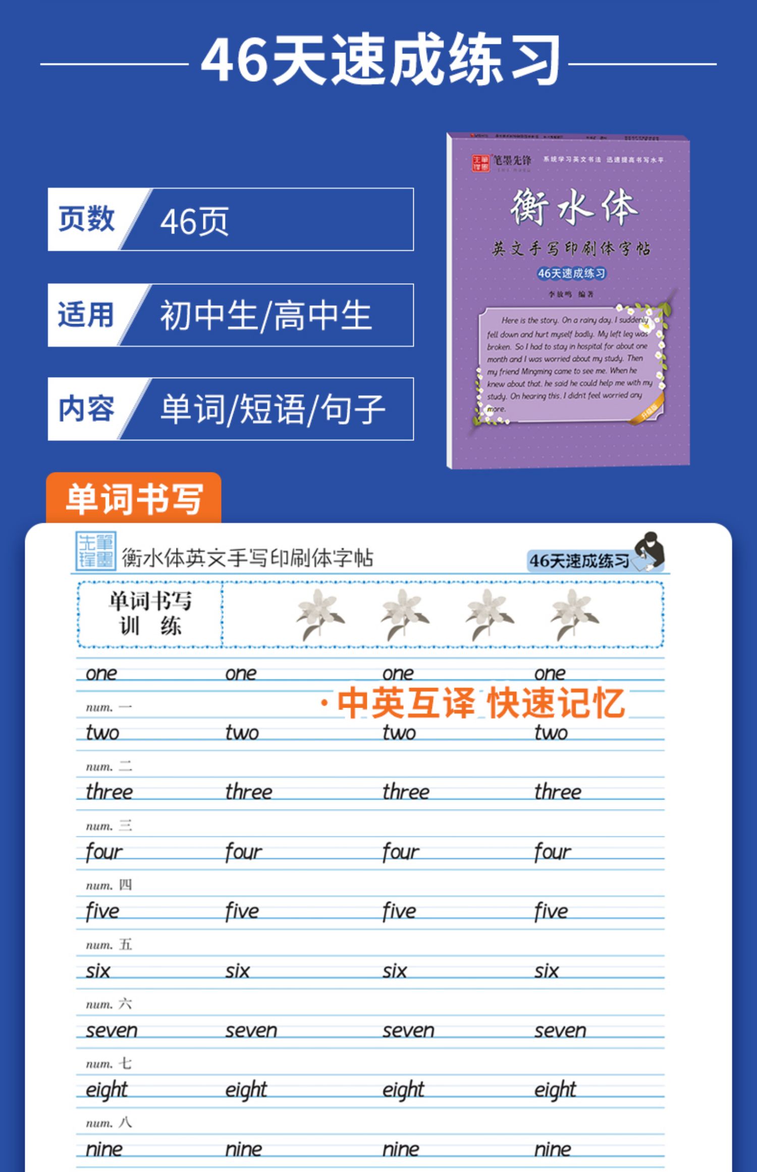 【送一个笔杆+一个握笔器+6支消失笔芯】衡水体英文中文练字帖,字体圆润、饱满、清晰讨巧,加深印象,加厚纸张,经久耐用,把钱花在学习上才是价值的投资!