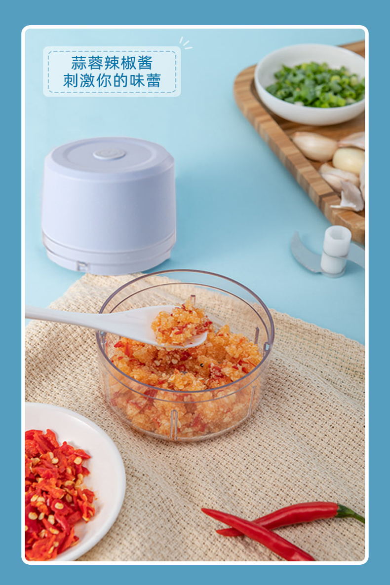 【山雄企业店】无线便携料理机厨房中的佼佼者,绞肉,绞菜,佐料,辅食。一机多用,美食小助手,变身美食达人,食材处理,就是这么简单。一间操作,搅拌有我控。【赠运费险】