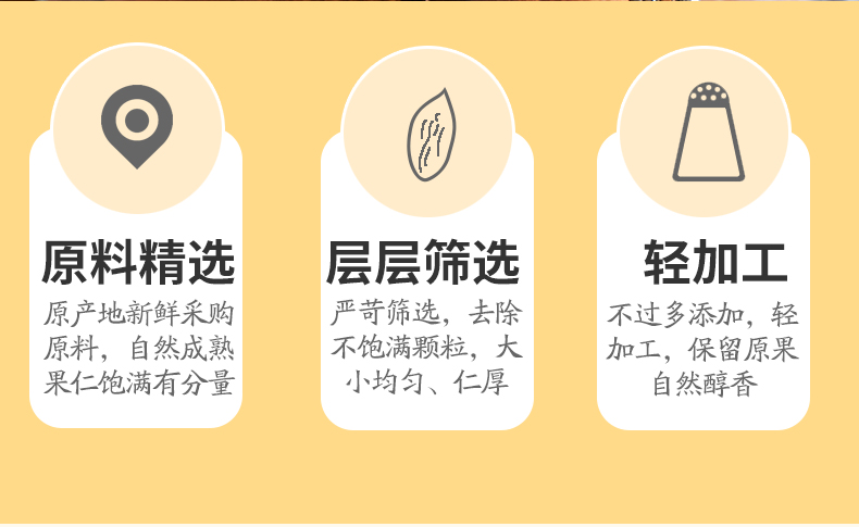 果粒饱满,原滋原味,口感酥脆,含丰富的蛋白质,膳食纤维,维生素E,胡萝卜素,自然源产地,恒温烘焙,保留原香,品质生活,每日坚果!【赠运费险】