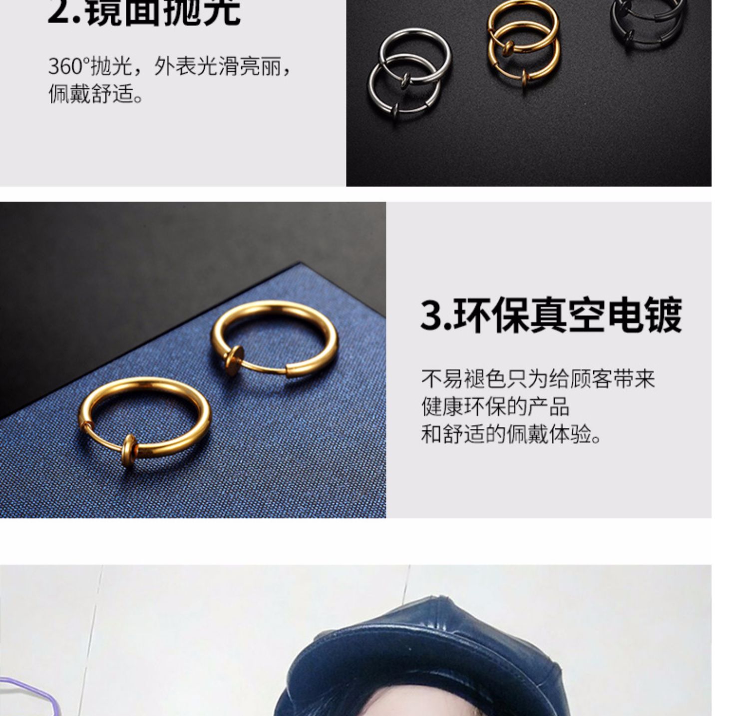 【无须耳洞!多款可选!分大小号!】明星同款,不易变色,坚硬不变形,无须耳洞佩戴舒适蹦跳不掉!简单大方,个性街头,酷帅有形。