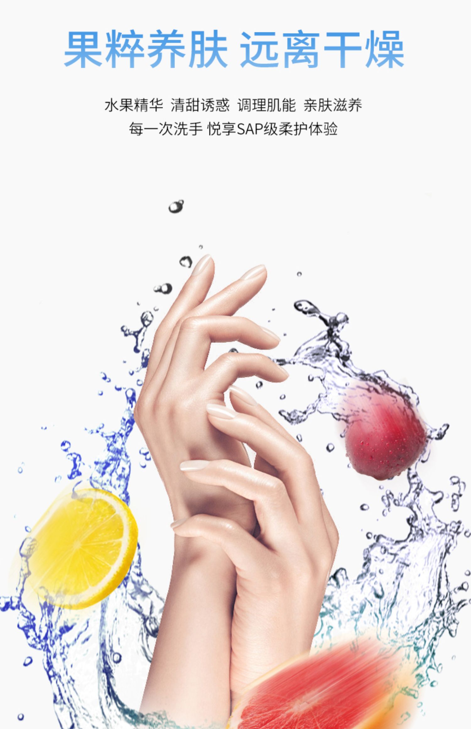三种味道任意组合,水果香氛,源自天然,果粹精华,洁净抑菌,滋润倍护,悦享SAP级柔护体验,温和不伤手,全家的温暖守护!