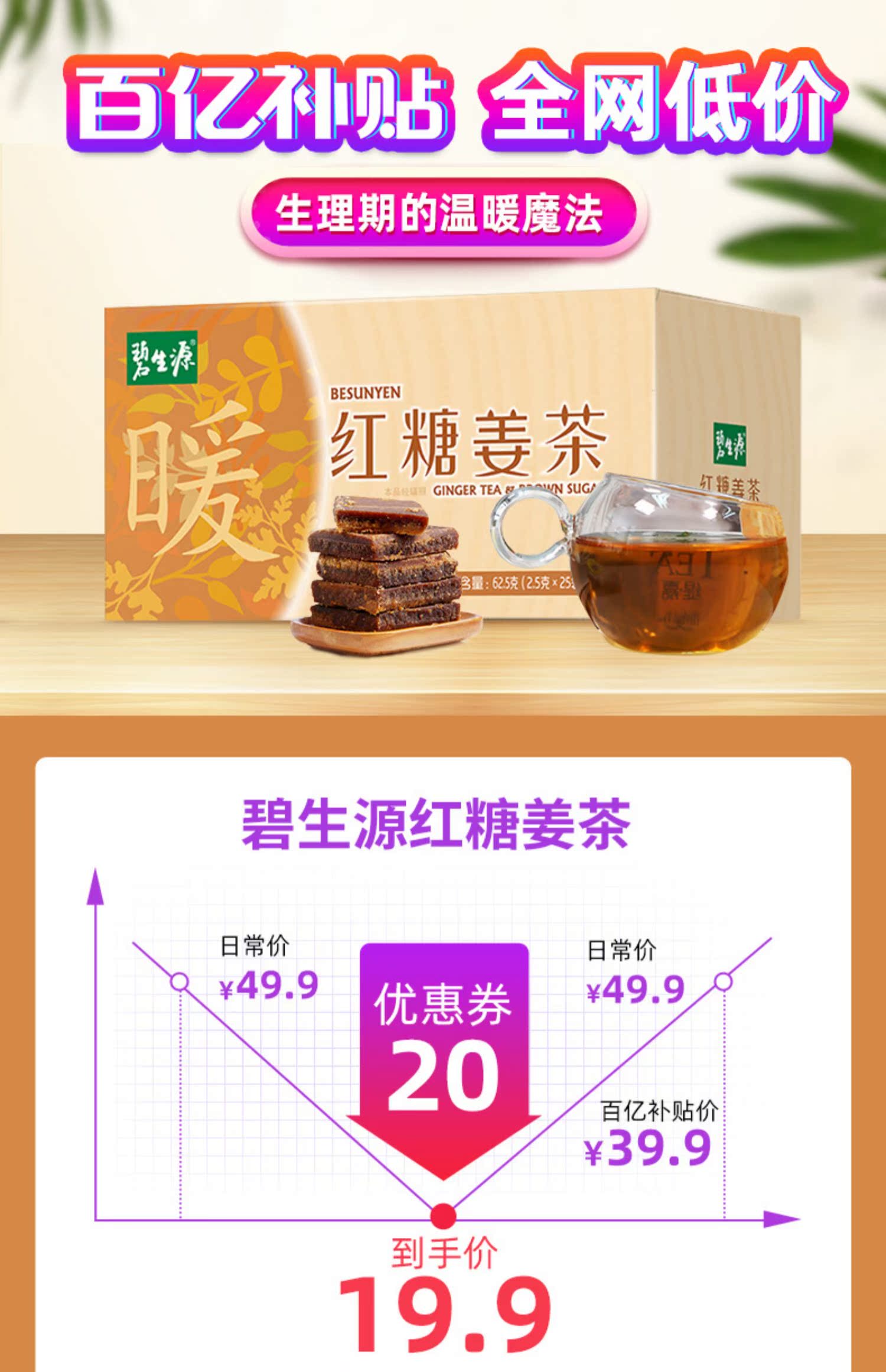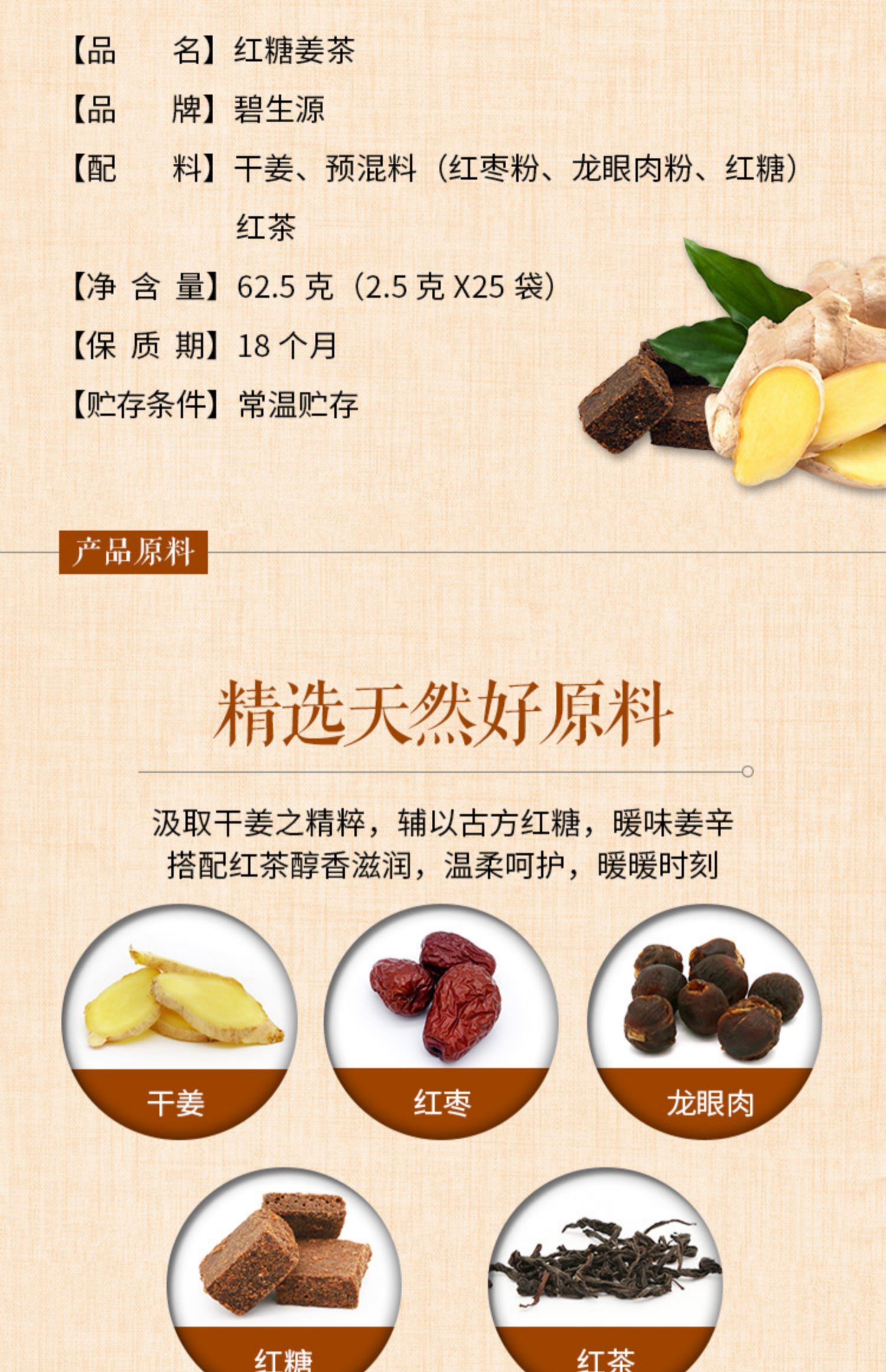 【碧生源】古方红糖,干姜精粹,暖味姜辛,搭配红茶,醇香滋润,口感醇厚,温暖呵护,暖宫必备,缓解痛经,袋袋独立包装【赠运费险】