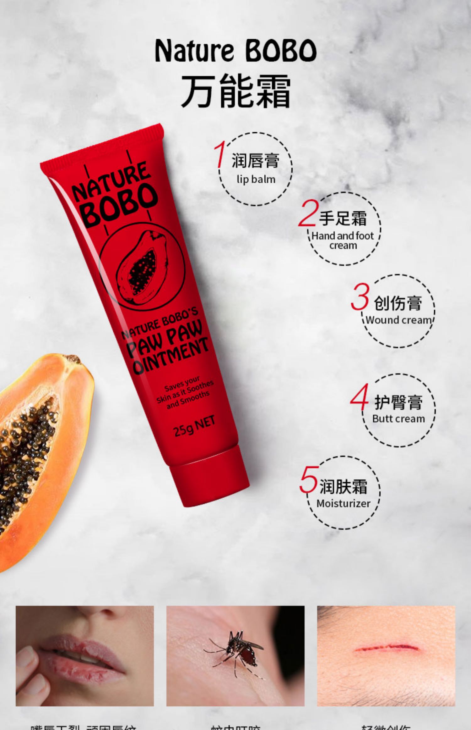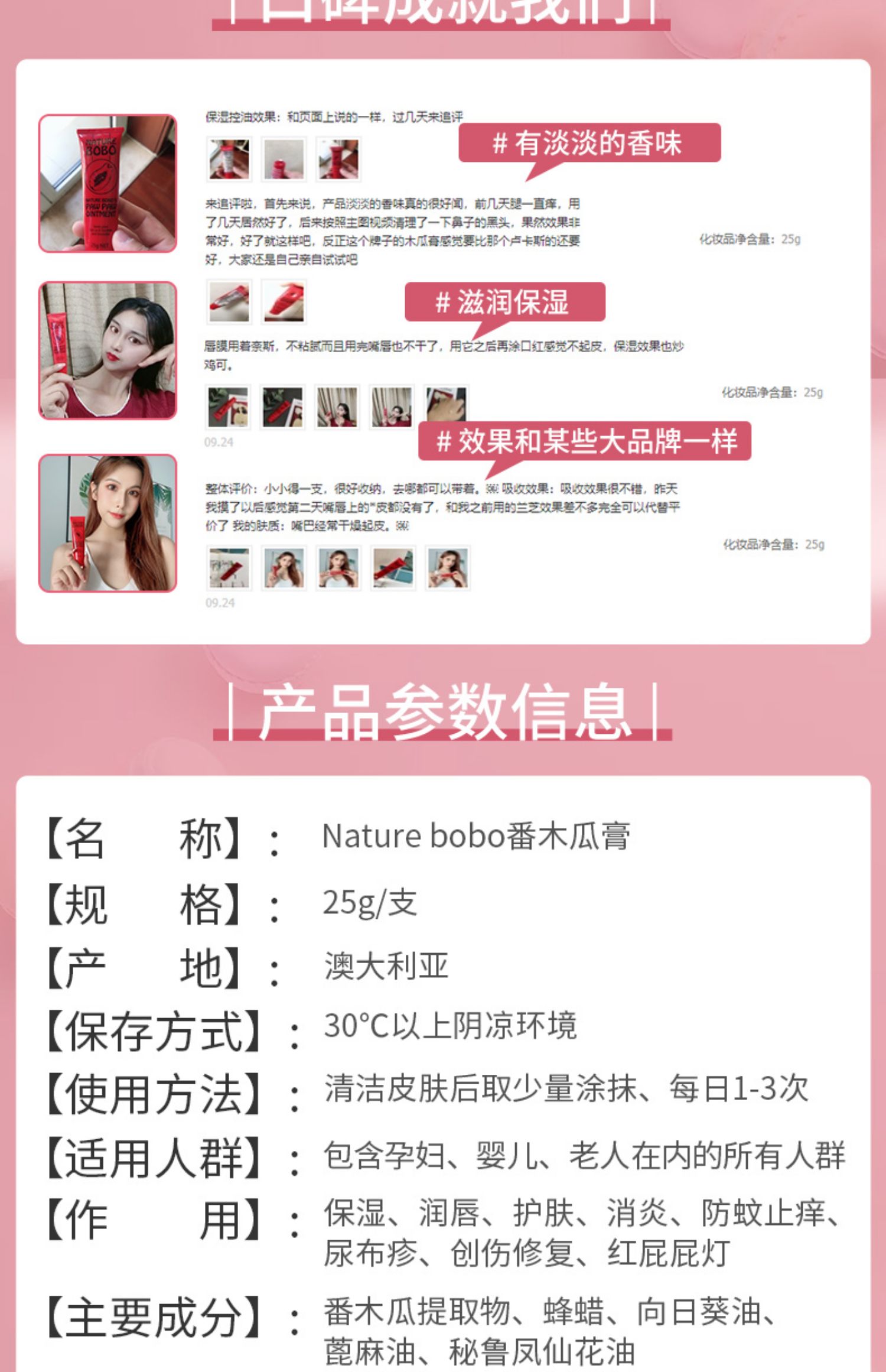 澳洲番木瓜植物萃取,大自然的神奇呵护,保湿滋润补水防干裂,润唇、润肤、润手,效果翻倍!天然取材更放心!都说木瓜膏是国宝级产品,一点都不过分!超多明星,都在用哦~