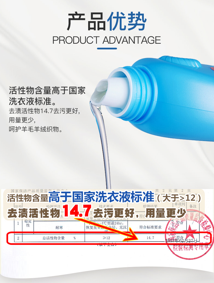 浓缩的更耐用!除菌杀螨!好用不伤手,桑蚕丝,羊毛羊绒,羽绒服类,没有它洗不干净的污渍!无须配合柔顺剂使用,保护衣物!反季价格更便宜哦~
