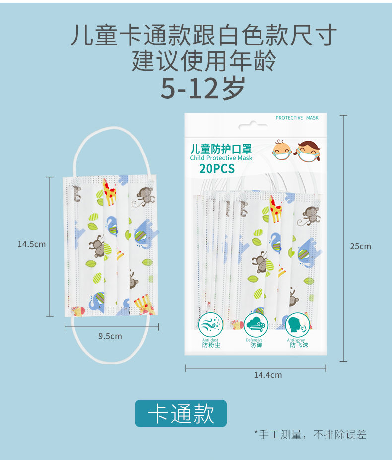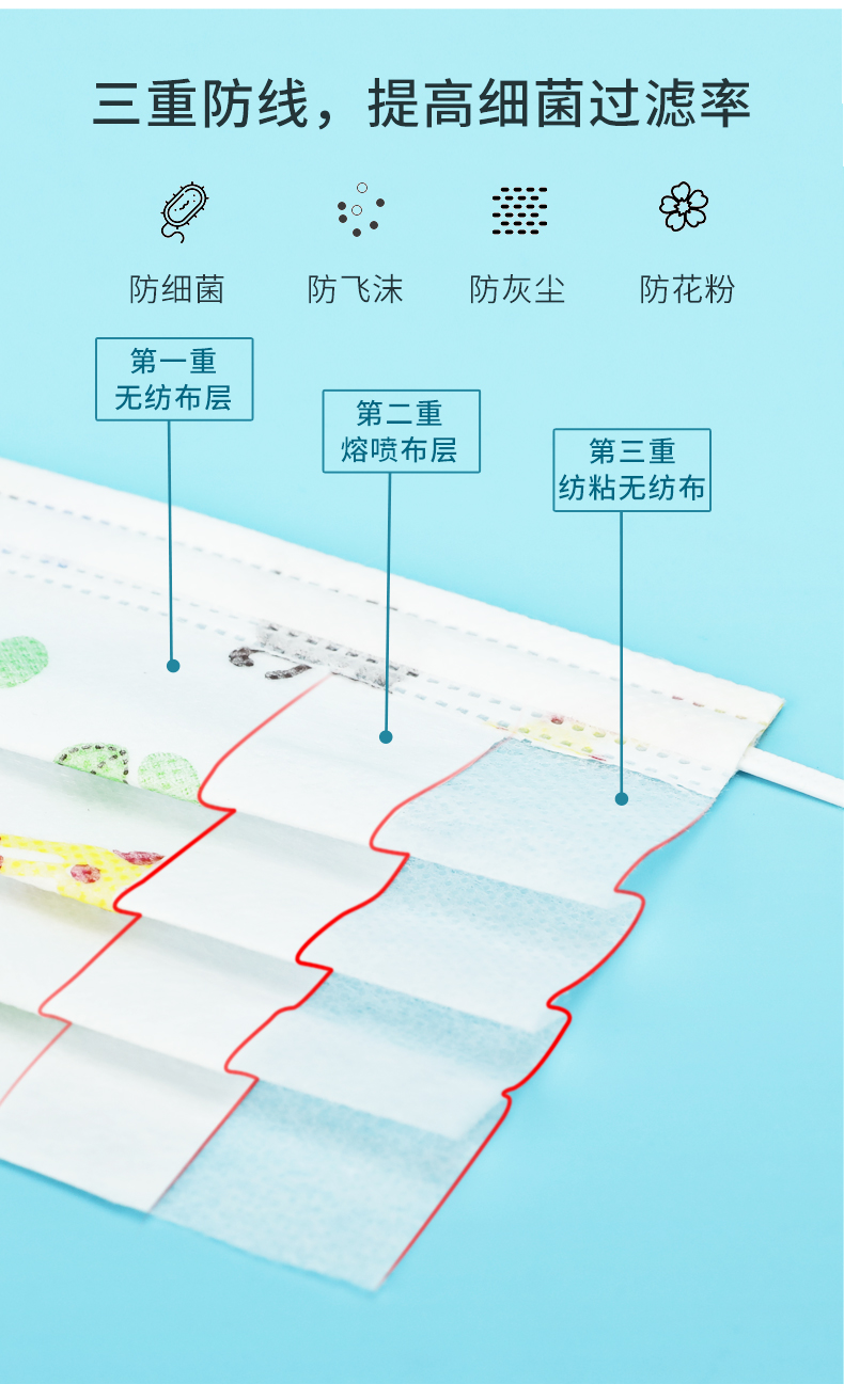【60只装!】熔喷布儿童口罩,卡通印花图案,小孩子一看就喜欢~天气热,孩子用口罩格外费,多囤点没坏处!3D立体裁剪设计,全方位贴合面部~3层防护高效过滤,高品质,久带不闷,宝妈更放心!【赠运费险】