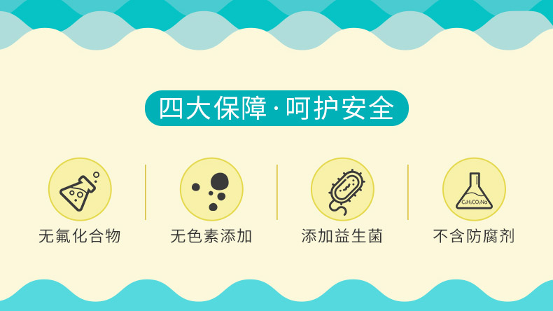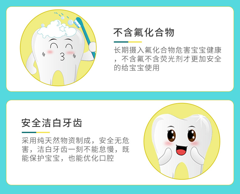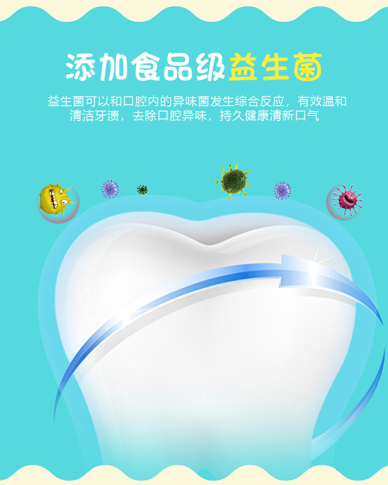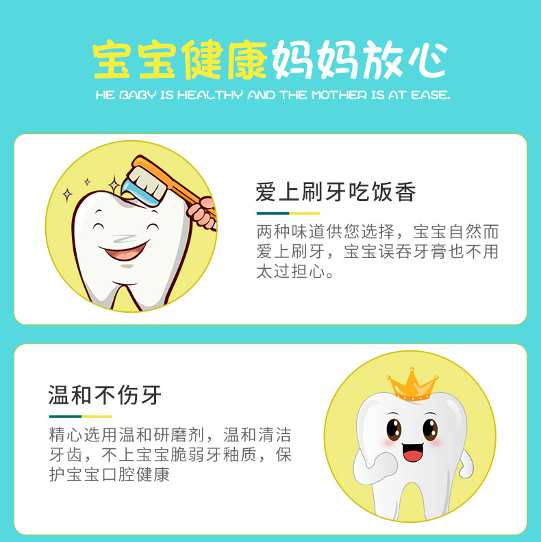 添加食品级益生菌,有效温和清洁牙渍,保护宝宝脆弱牙釉质,去除口腔异味,持久健康清新口气,多种味道供您选择,让宝宝爱上刷牙吃法香~误吞牙膏也不怕啦!