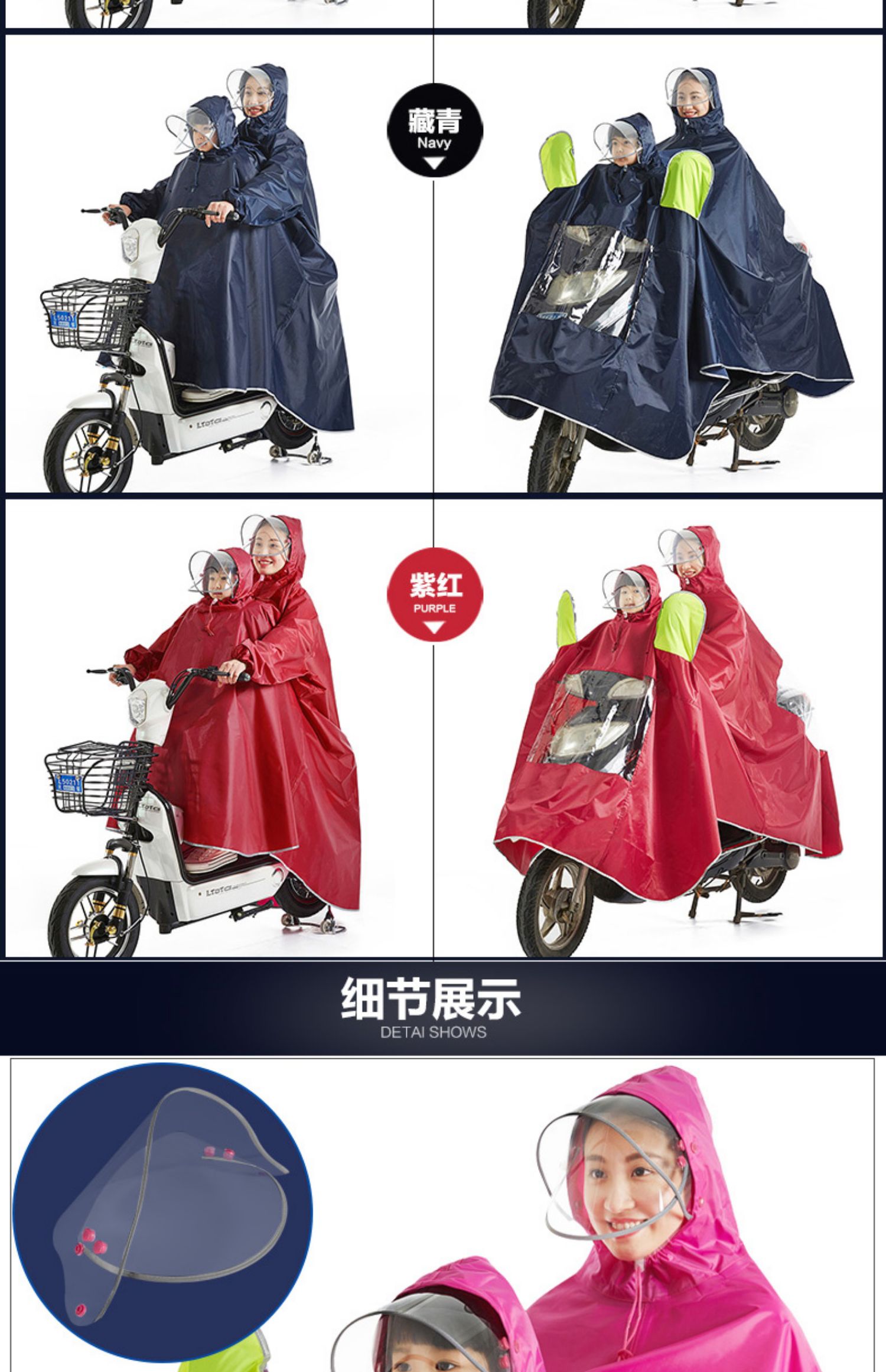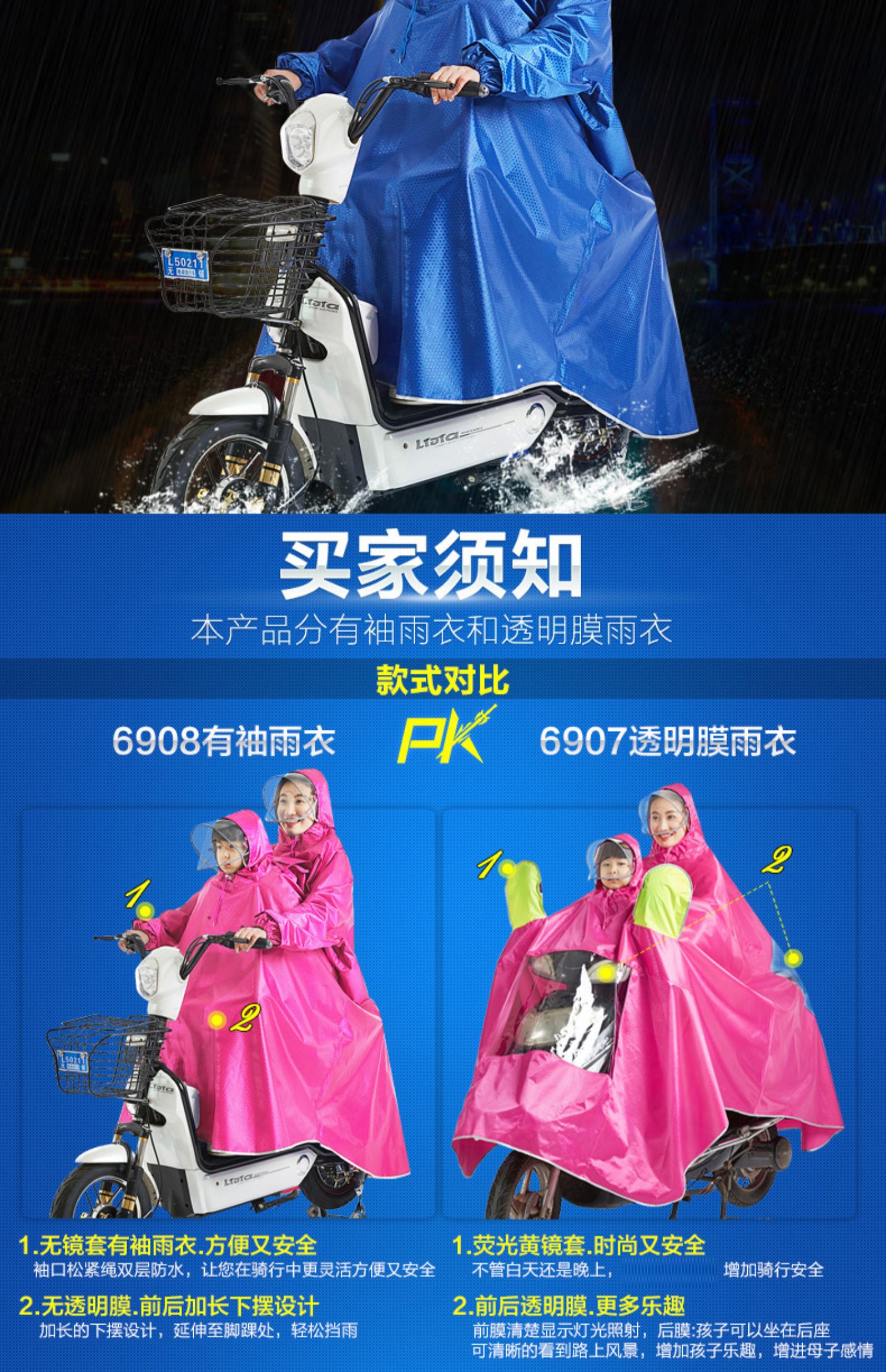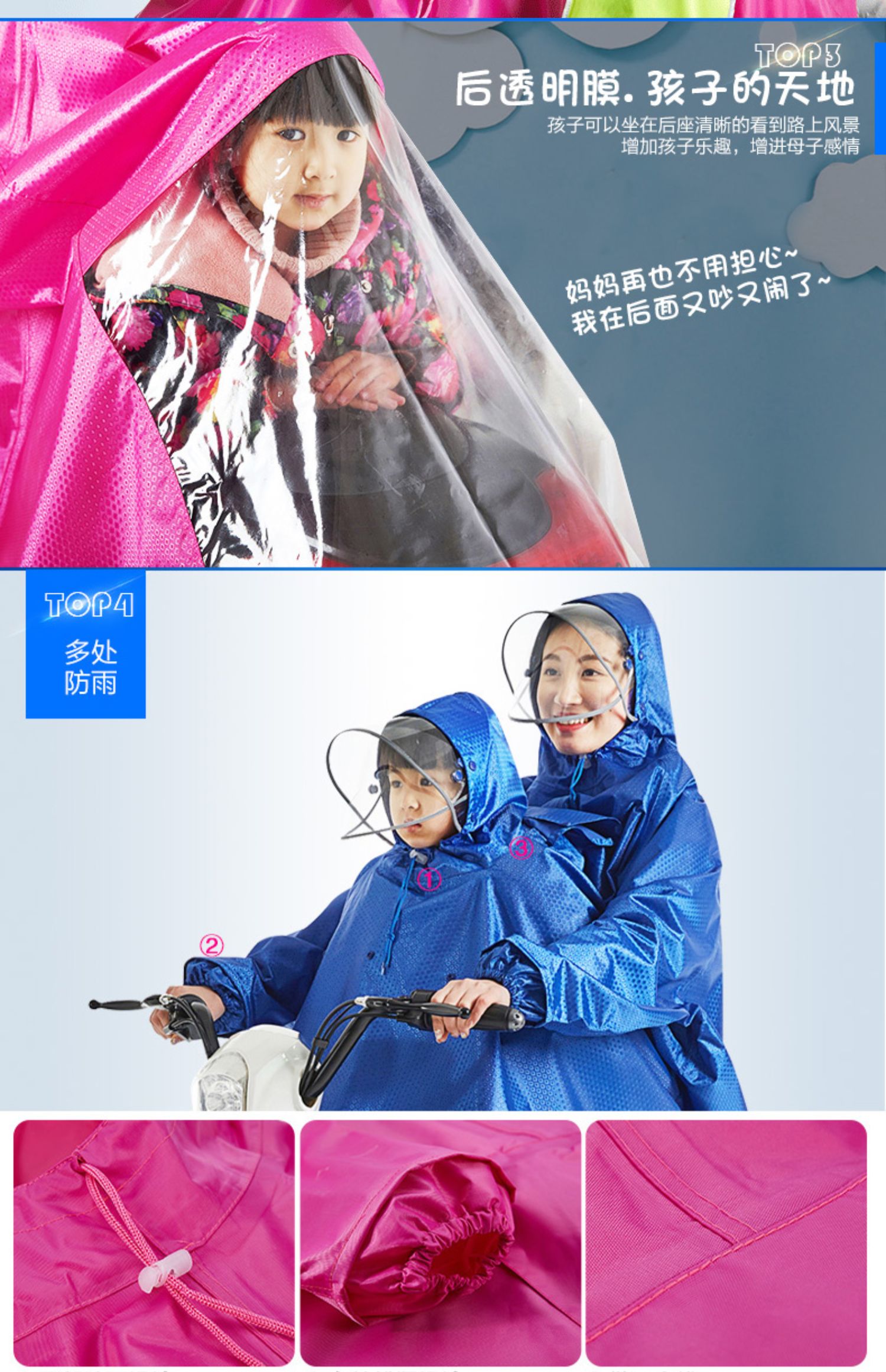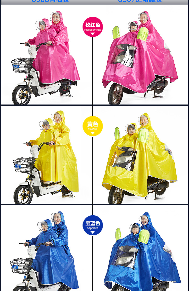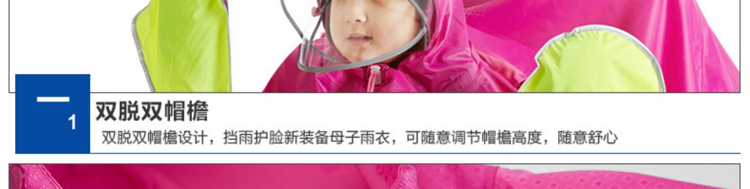 【买就送鞋套】双帽透明膜母子雨衣,荧光黄镜套,双帽檐有袖雨衣,可拆卸双帽檐,安全带袖,牛津面料,可佩戴带头套,高清透材质,多出防雨,风里雨里只为守护你!【赠运费险】