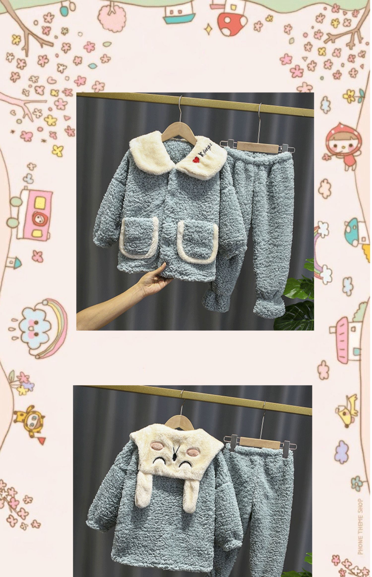 冬季羊羔绒珊瑚绒儿童家居服睡衣套装