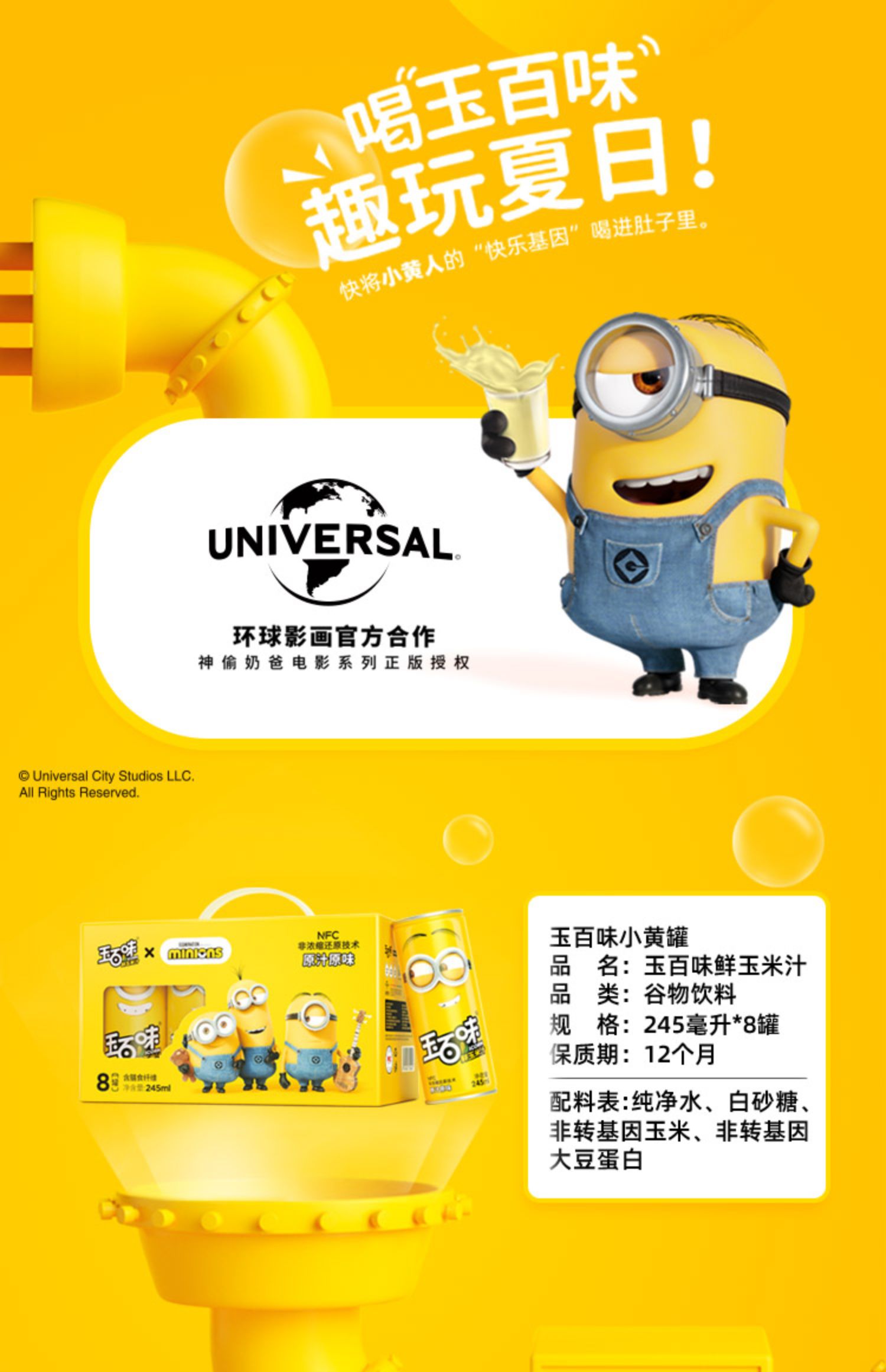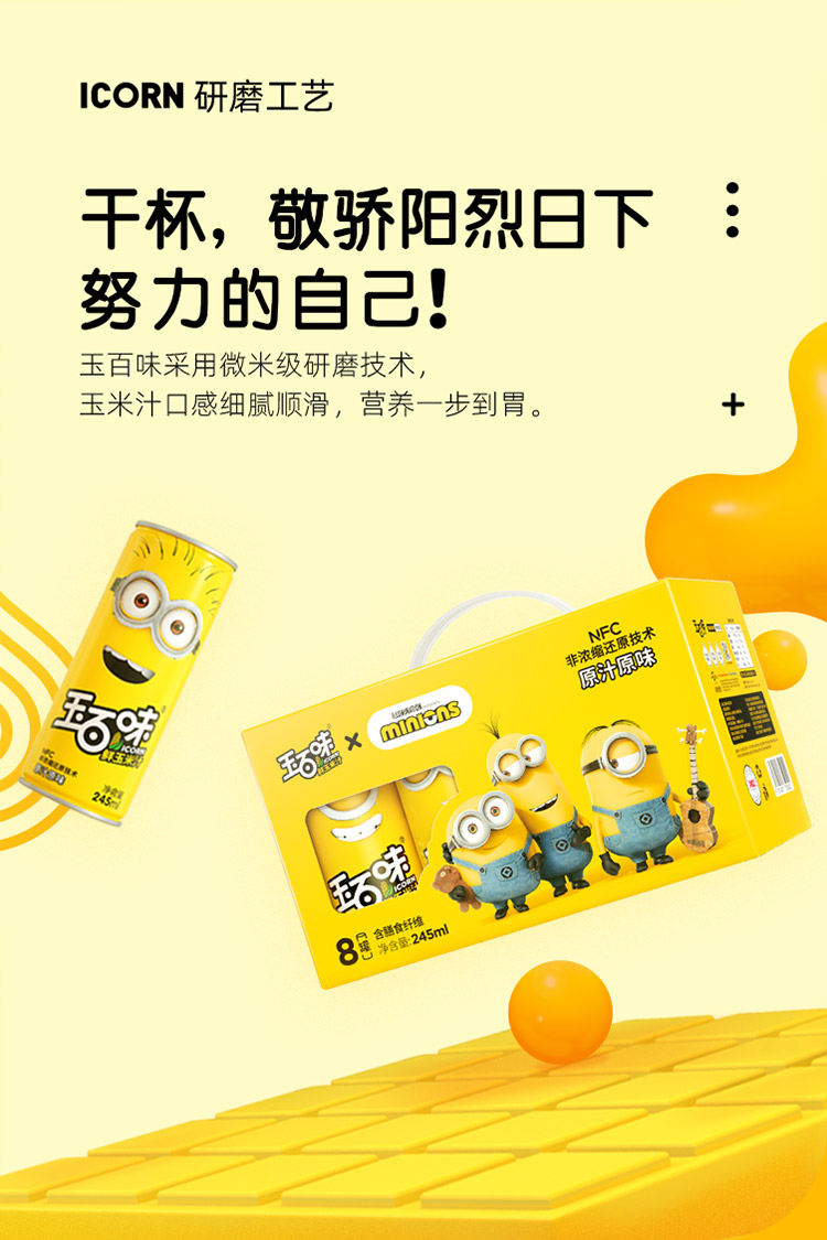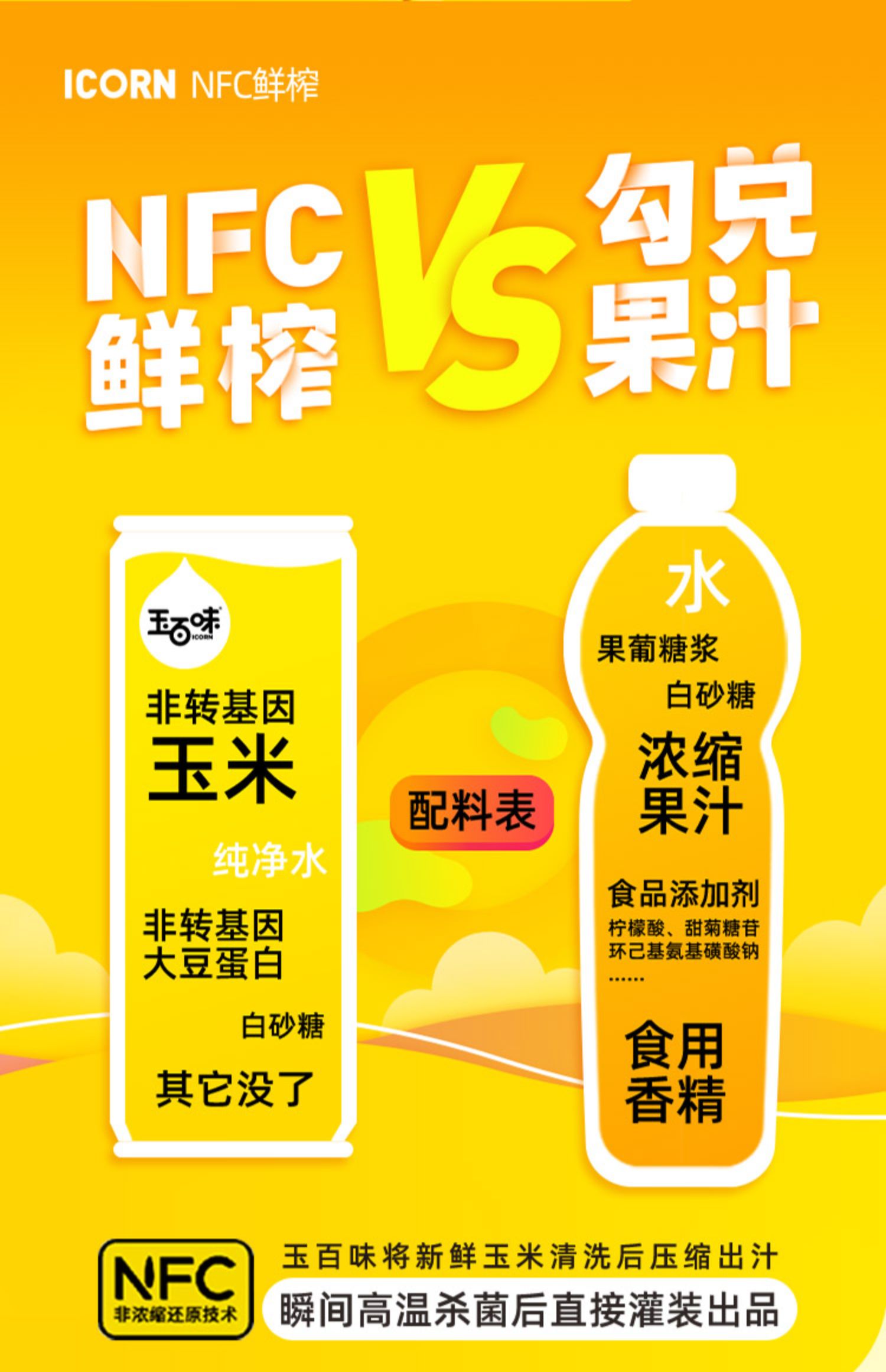 NFC鲜榨玉米汁饮料245ml*8瓶,O添加,健康低糖,低卡路里,健康新饮,口感甘甜清爽,微米级鲜榨研磨封装技术确保新鲜营养,排毒养颜的健康饮料,无胆固醇无脂肪,非浓缩非转基因无防腐剂。