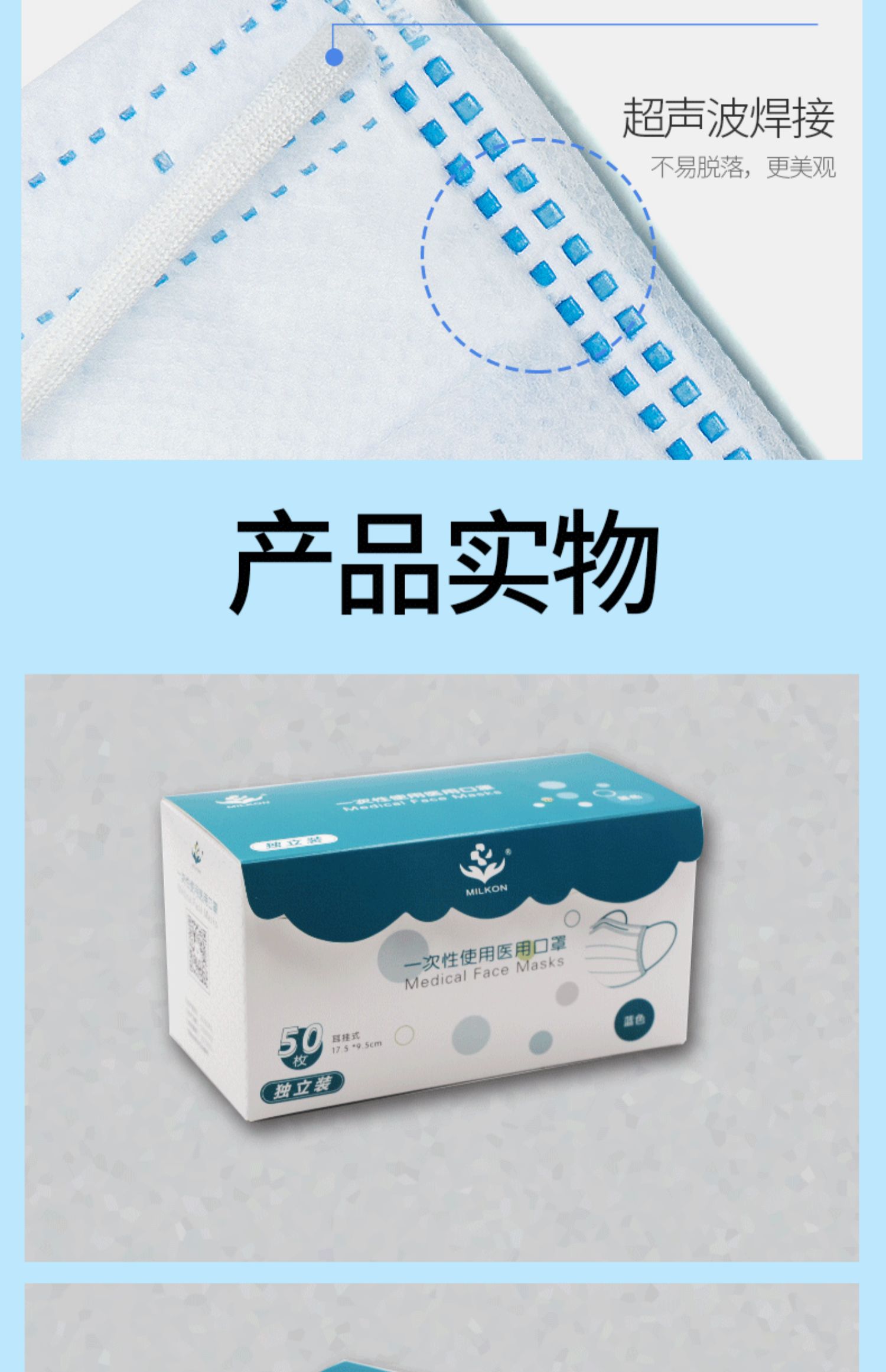 【拍两件,第二件0元】【上万好评,4.9分好评】Milkon官方店旗舰店!医用级一次性防护口罩【钢印防伪】内含三层过滤含熔喷层,三层防护更安全,全方位贴合面部~严格监工,合格证书齐备!防疫必备。