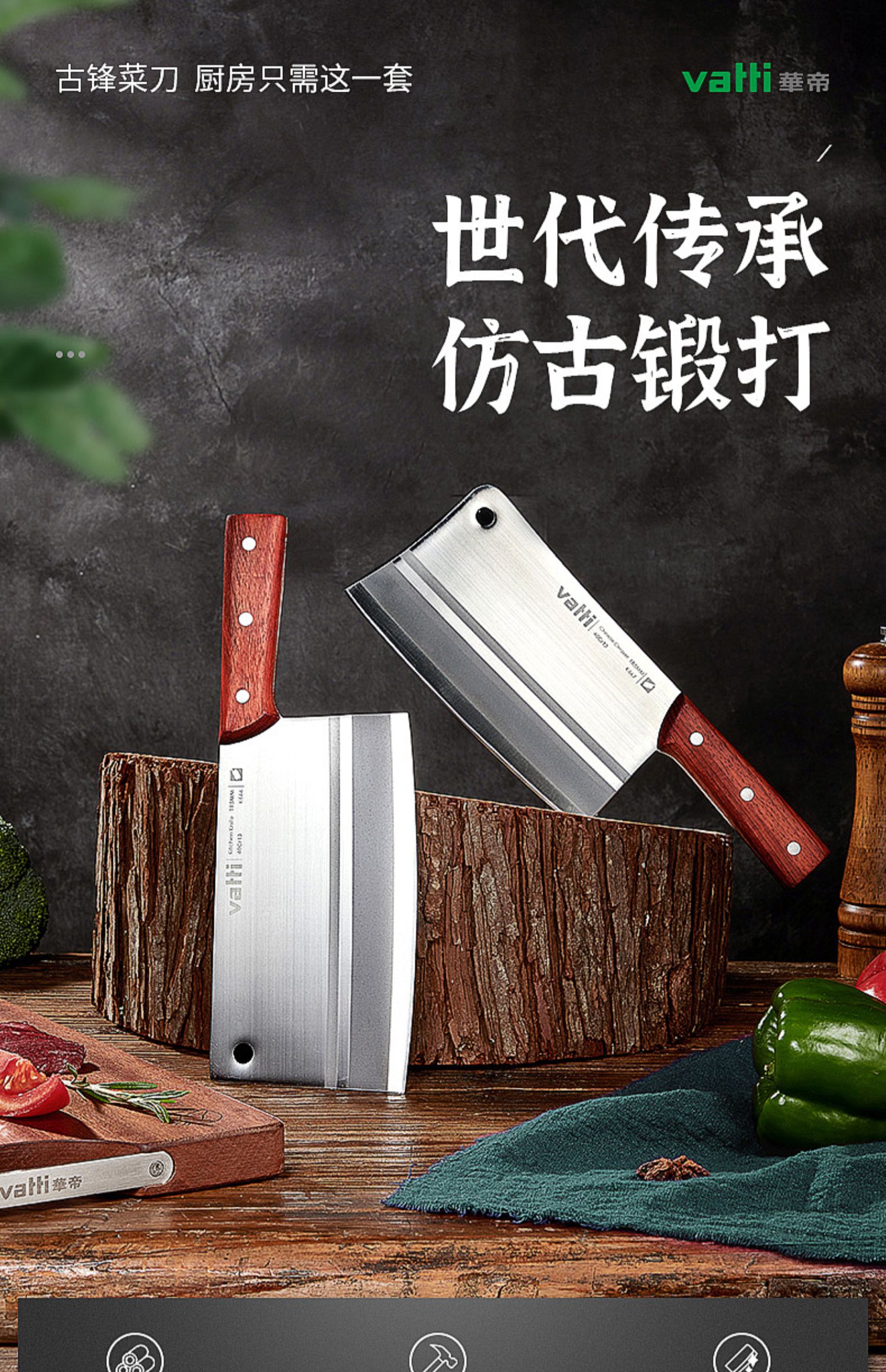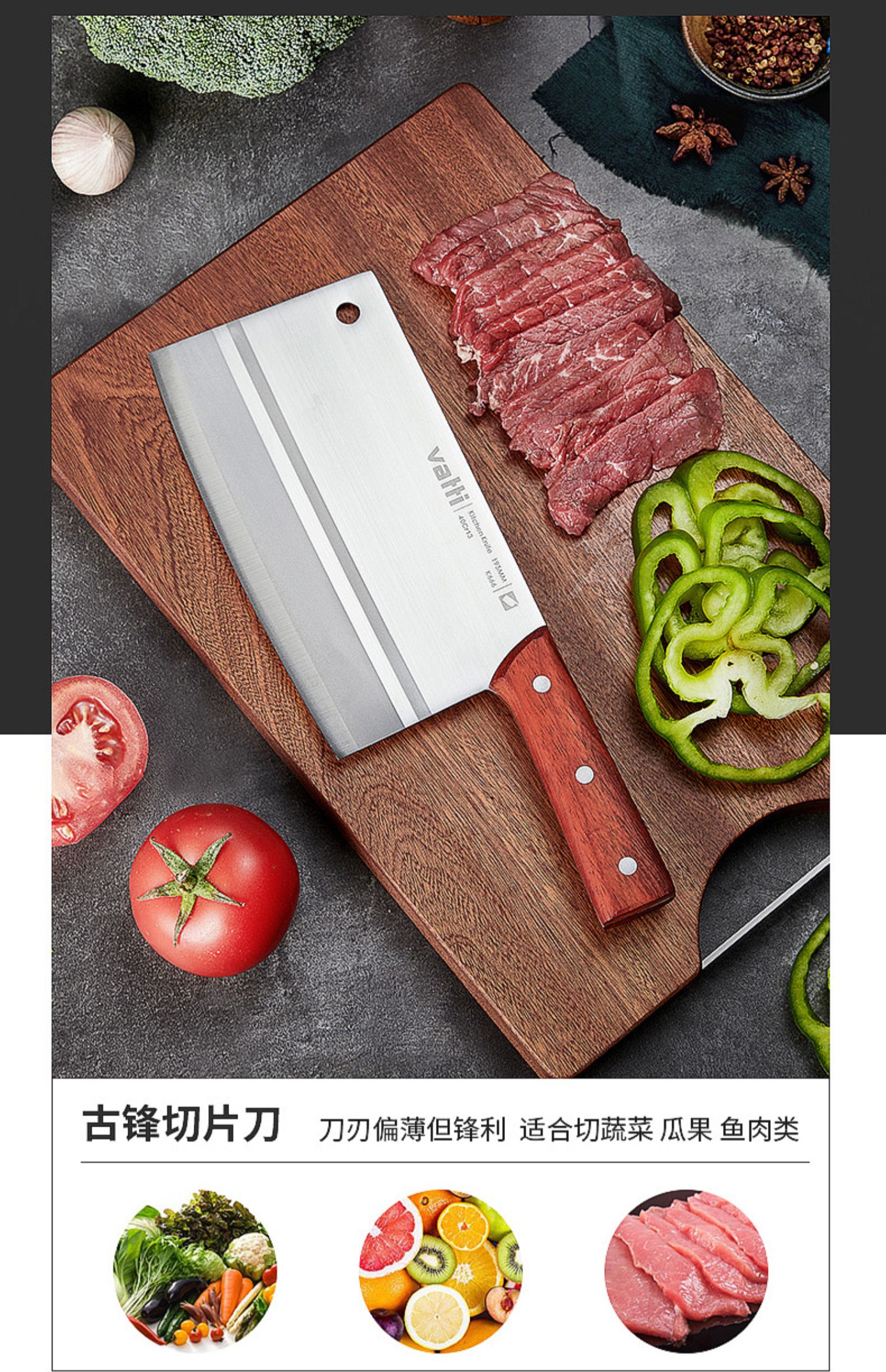 华帝大牌保证,手工二次开刃,不生锈,精湛工艺出好刀,不锈钢,超快锋利,切菜一气呵成~高颜值高效率~用好刀做好菜,厨房必备!【赠运费险】