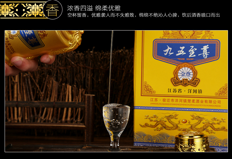 传承三千年酿造历史,坚持古法酿造,秉承传统技艺是酿酒亦是传承,无色透明,清澈清凉,浓香四溢绵优雅!