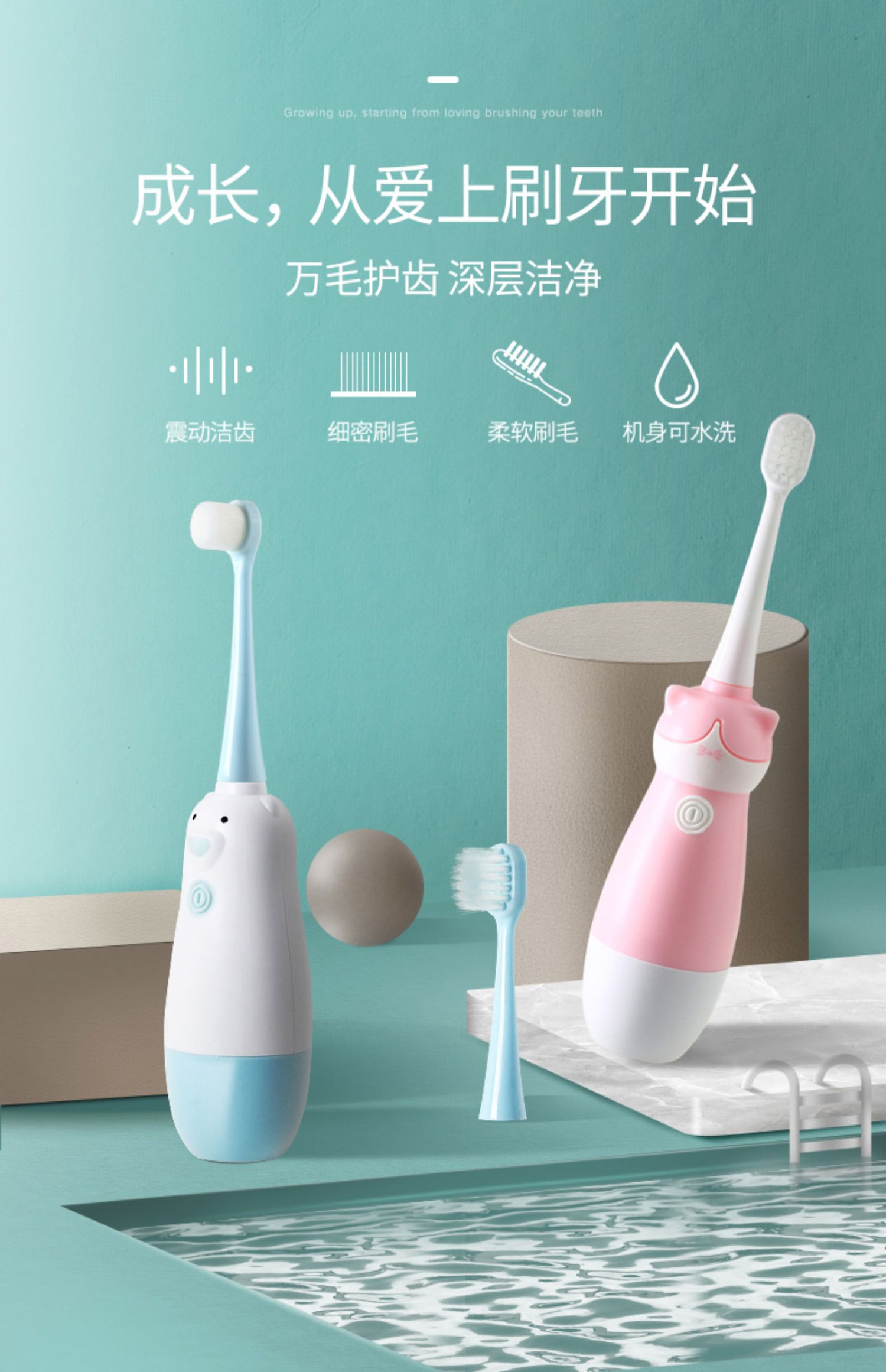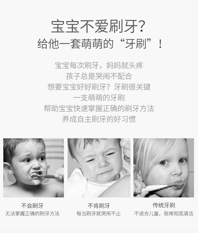 【ourlove母婴旗舰店】敲极阔爱的儿童牙刷高效清洁,呵护孩子的口腔健康,杜邦软毛不伤牙龈,贴合齿缝,深层清洁,卡通造型,一眼就喜欢,超静音震动设计,童趣满满让宝宝爱上刷牙