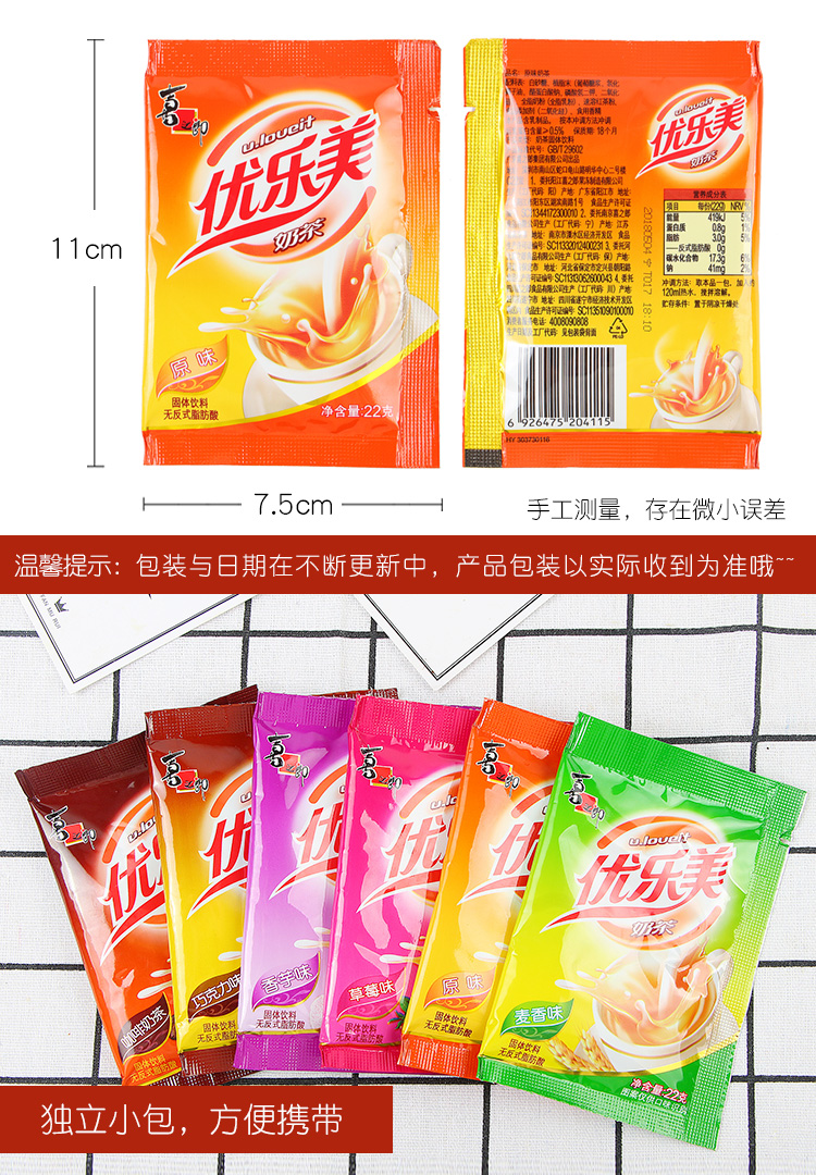 知名优乐美奶茶,方便实惠,奶茶味十足,随时冲泡,满足你爱喝奶茶的心。