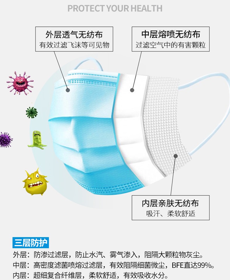 【现货速发】一次性医用口罩,国家标准检查合格,细菌过滤效率≥百分之95.0,卫生安全,三层设计,透气舒适;过滤率大于百分之95!保护家人安全!