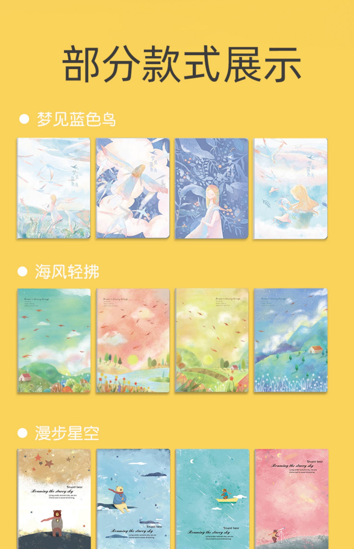 【超值】纸张手感光滑,精致磨砂套胶,圆角边缘,加厚加料耐用,封面图案丰富,非常实惠的套装可以用很久