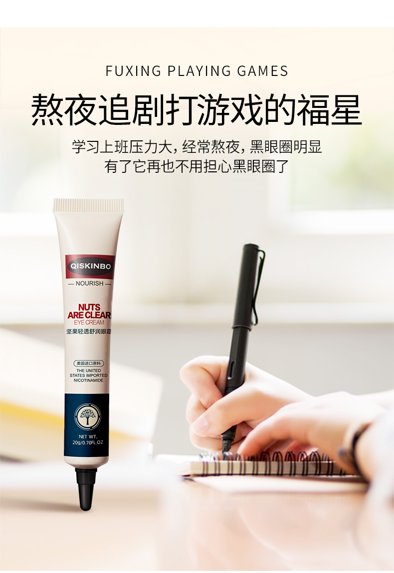启肤宝坚果眼霜,精选摩洛哥坚果油,细腻丝滑质地,帮助淡化黑眼圈,淡化细纹,柔嫩弹润,补水保湿,让你的双眼休息一下。【赠运费险】