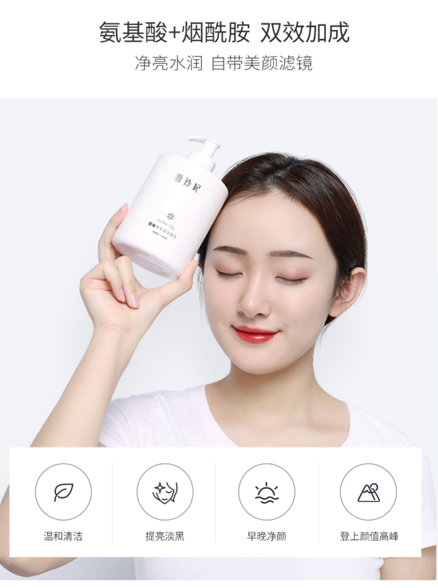 【明星赵露思推荐】日本进口氨基酸,温和配方不刺激。一瓶抵五瓶,500g大容量。性价比超高。】日本进口氨基酸,温和配方不刺激,敏感肌与孕妇都可以使用,同时里面添加烟酰胺成分,提亮肤色、舒
