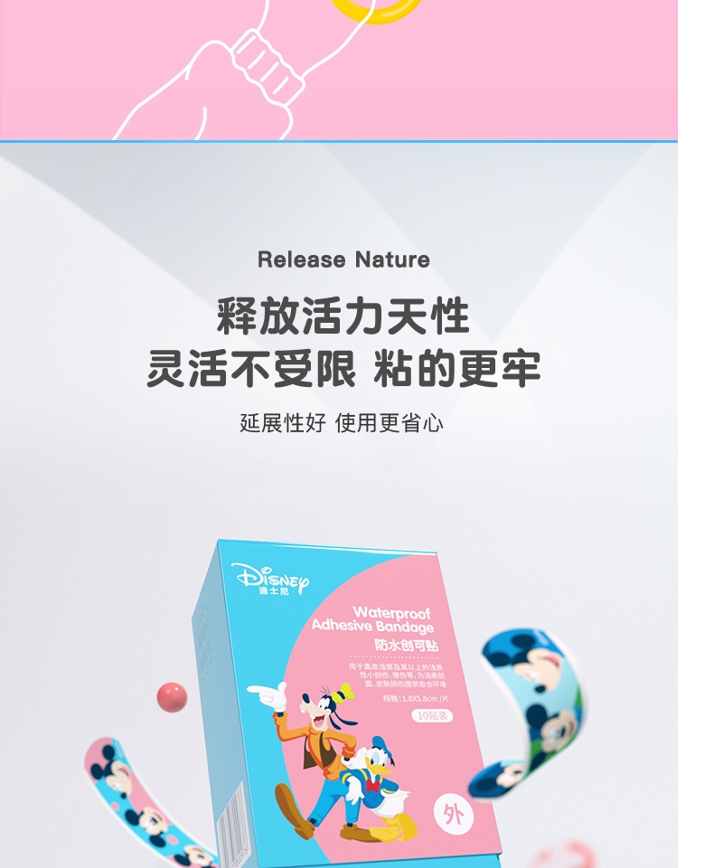 【迪士尼】可爱卡通米奇创口贴,宝贝探索世界小磕碰,幸好有“不怕水的米奇”易撕易贴,保护创面,舒适防水,防过敏,弹力十足,无菌透气,应急家庭必备医疗物品。【赠运费险】