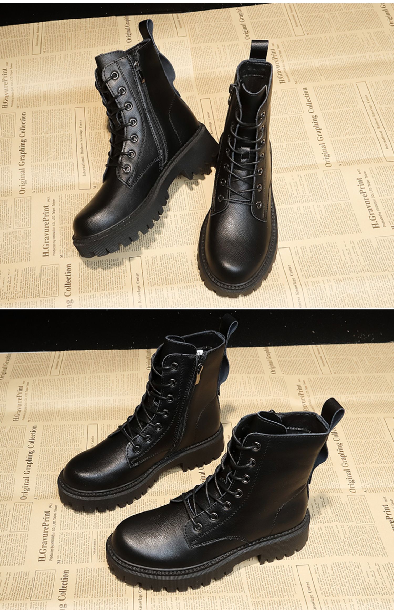马丁靴女厚底机车靴加绒短靴