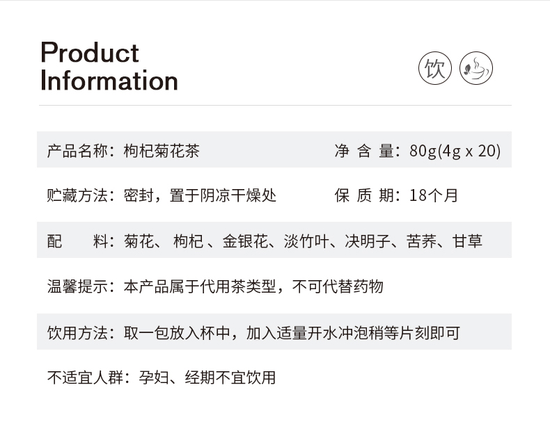 仁和枸杞菊花茶,高颜值好口感!精选7种草本原料,仁和配比,泡一杯,茶色透亮,口感悠扬~独立小包装,携带冲泡都方便,好原料看的见,是好茶也是好礼哦~【赠运费险】