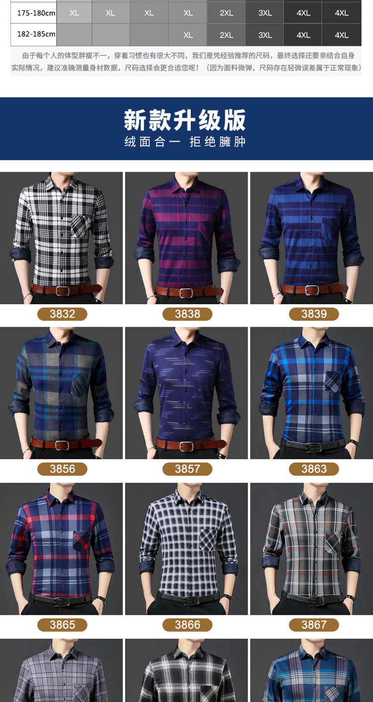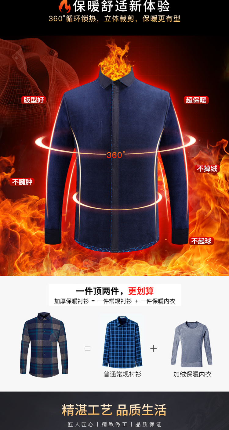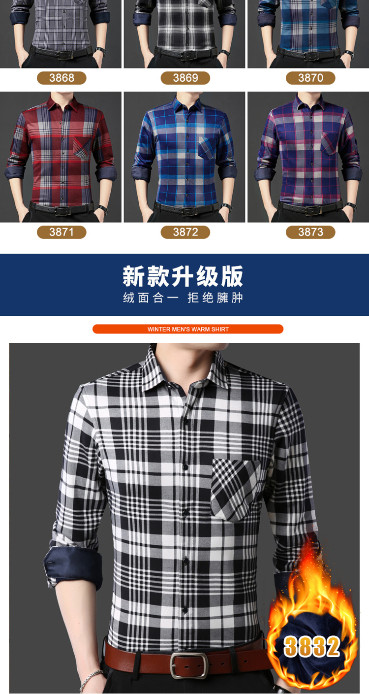 男士秋冬季加绒加厚保暖衬衫,长袖中老年格子印花衬衣,休闲大码上衣,做工精良,手感柔和细腻,品质保证,多款多色【送运费险】