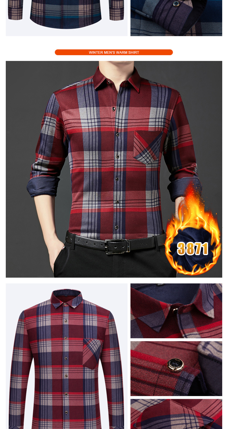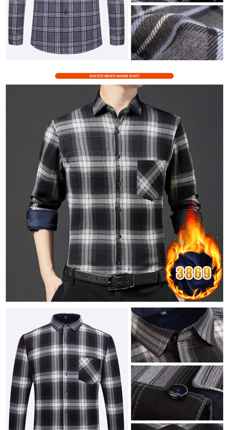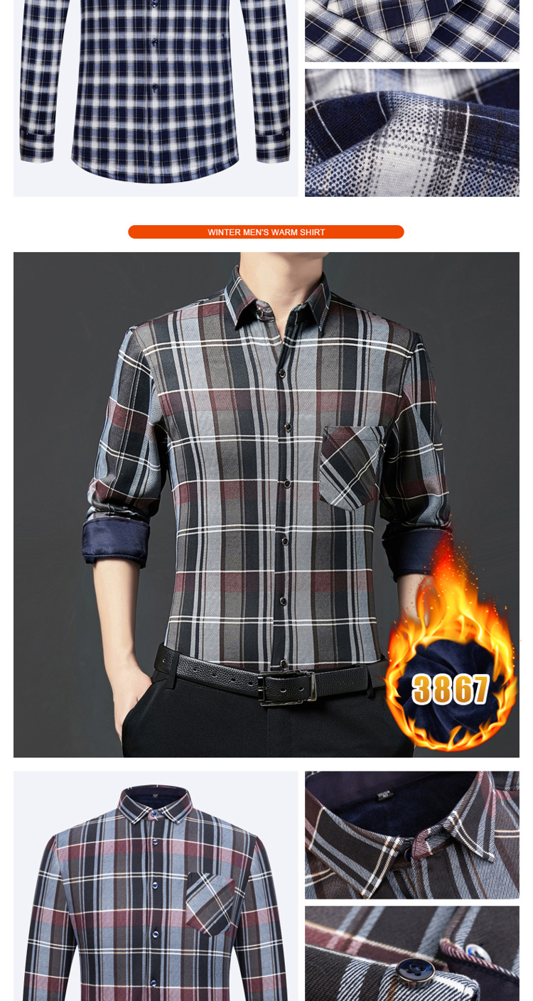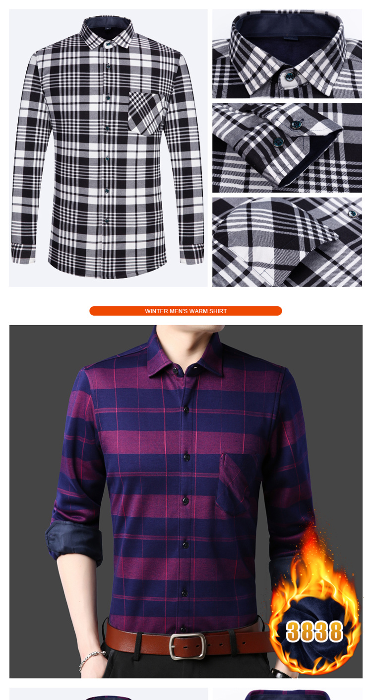男士秋冬季加绒加厚保暖衬衫,长袖中老年格子印花衬衣,休闲大码上衣,做工精良,手感柔和细腻,品质保证,多款多色【送运费险】