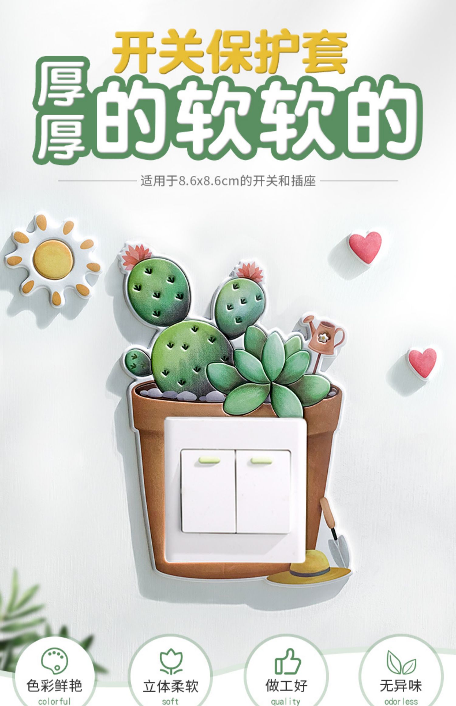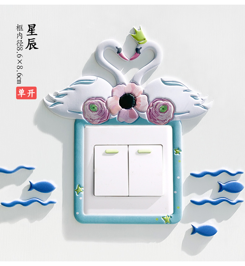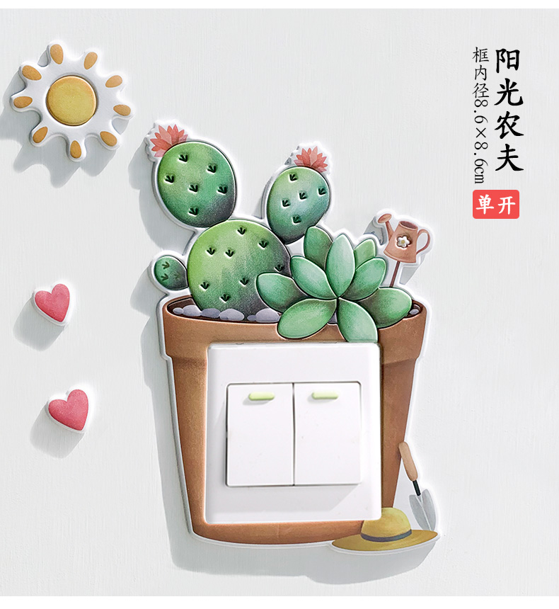 3D立体卡通开关贴,充电插座面板创意保护装饰,客厅卧室到处都可用,经久耐用,美丽大方,多款任选~