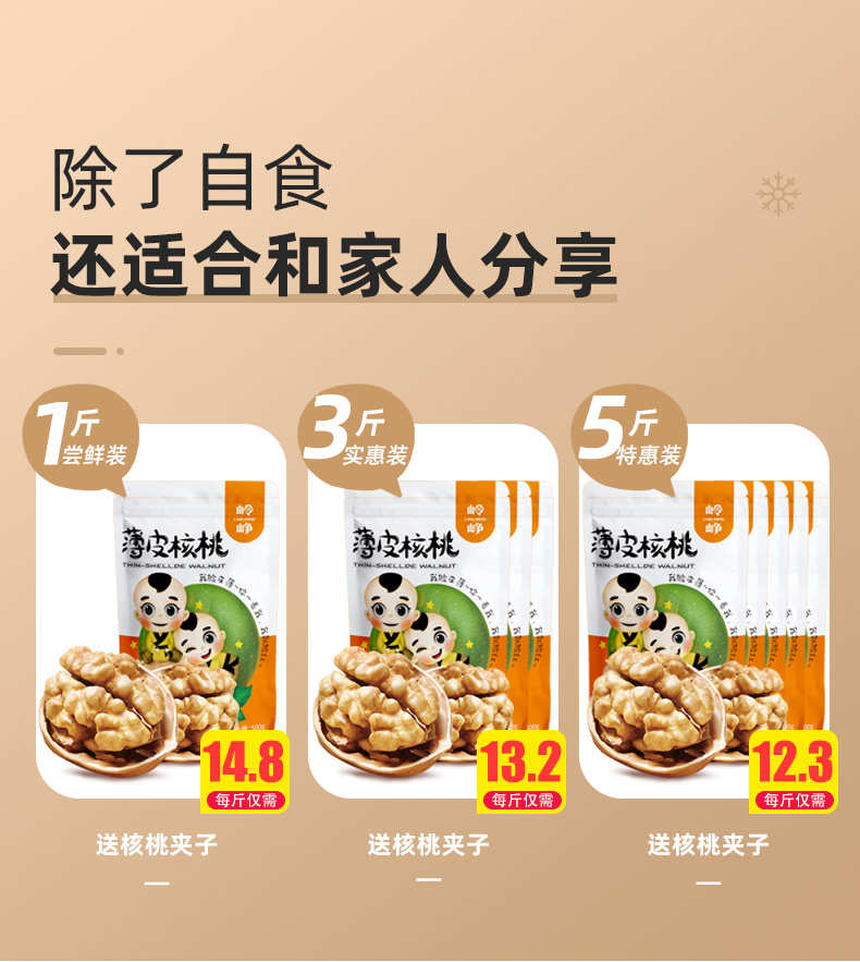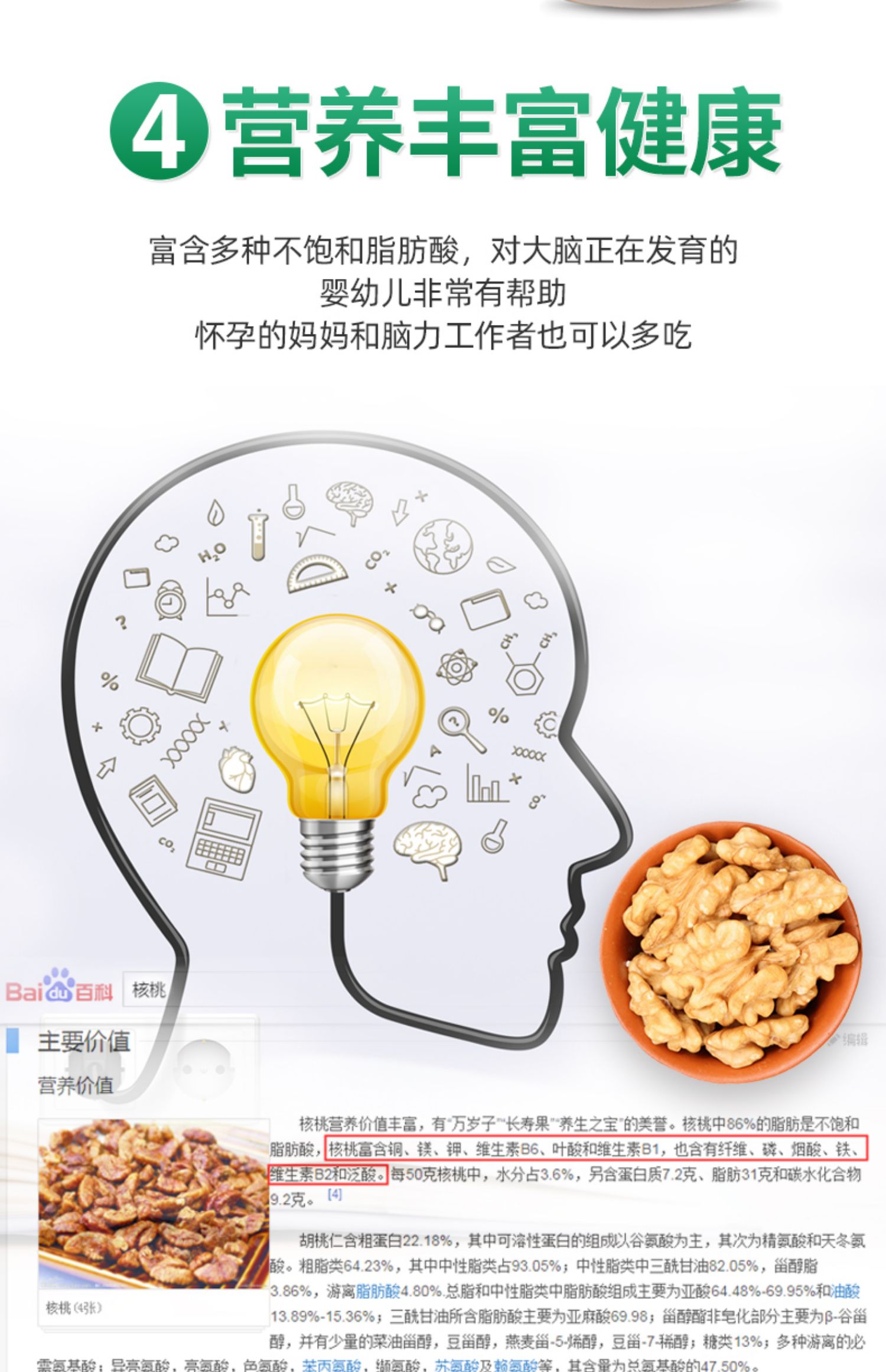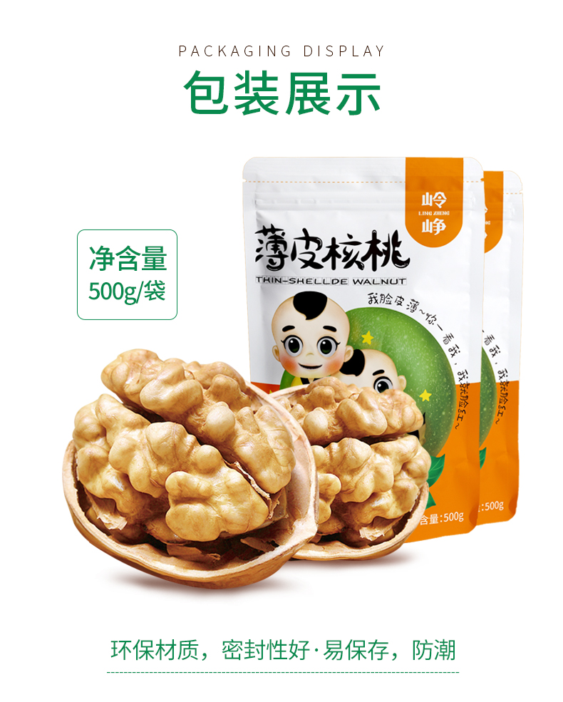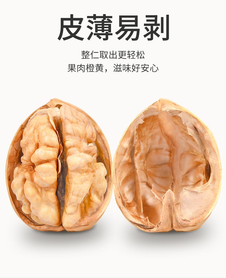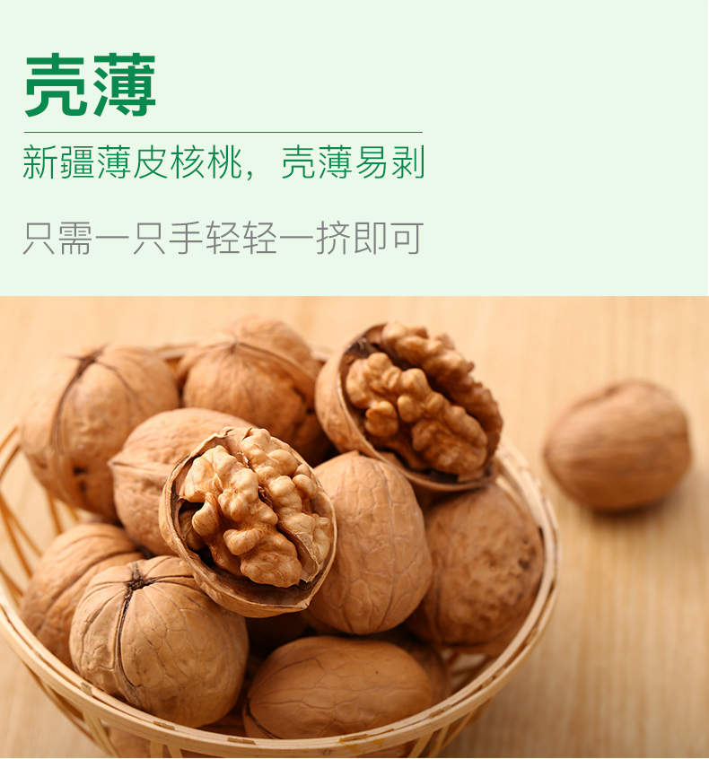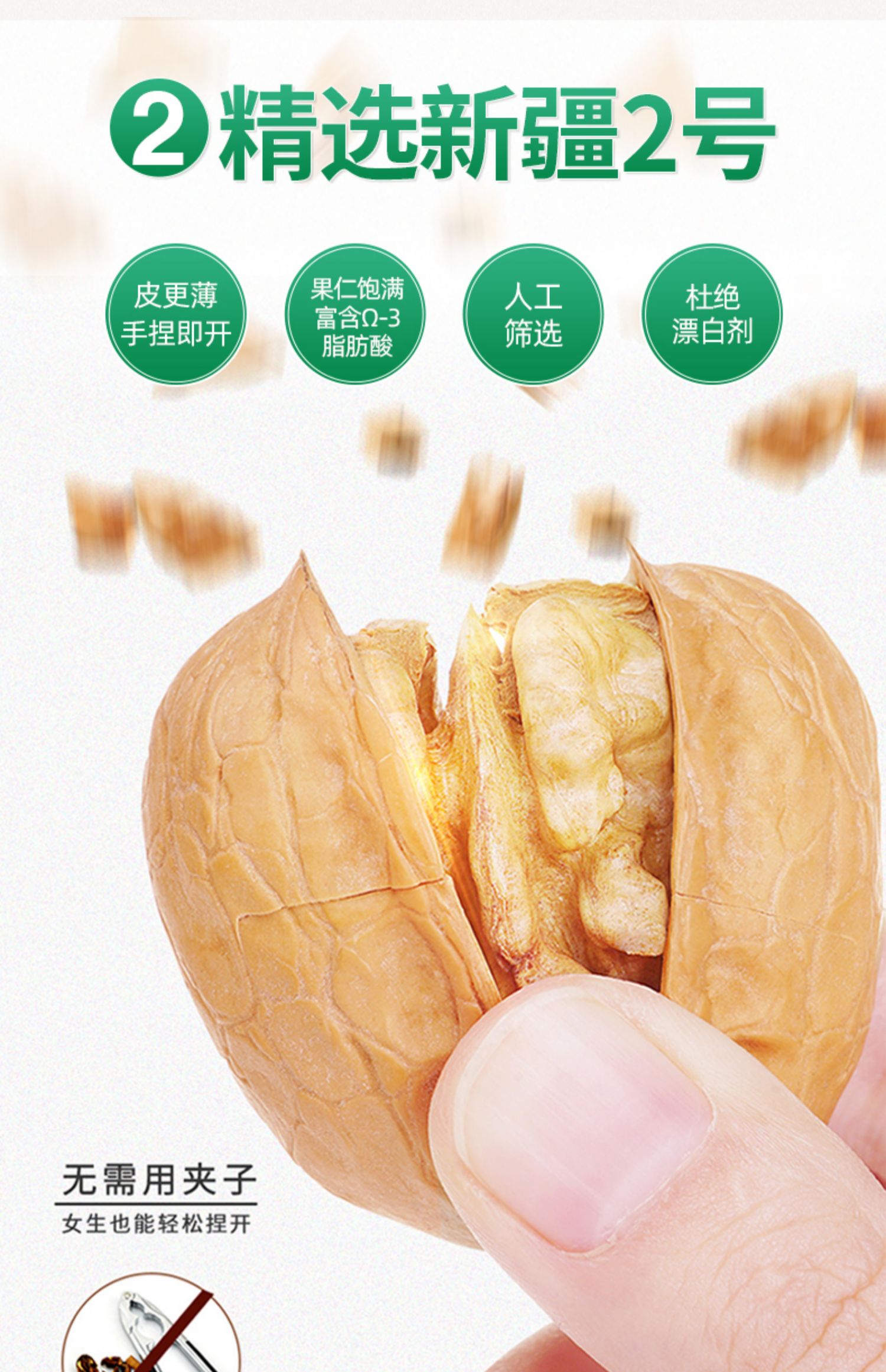 孕婴级营养核桃,每个个头都很大,皮薄果仁很大颗,单手就能捏开,颗粒饱满,酥脆可口,多种营养补充,健脑防老,舒缓疲劳哦~家里宝宝吃了更聪明!