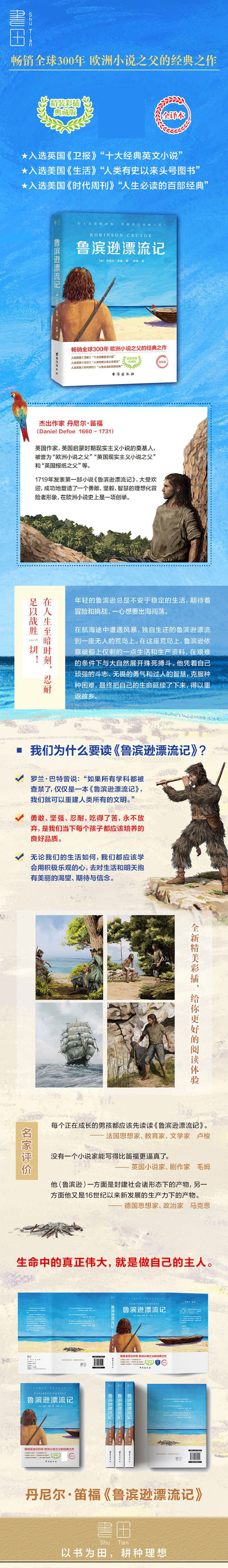 【鲁滨逊漂流记完整彩插版】教育部新课标经典书目,中小学生指定阅读,课外必读文学经典,优质印刷,字迹清晰,名家名著,无碍畅读【七天无理由退换】