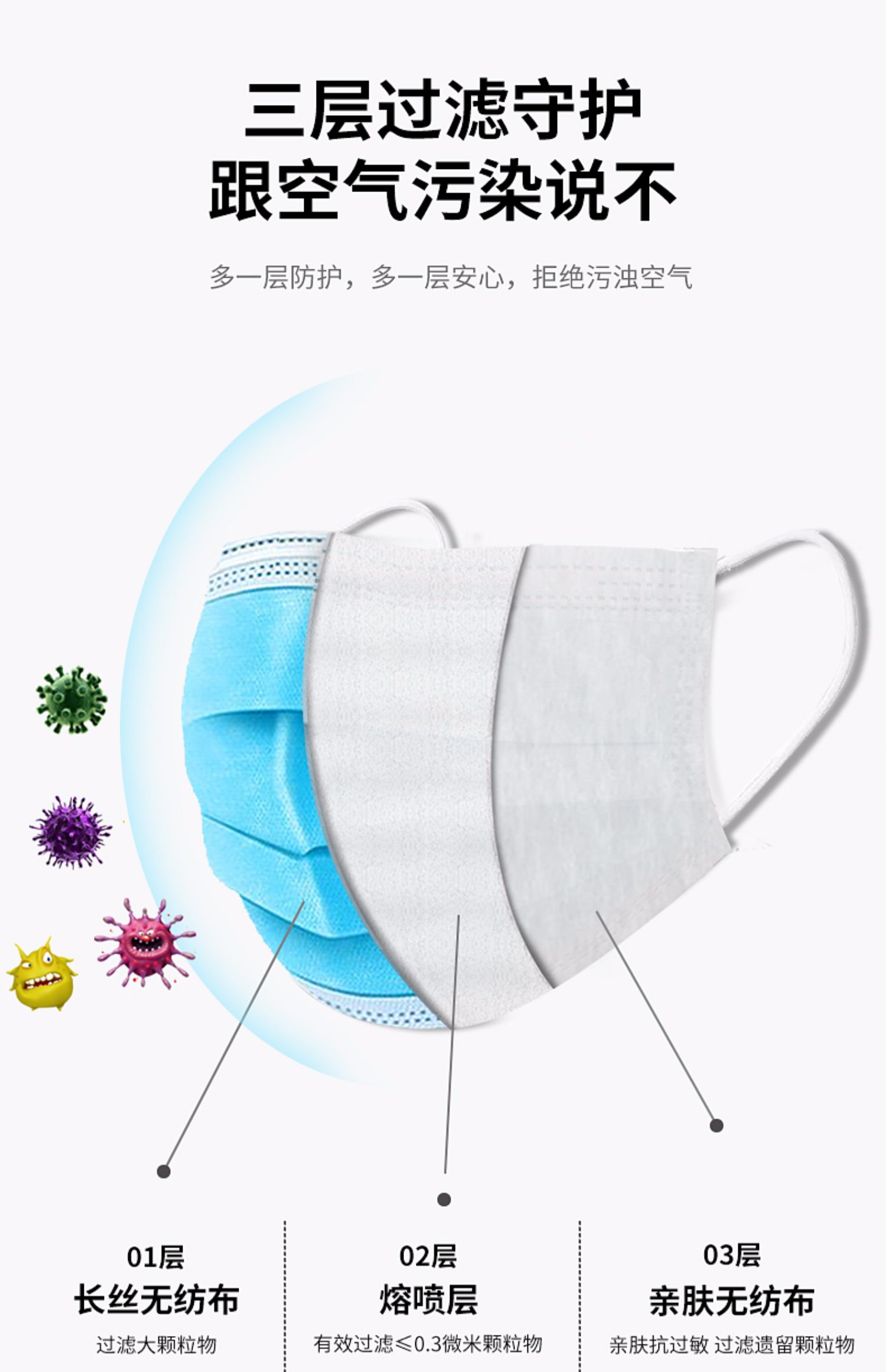 速屯!成人一次性医用口罩!熔喷布是口罩的“心脏”!10支装,三层防护中间熔喷布,自由呼吸,高密度,有效阻止飞沫传播,给儿童好的防护~