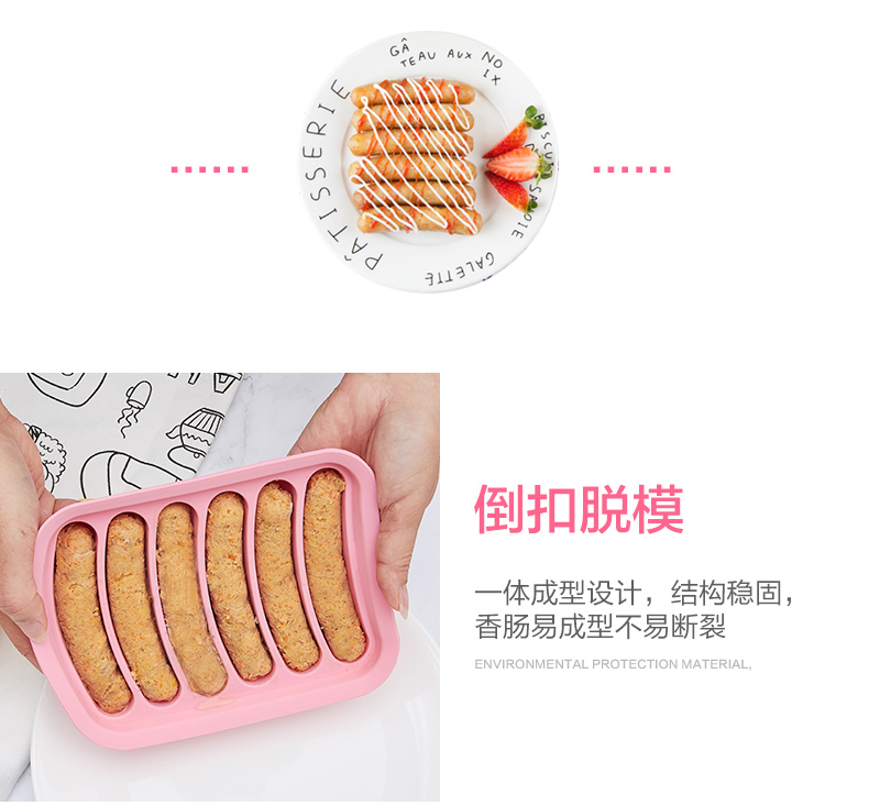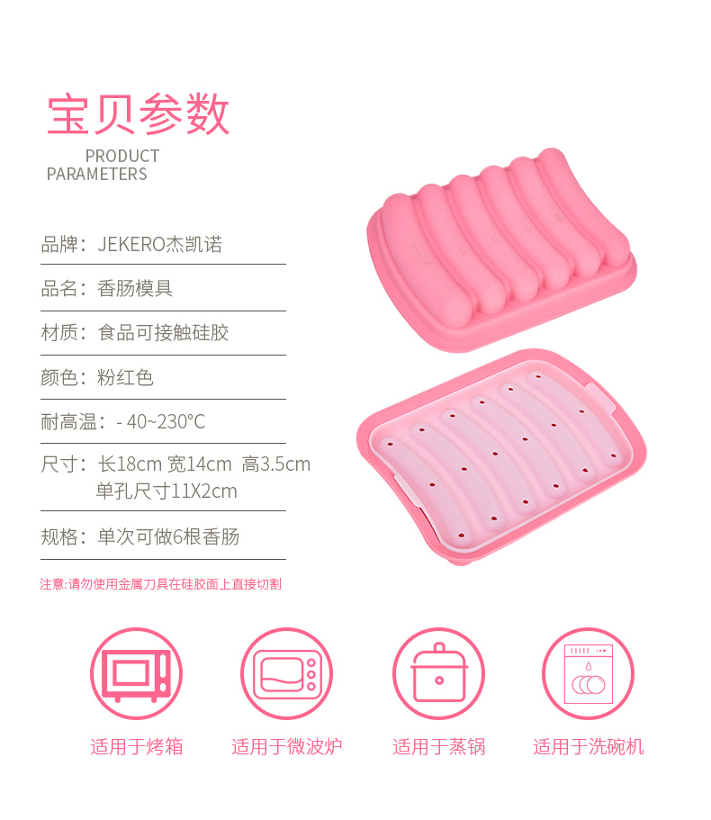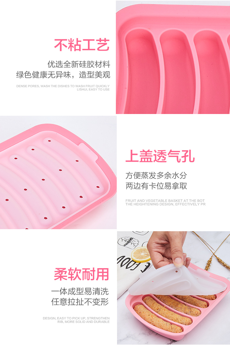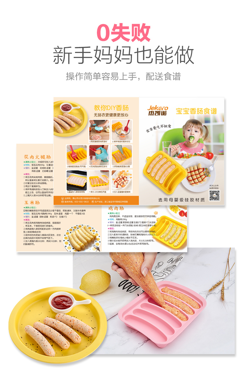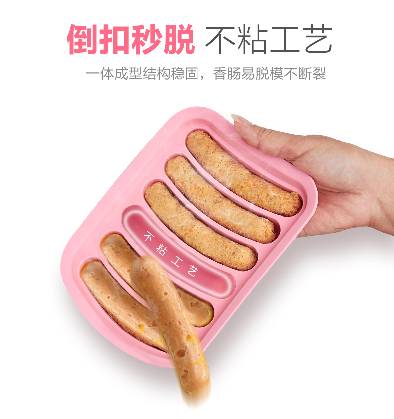 精选母婴级硅胶,安全无异味,可与食物直接接触,可爱造型让宝宝胃口大开,自主搭配食材,营养美味又健康,透气孔,让香肠更鲜嫩可口。让宝宝爱上吃饭~宝贝成长没烦恼!