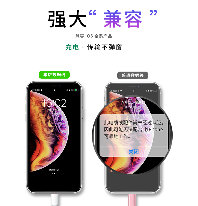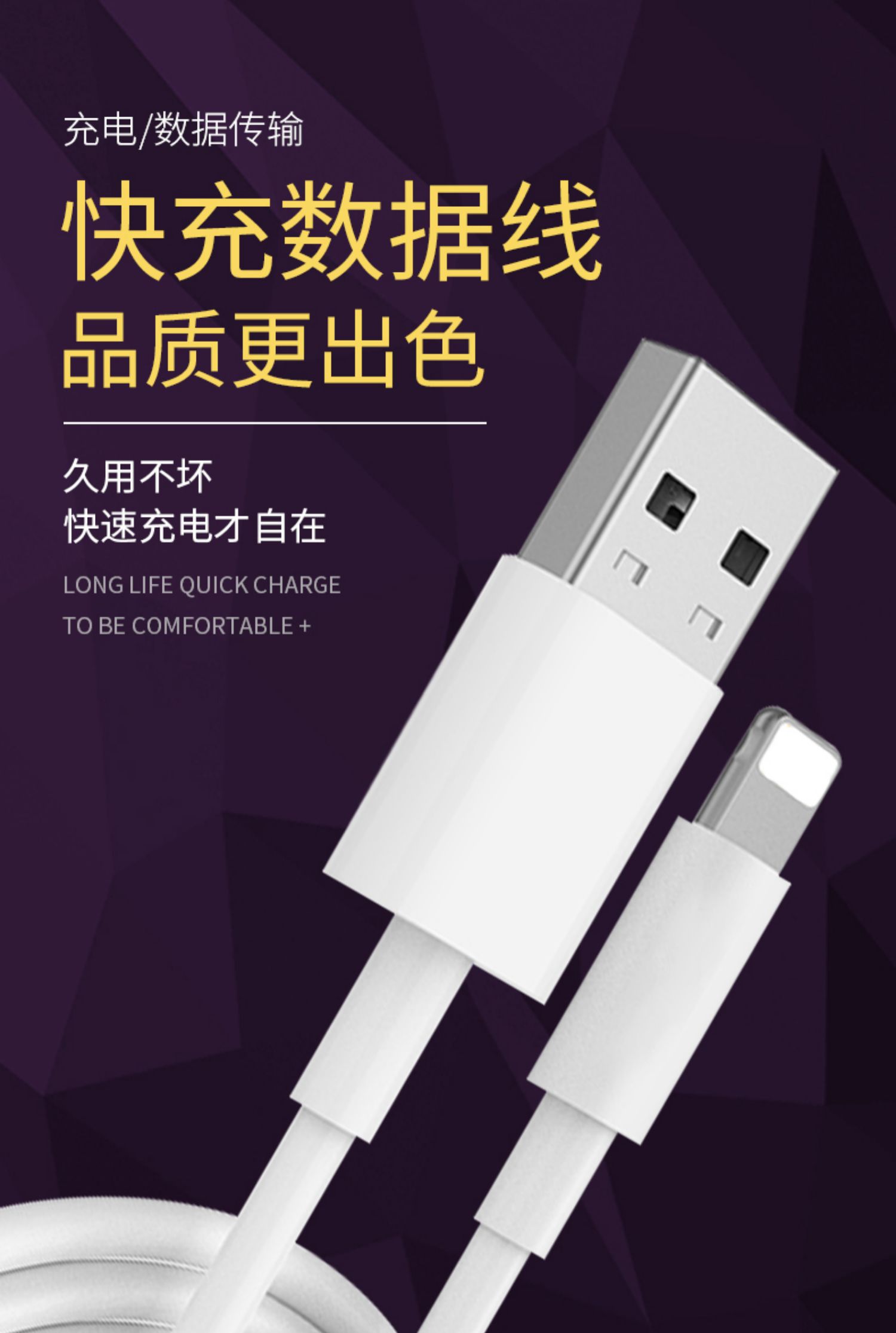 苹果闪充数据线,取优质纯铜线芯,减小电阻,真正实现安全提速,高精密优质接头,稳固接口防磨损,无损害更耐用,大电流输出,实现快速充电和数据传输,效率更高,不伤机