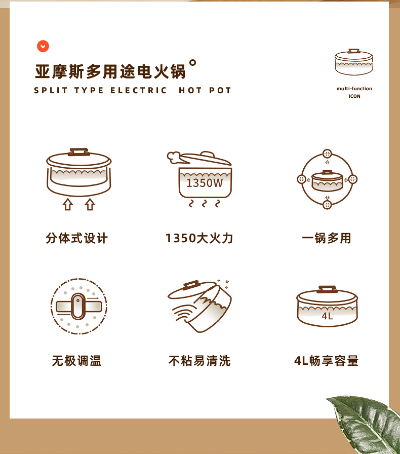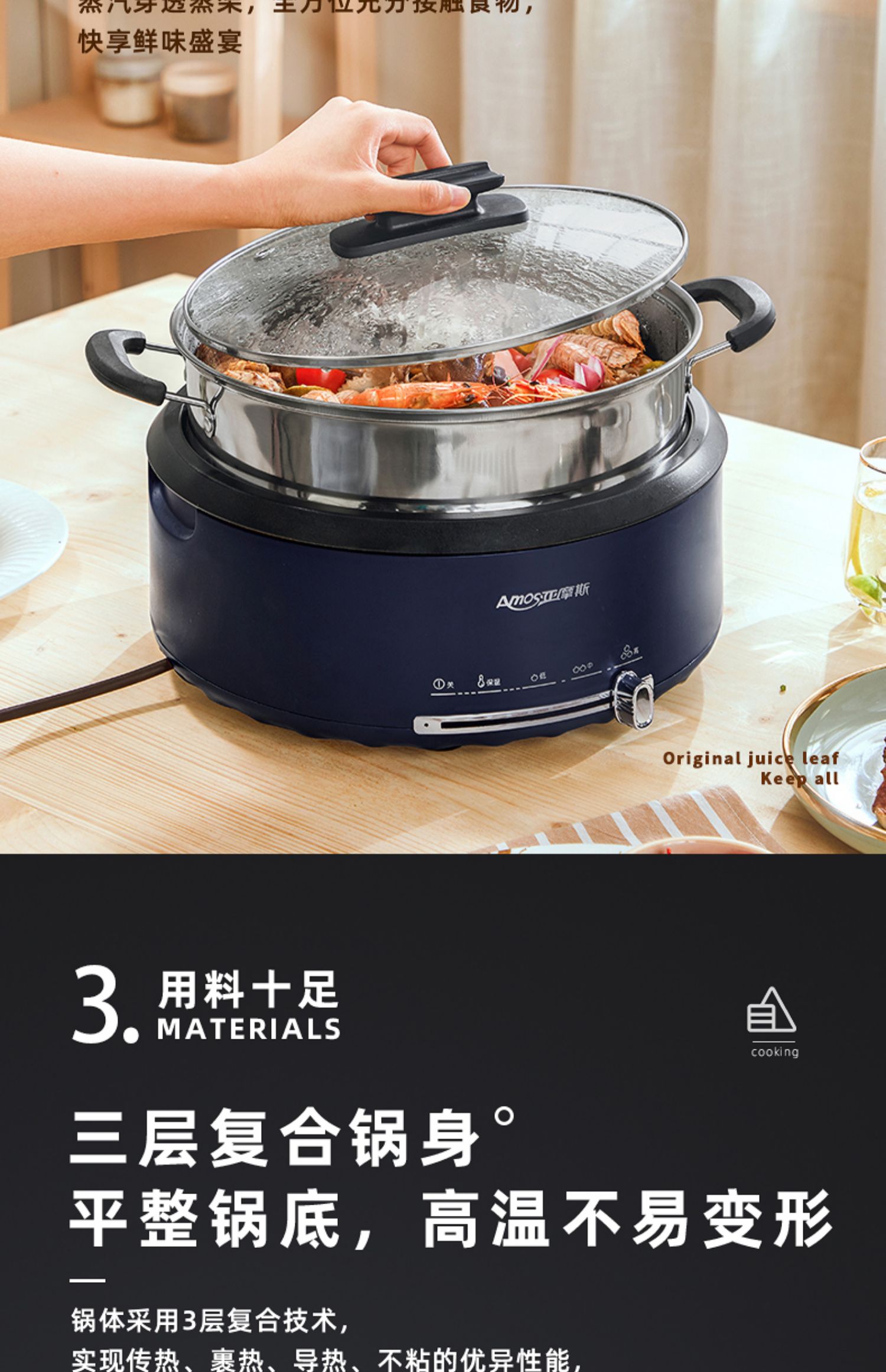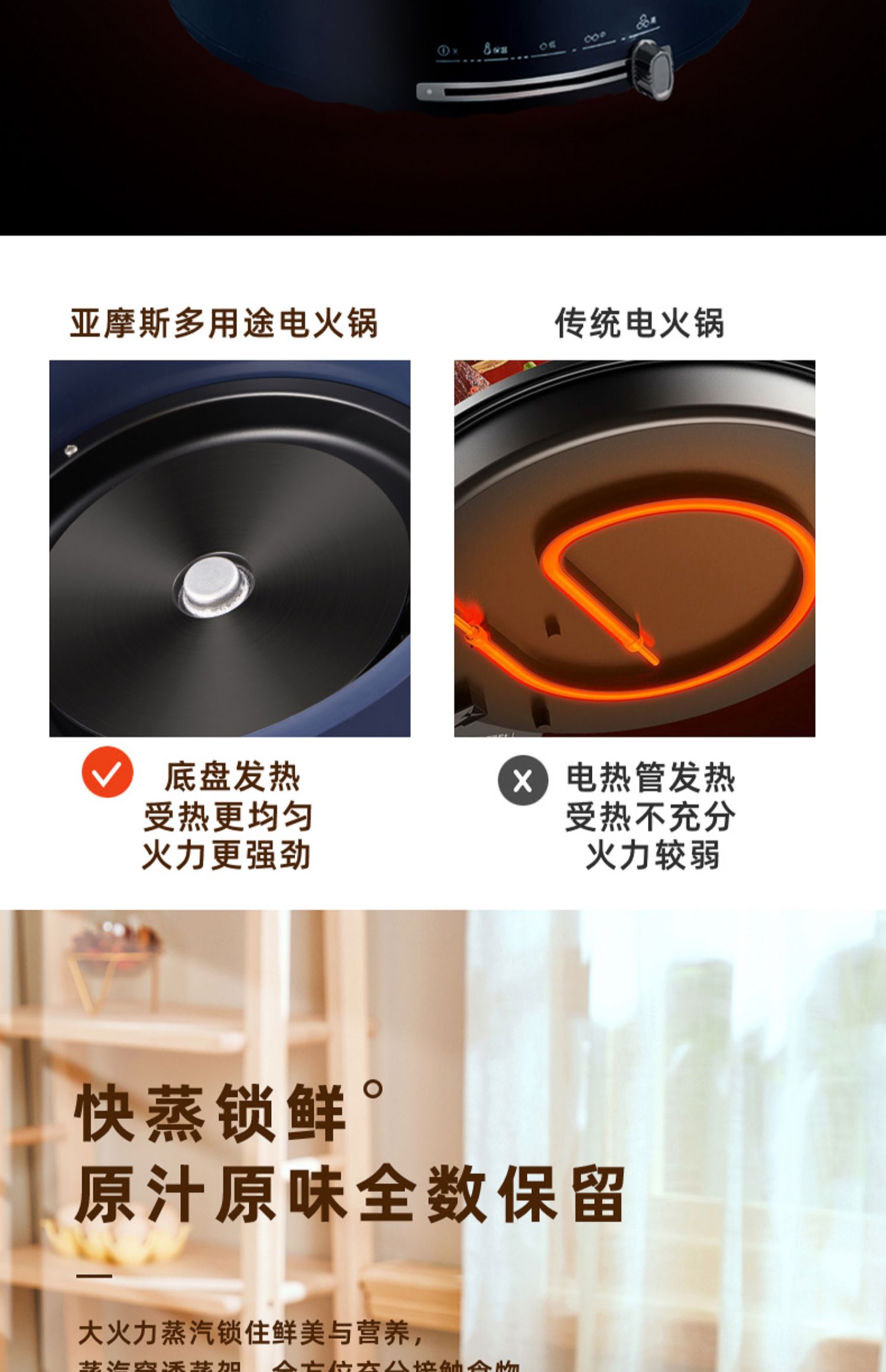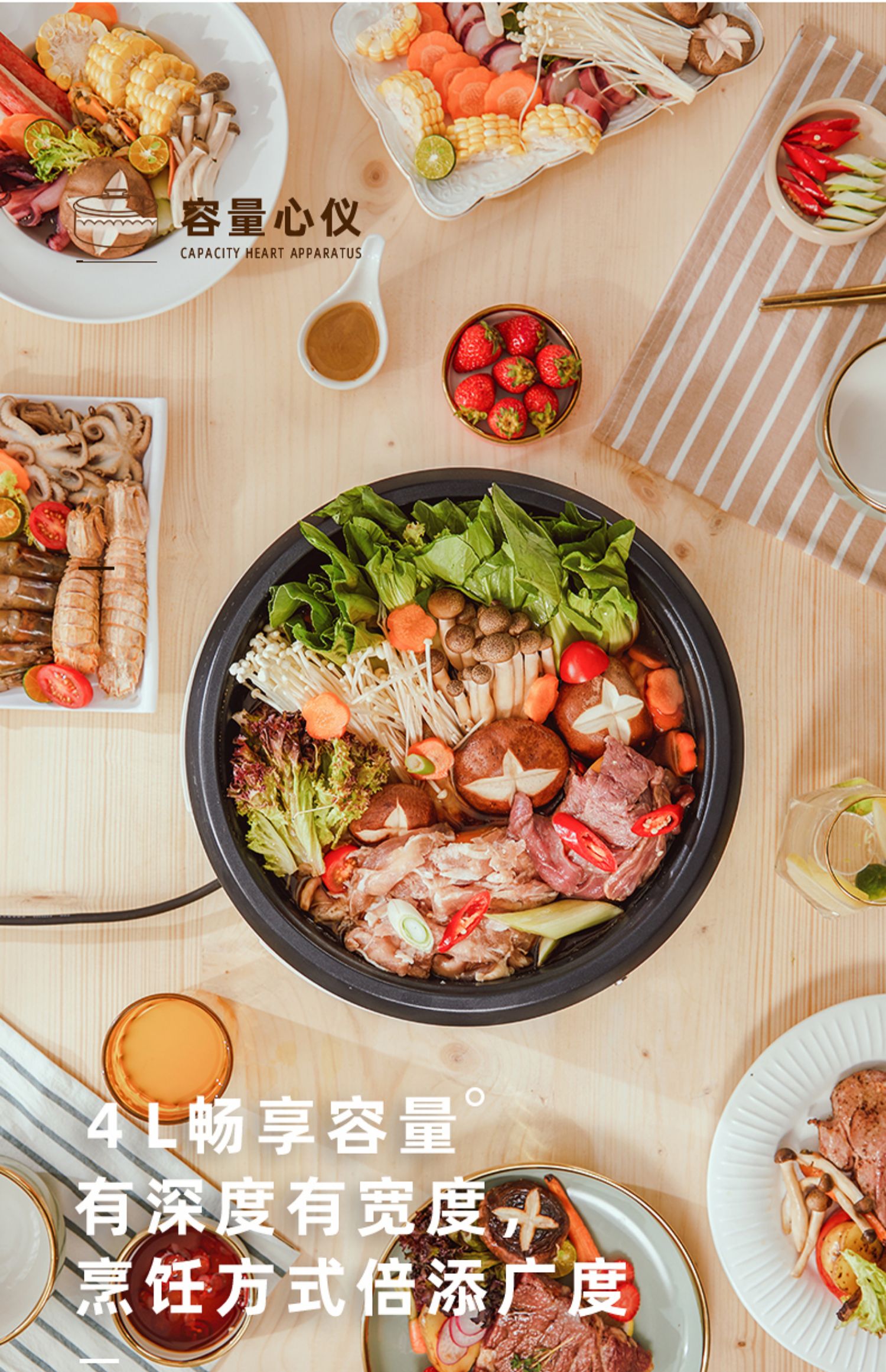 【送锅铲】荣事达旗下子品牌,1年换新!全国联保!亚摩斯电火锅,分体式设计,可整锅端起,不粘涂层,内胆可直接清洗。4档火力,煎烤涮煮炸焖炖样样都行!4L容量,满足4-6人所需!