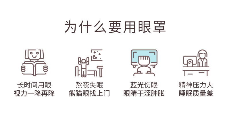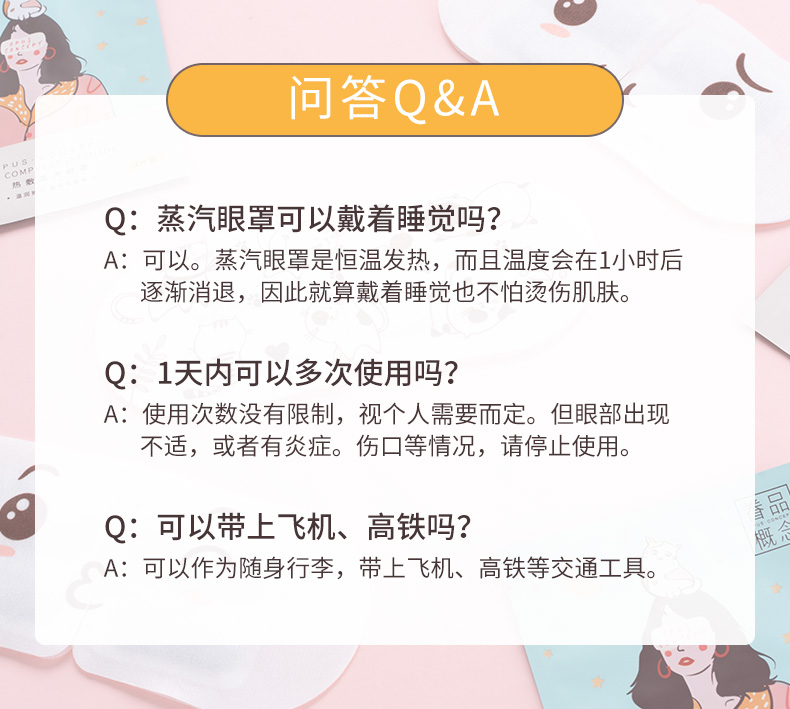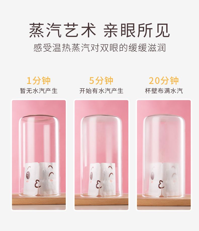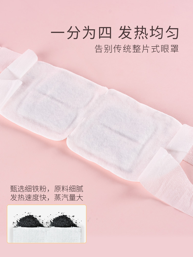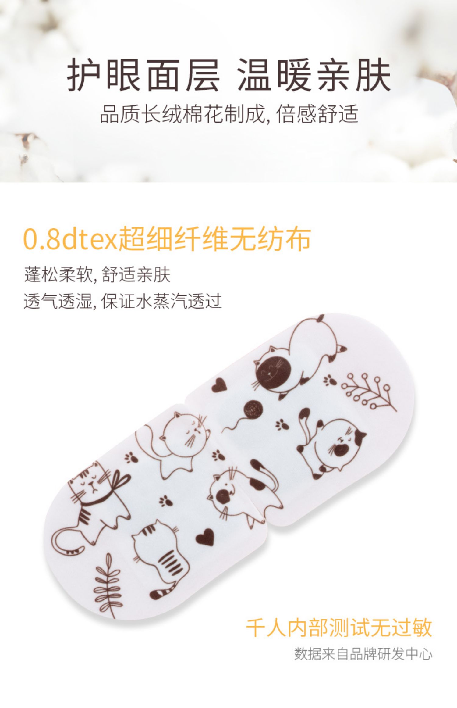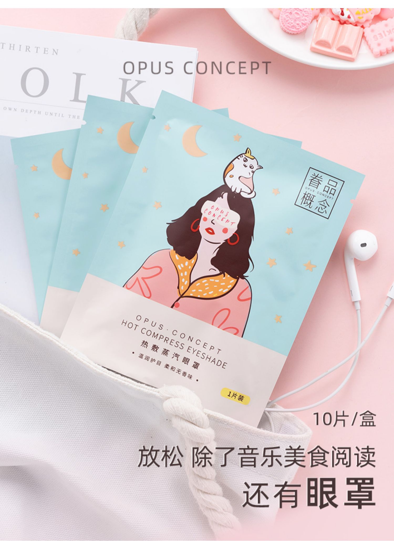 舒缓眼干涩,缓解疲劳,给予眼部肌肤蒸汽式按摩;给眼部做一个简单的spa~睡前或午休的时候敷上一片,42°蒸汽热敷,30分钟SPA享受,舒缓眼干涩,酸胀,缓解疲劳,淡化黑眼圈,保护视力。