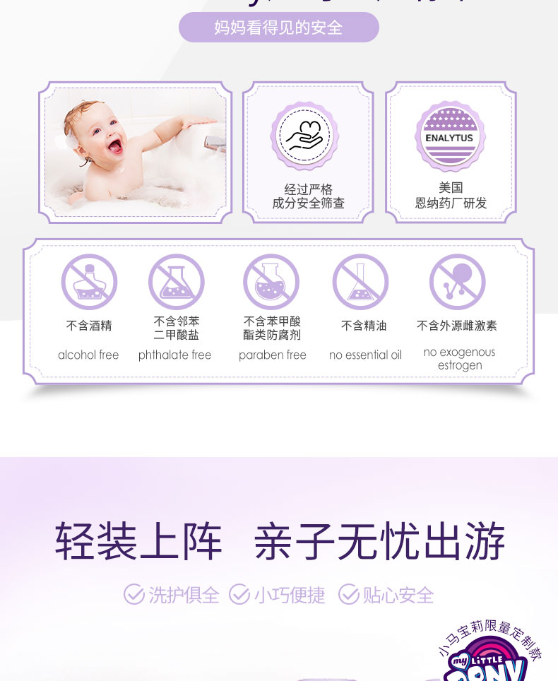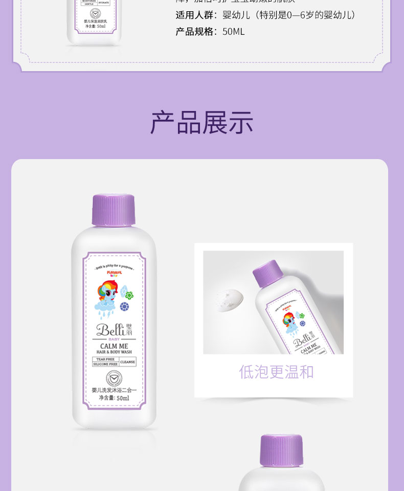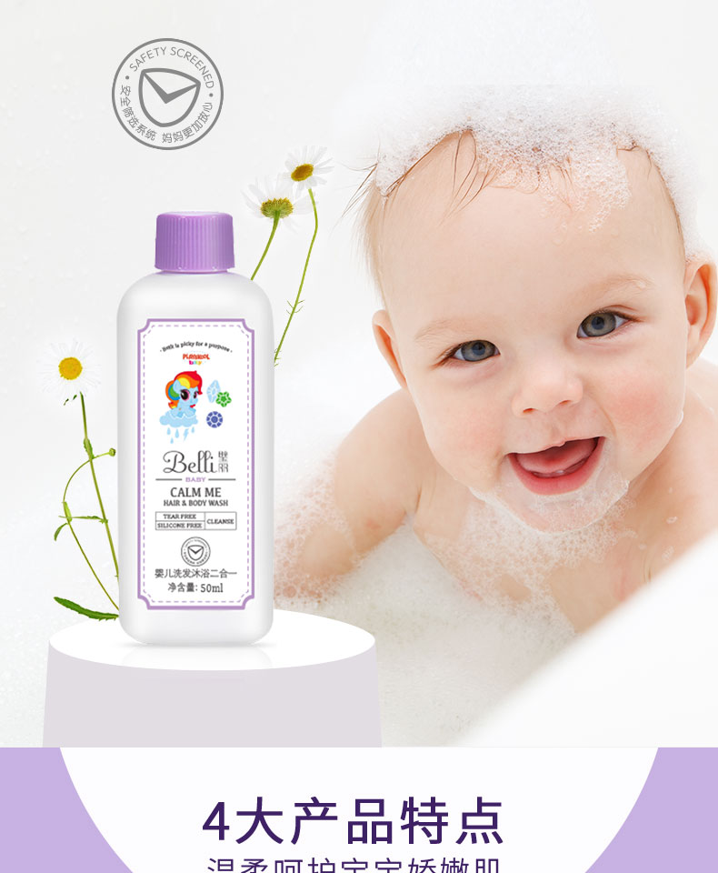 婴儿洗发沐浴二合一,纯植物配方,原料温和,不含多种化学成分,更亲肤。气味温和,不刺鼻。新一代亲肤活性成分,亲和婴儿皮肤,功效出色,安心舒适