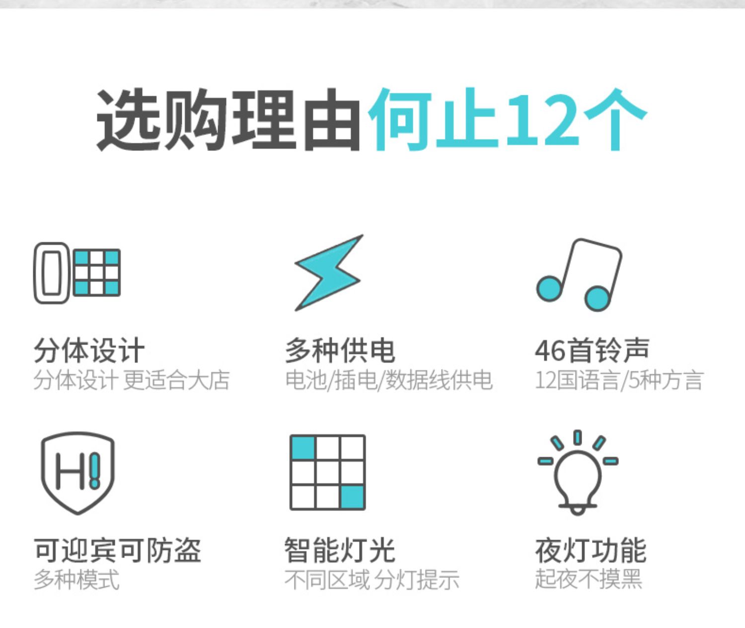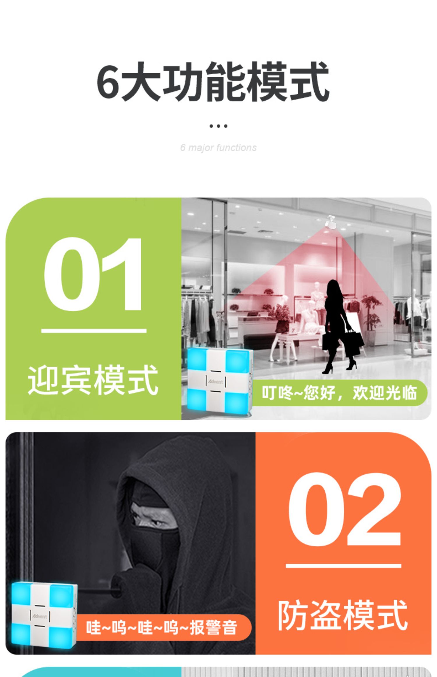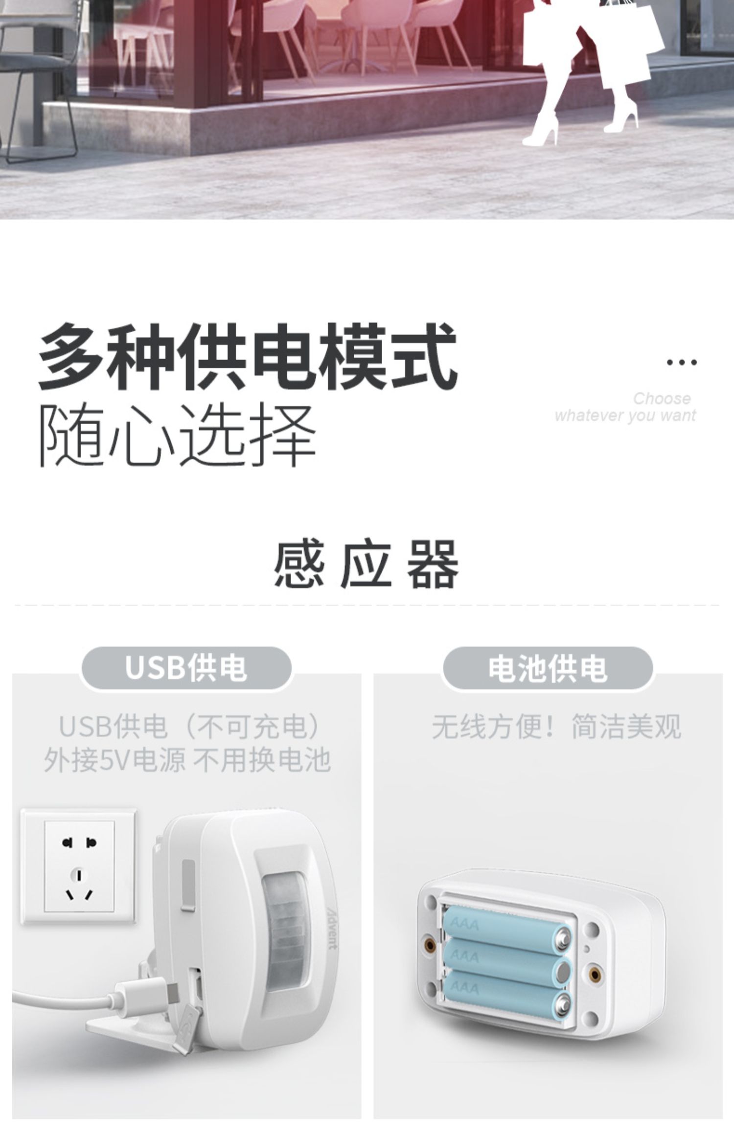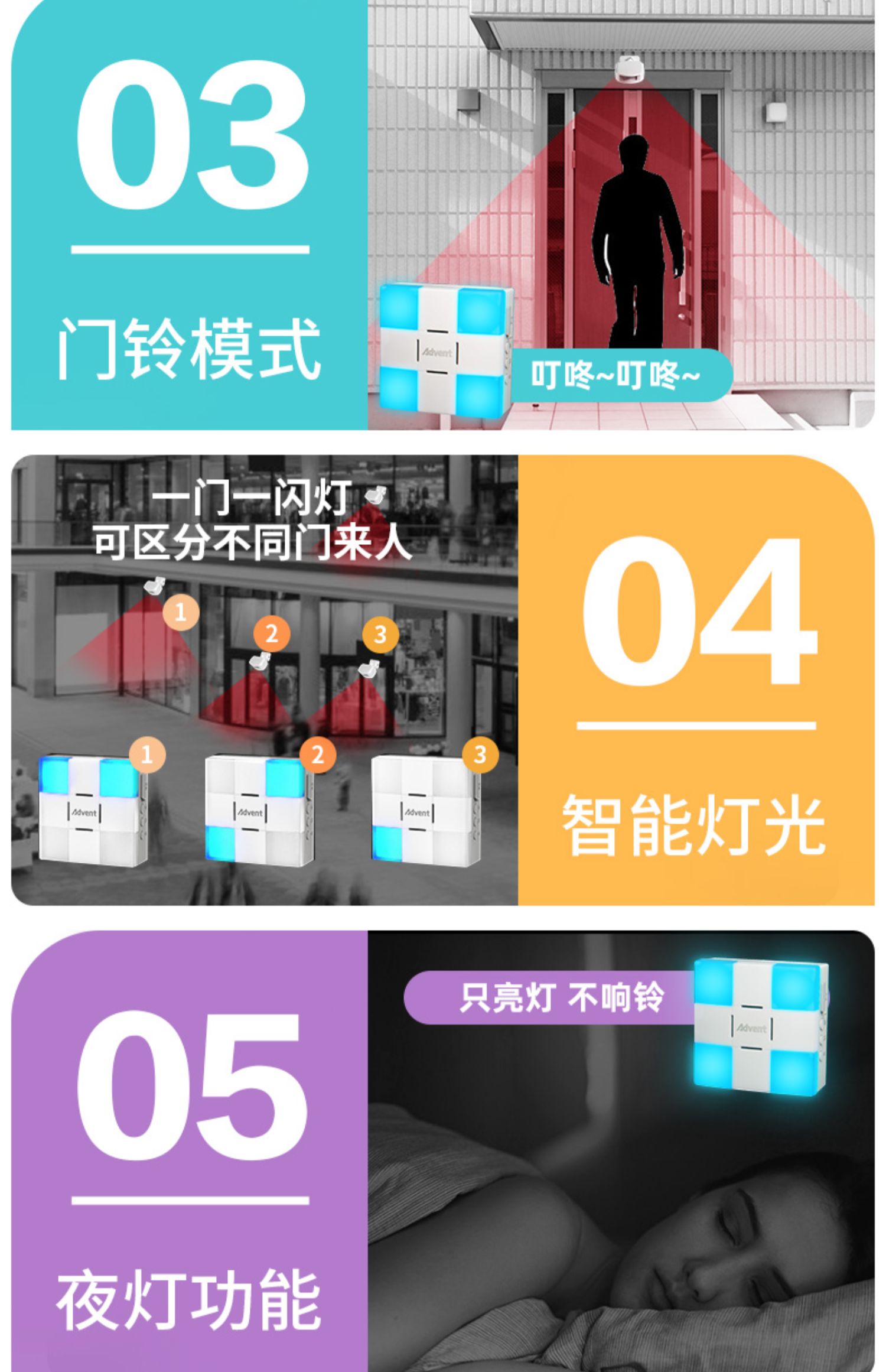 25年老品牌,3年免费换新!简约外观,耐看耐用,安装超简单,三步就完成,防水防尘,大音量+远距离!迎宾门铃,夜灯防盗四合一,商用家用都必备哦!【赠运费险】