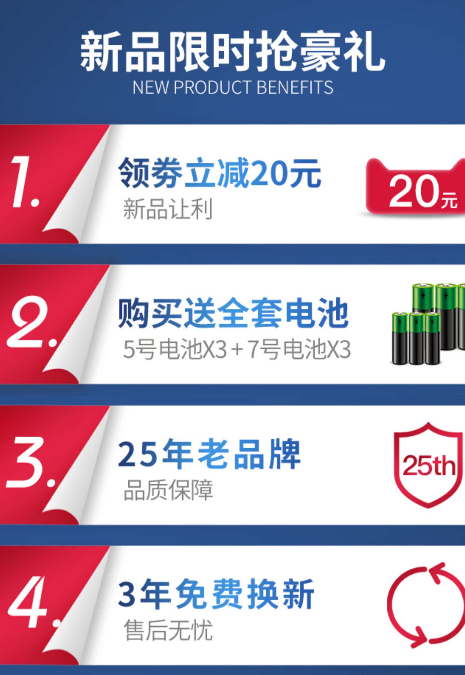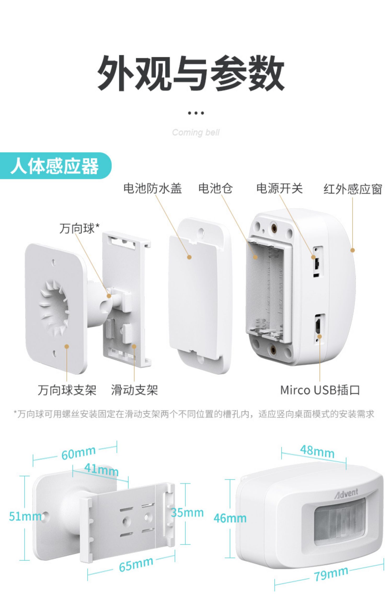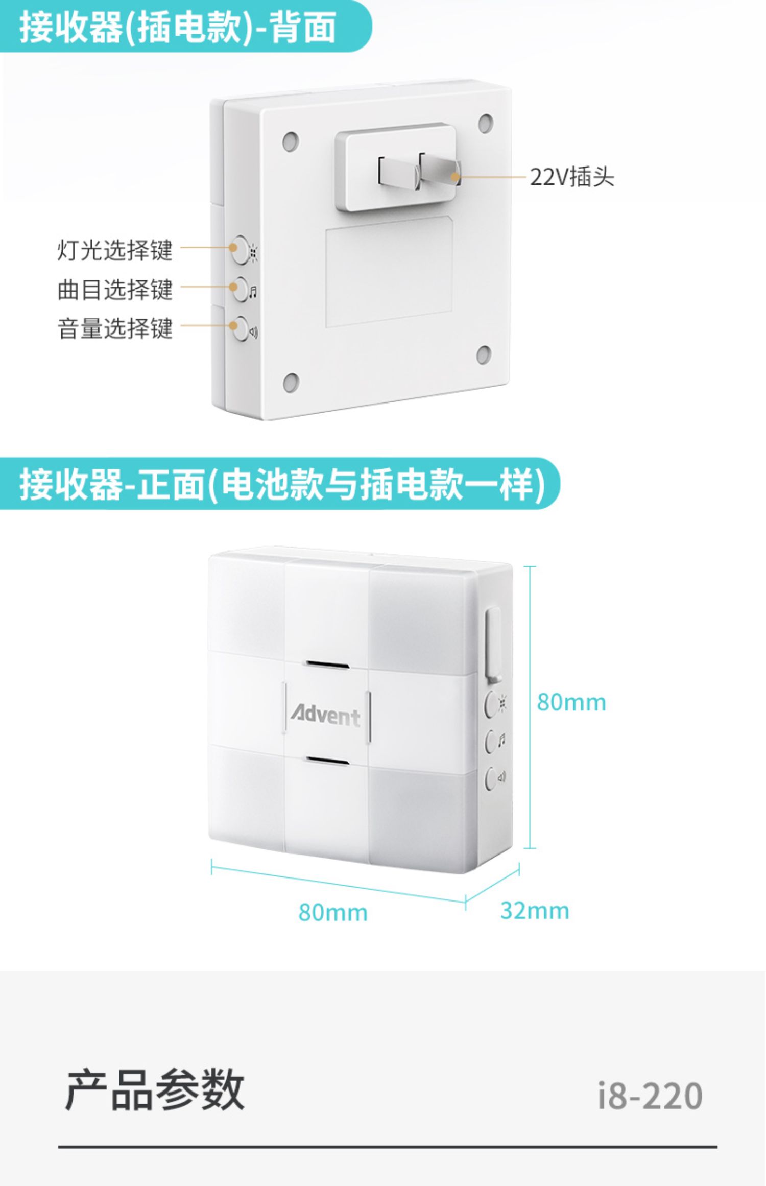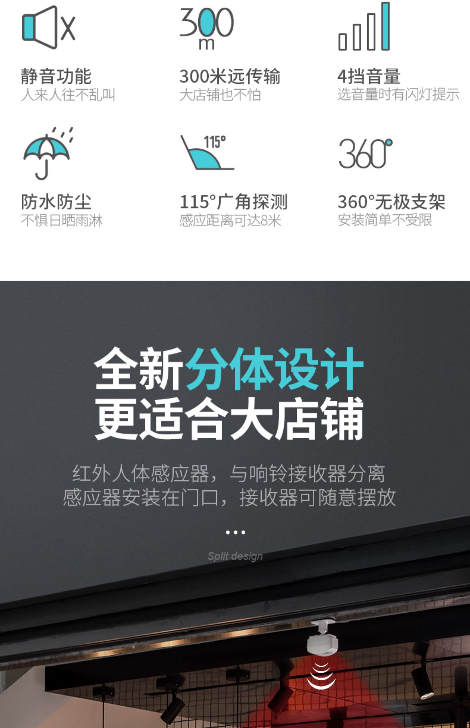 25年老品牌,3年免费换新!简约外观,耐看耐用,安装超简单,三步就完成,防水防尘,大音量+远距离!迎宾门铃,夜灯防盗四合一,商用家用都必备哦!【赠运费险】