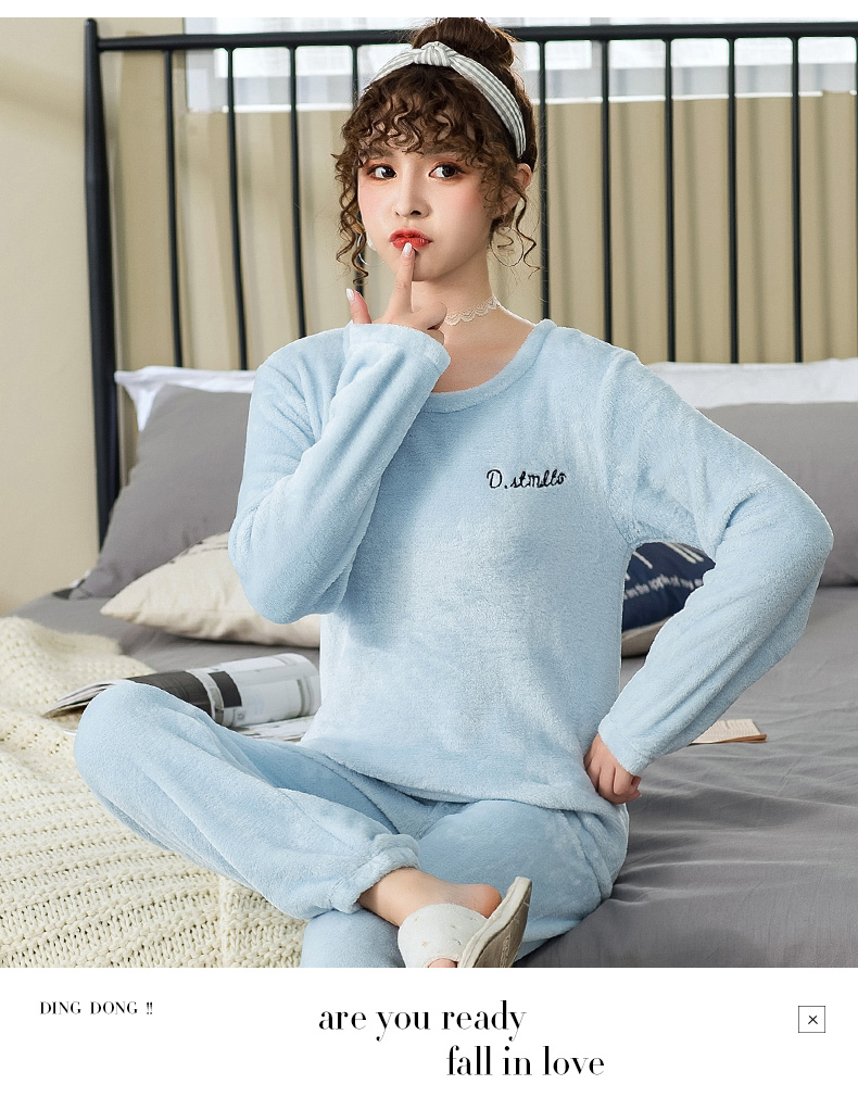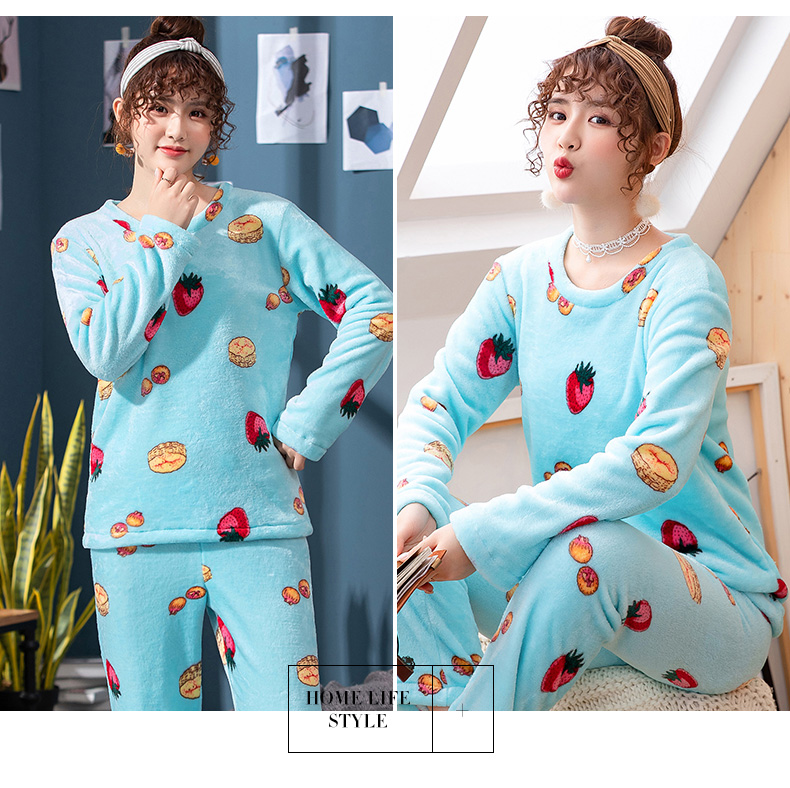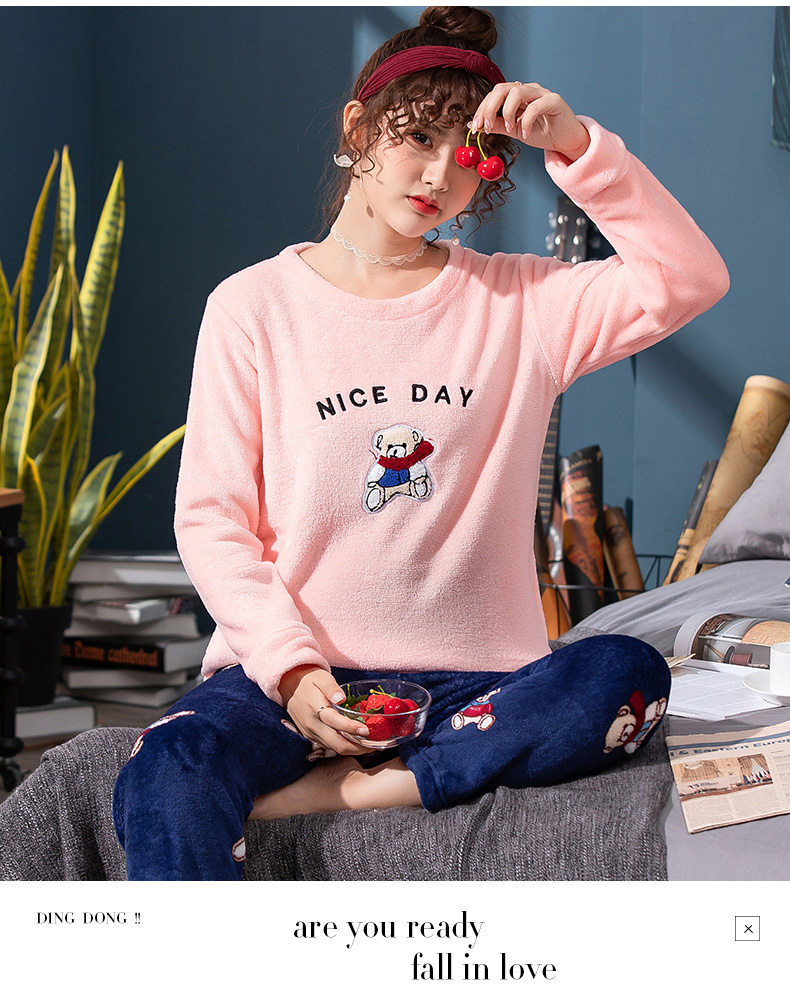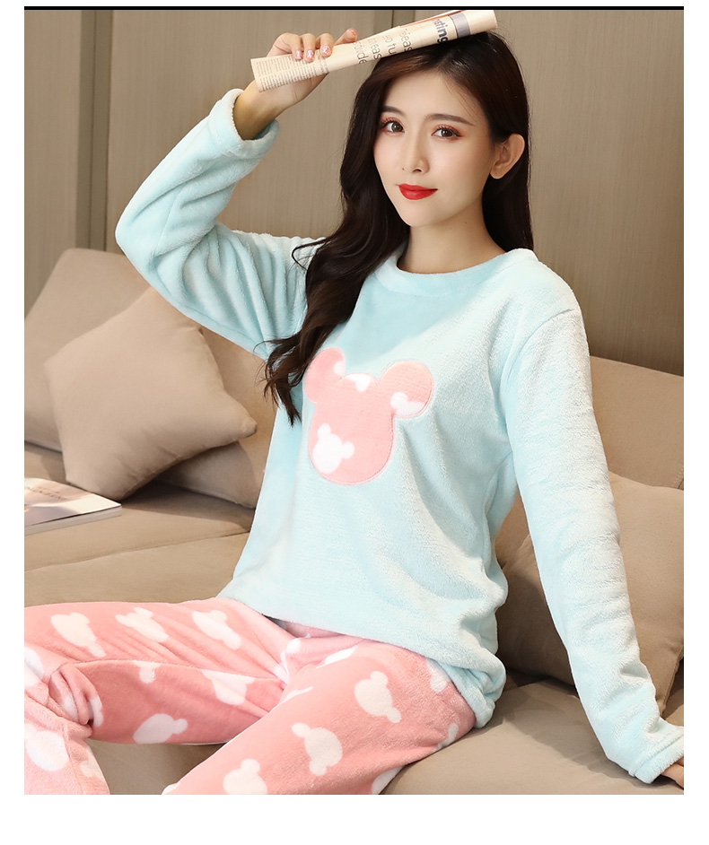 睡衣女冬加绒加厚法兰绒保暖卡通圆领套头珊瑚绒家居服两件套装,柔软细腻,保暖性好,为冬天而生,全面御寒,超柔面料、舒适亲肤,不褪色不起球不缩水~