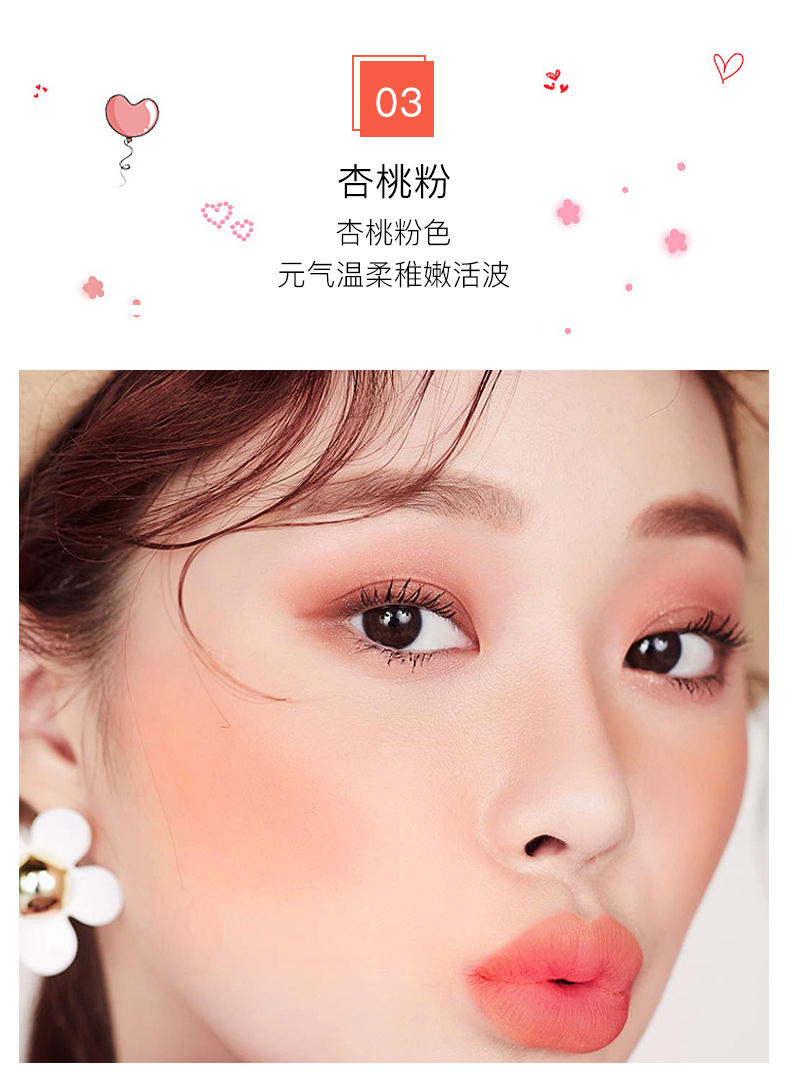 均匀轻松上色,质地细腻,轻薄净透,保湿效果好,实力减龄!腮红界的“逆龄”神器,轻松还原18岁的自然红润好气色!