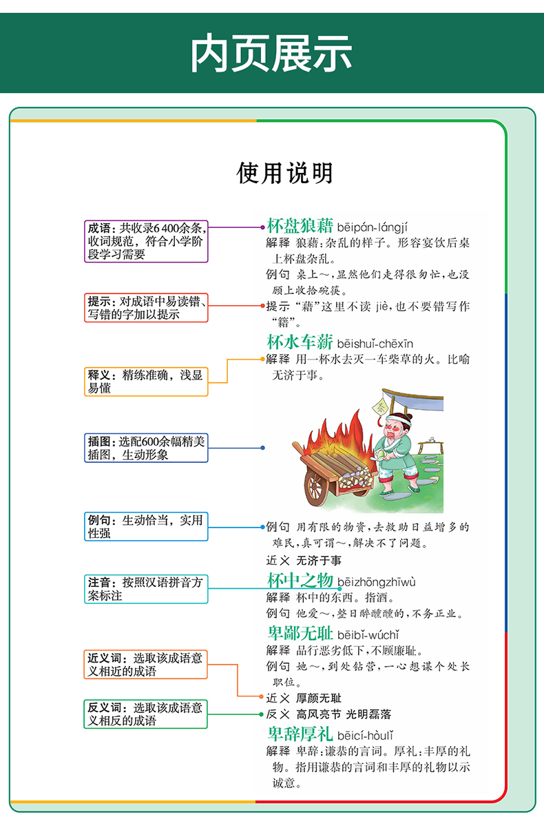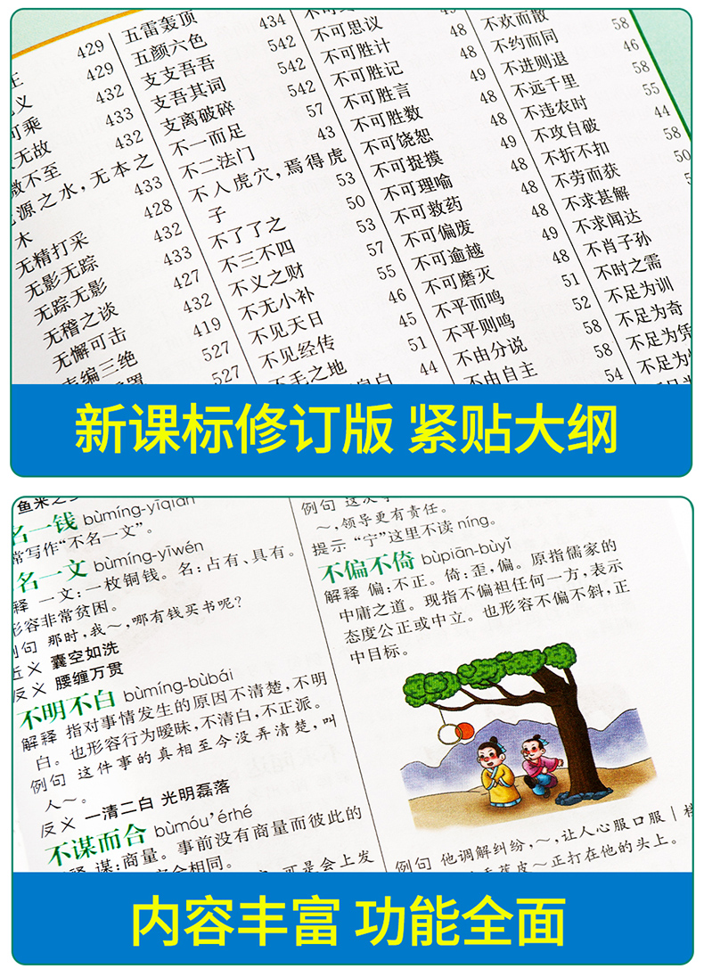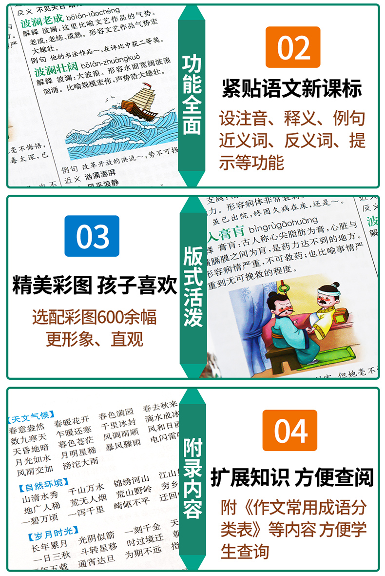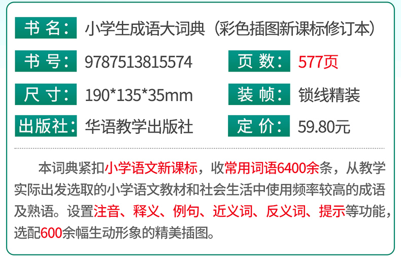 天猫图书,正版保障,部编版,紧贴大纲,趣味彩图,精选成语6400余,内容丰富,生动有趣,功能全面,环保纸张无异味