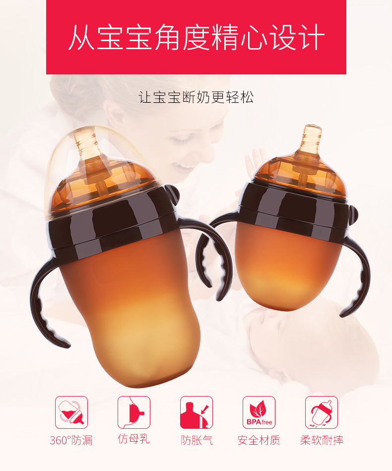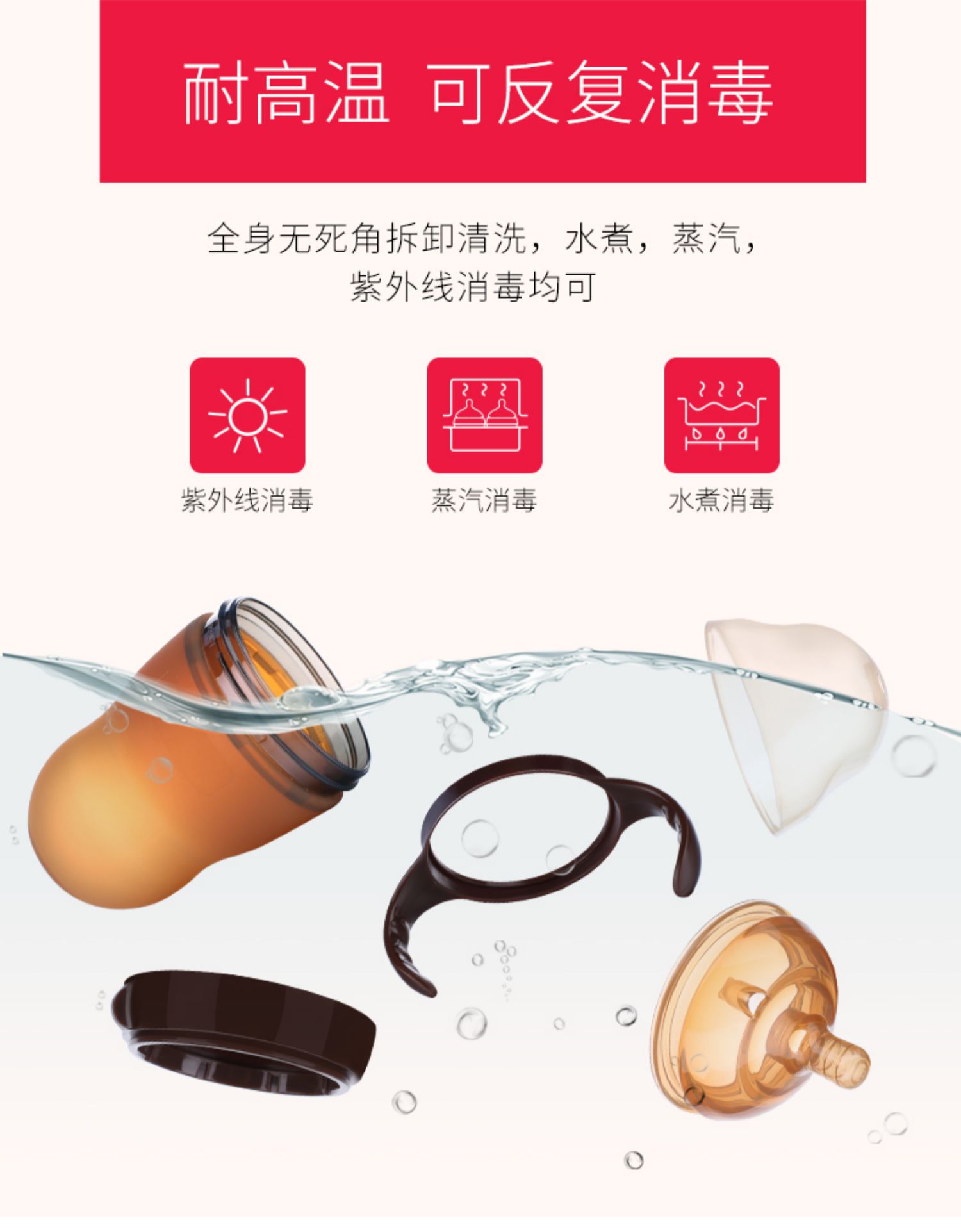 宽口径新生儿硅胶奶瓶,仿母乳奶嘴,纳米银全硅胶奶瓶,可以高温水煮消毒安全无异味防摔防烫,让宝贝更快适应,赠品丰富【赠运费险】