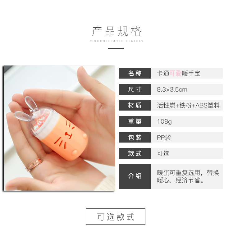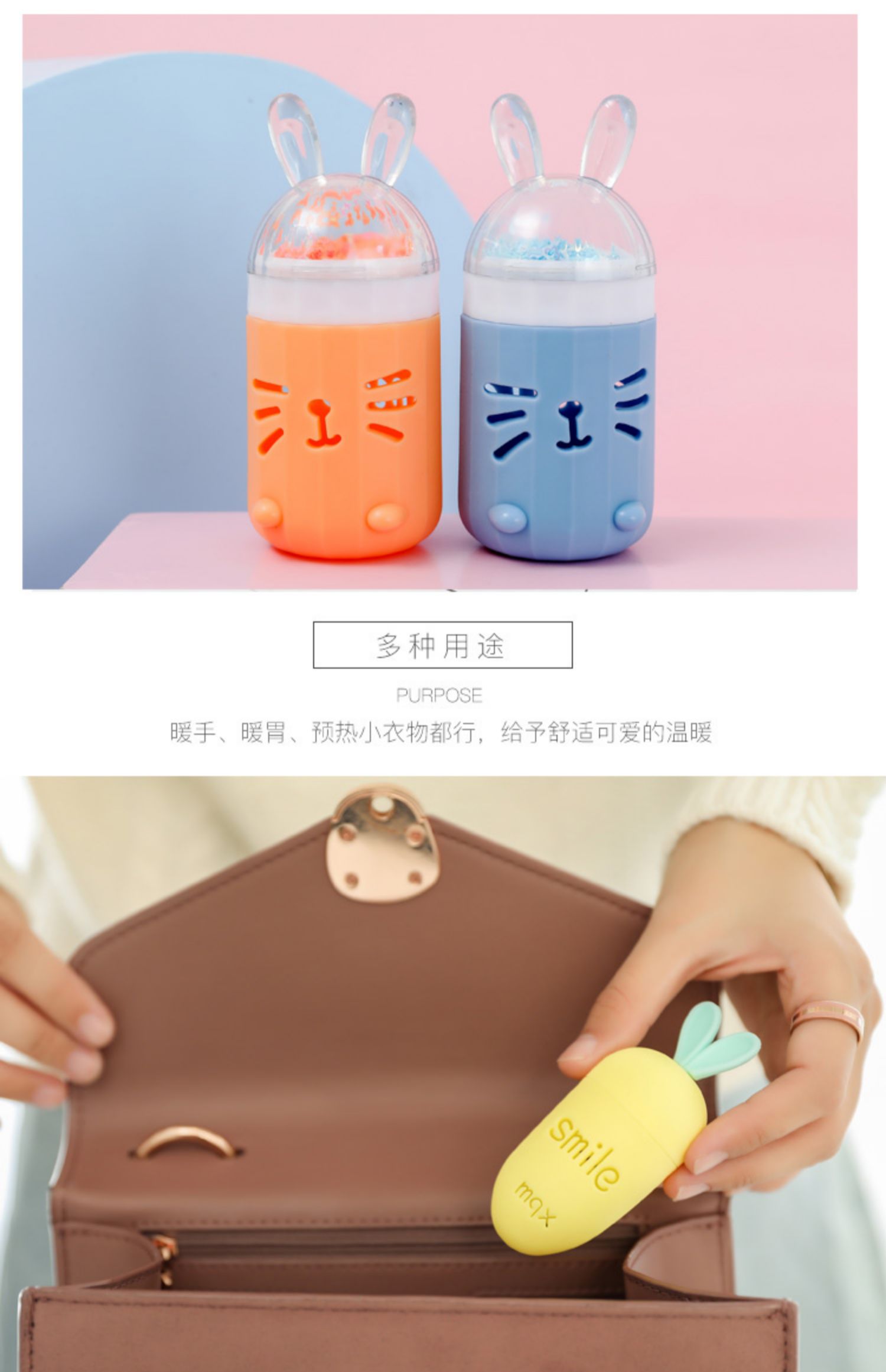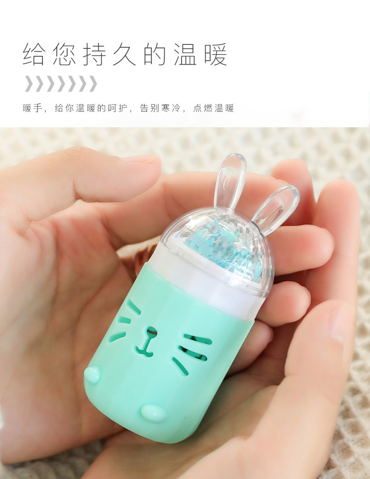 黑科技免充电-不注水暖手宝,ABS材质,安全放心,清新萌趣外形,预热变色,可随身携带,发热迅速,持续10小时温暖,告别反复充电,