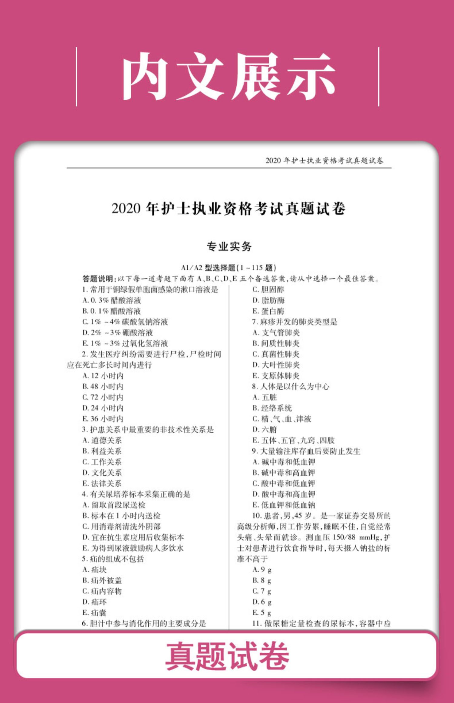 【报名冲刺】2021年护士资格证考试试题,五套历年真题+全新六套押题,含新2020年真题,连续三年高命中率,零基础84小时掌握考试原题,一套全搞定!【赠送视频题库+宝典攻略】
